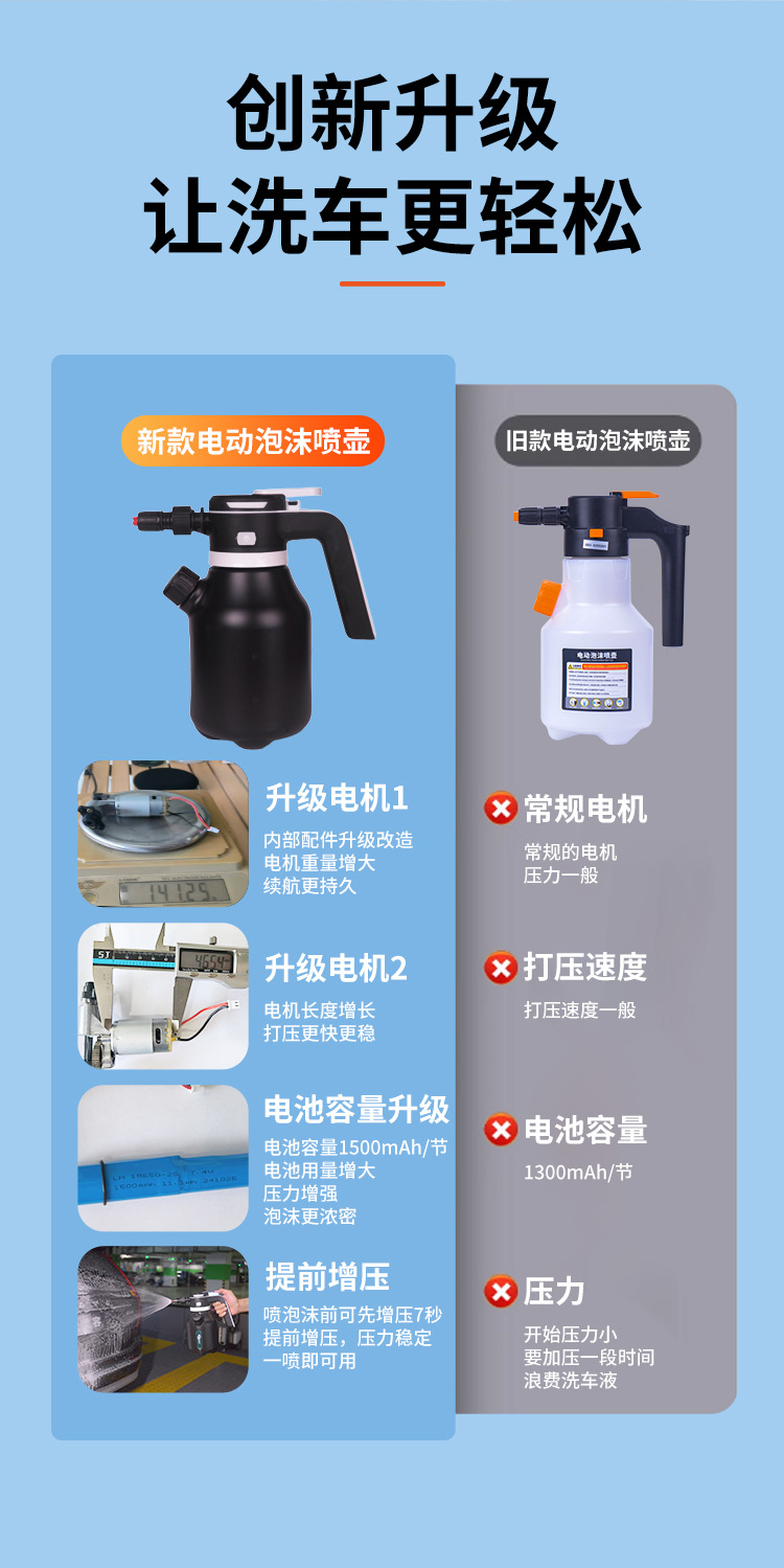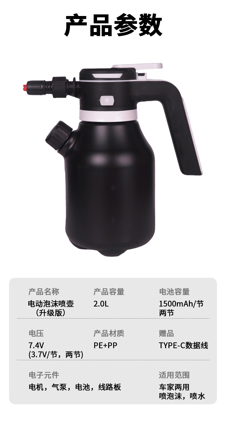 Электрический распылитель пены для автомойки с аккумулятором, литиевая батарея, ручной, с веерообразным распылением, для чистки