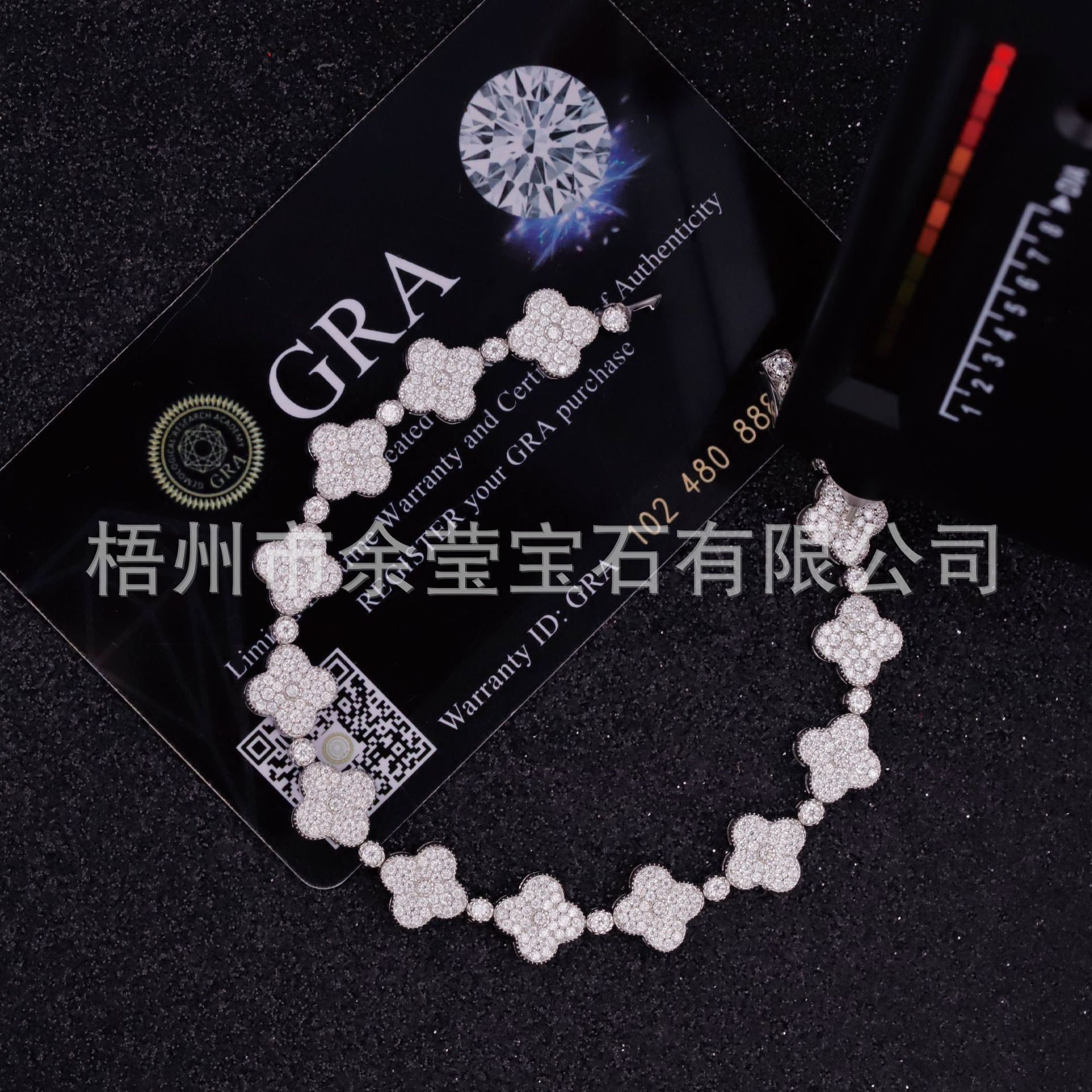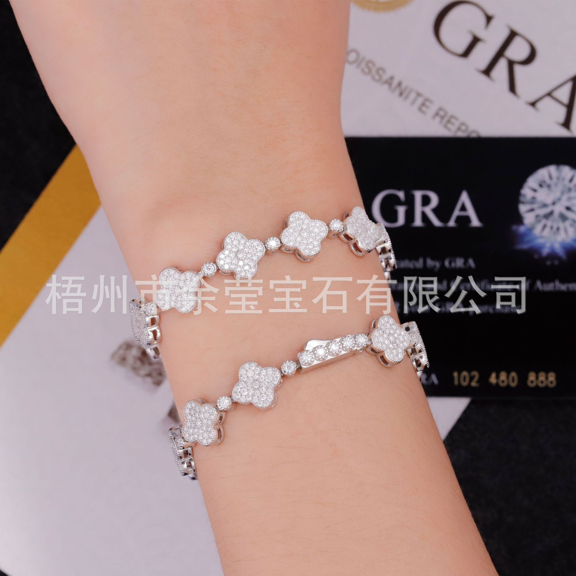 Браслет из серебра S925 с инкрустацией из муассанита цвета D, дизайн в стиле лёгкой роскоши, с изображением четырёхлистного клевера, элегантный и стильный новый браслет.