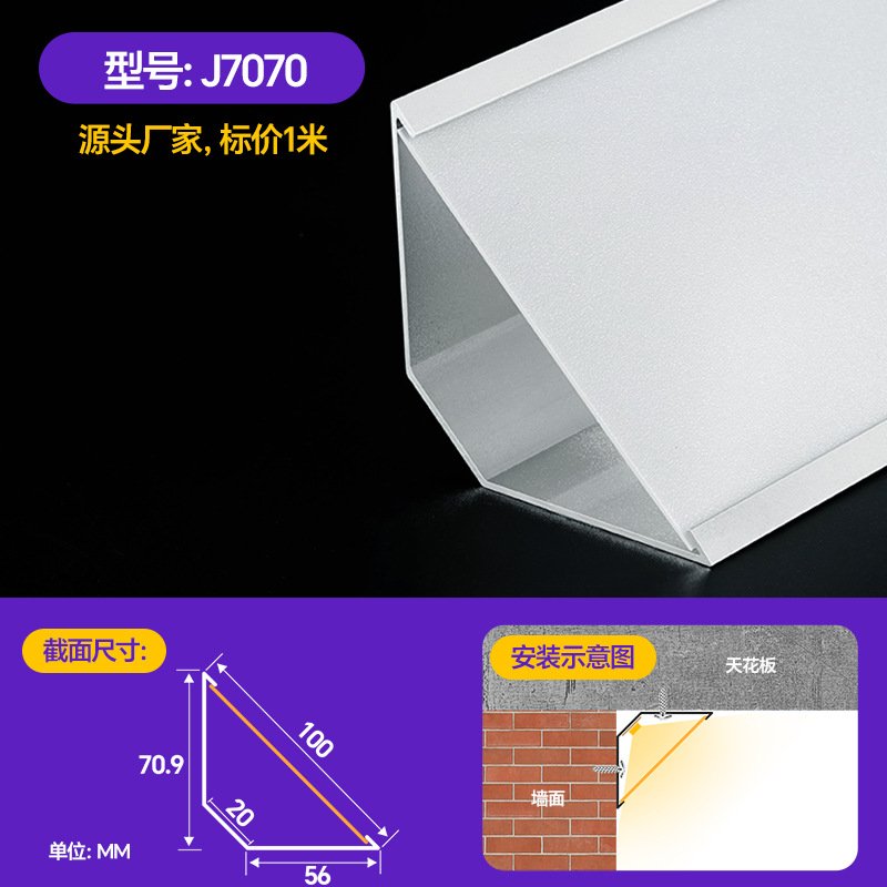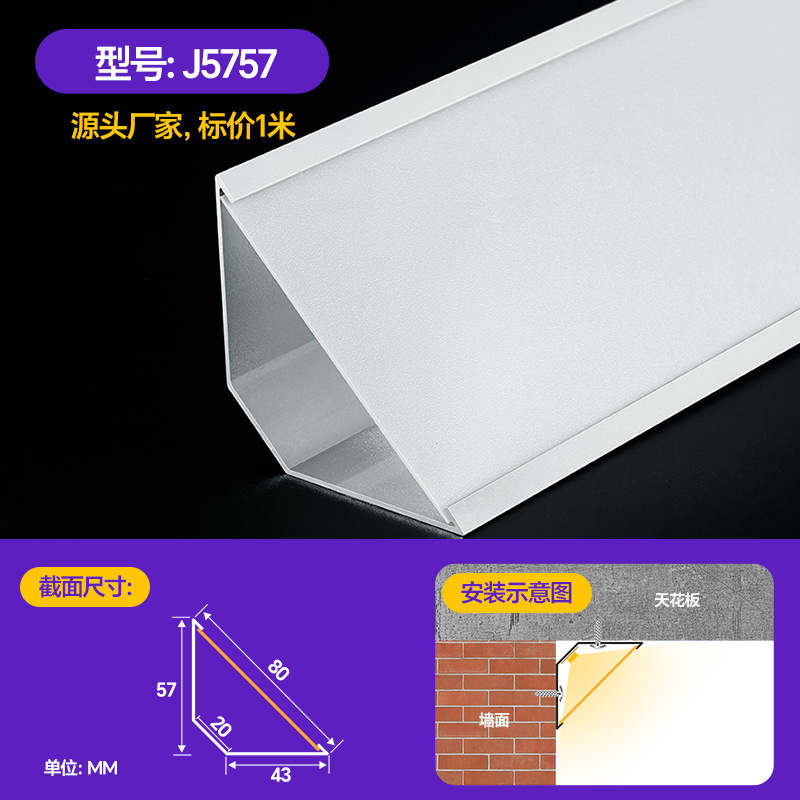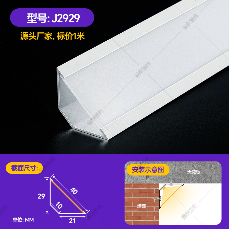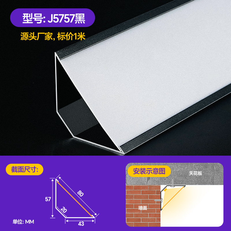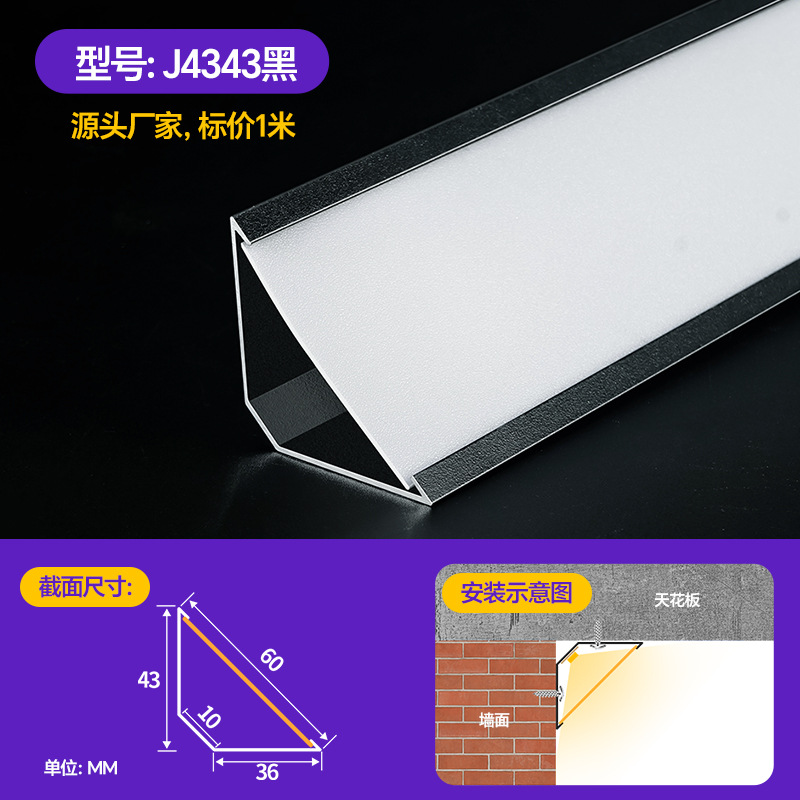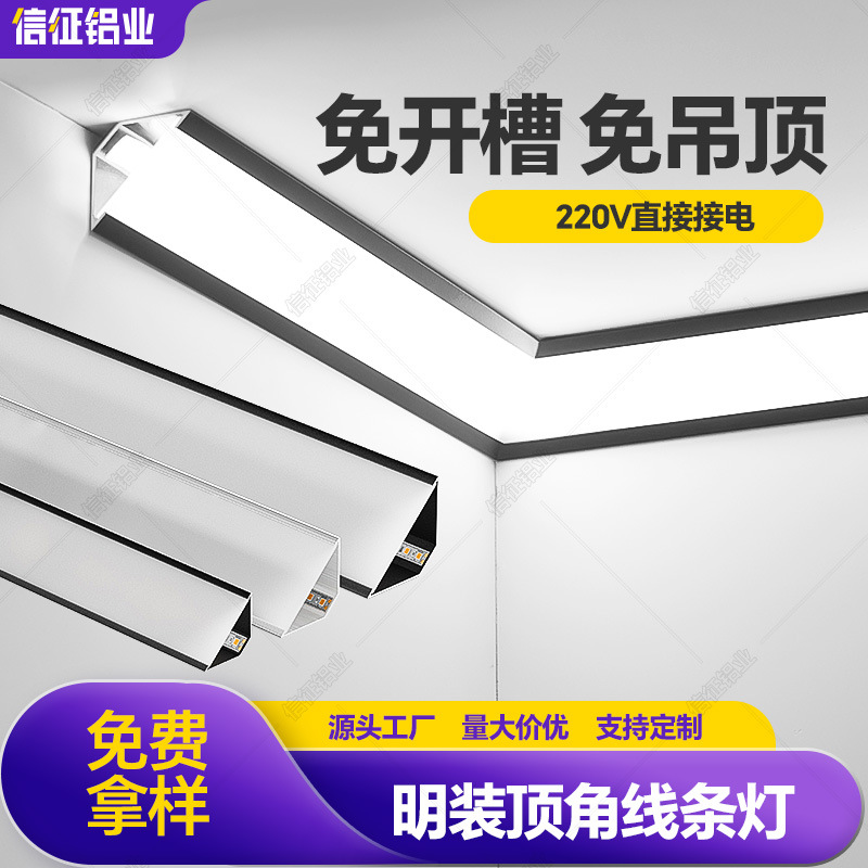 Накладной потолочный светильник без потолка, угловой линейный светильник из алюминиевого сплава, потолочный угловой линейный светильник, 45-градусный косой светоизлучающий треугольный линейный светильник