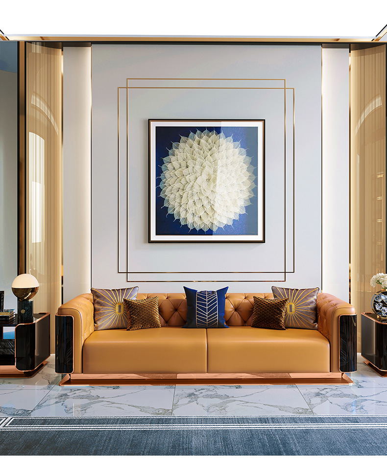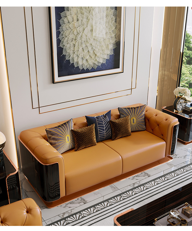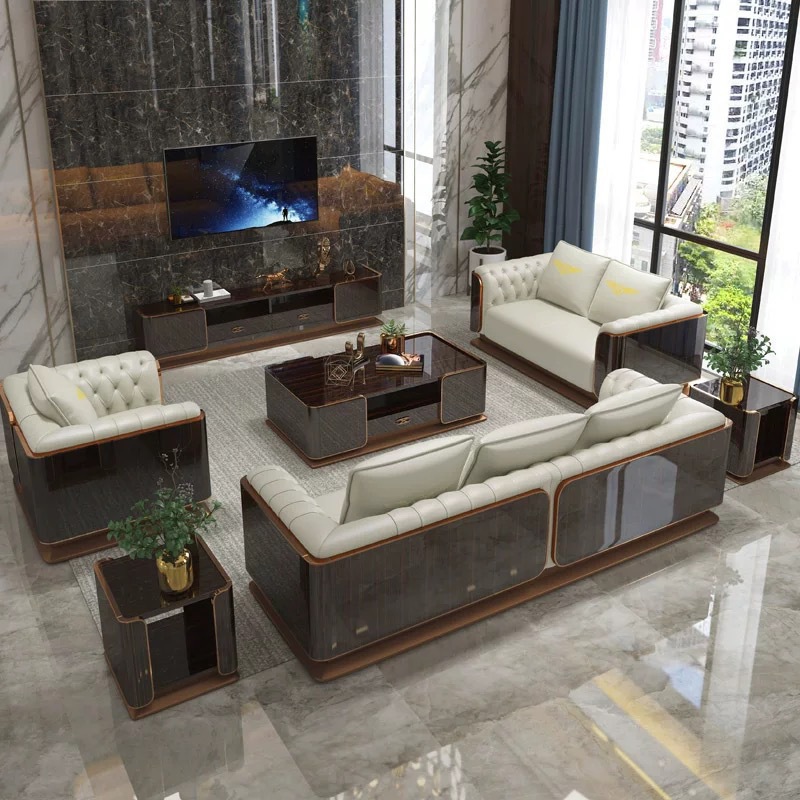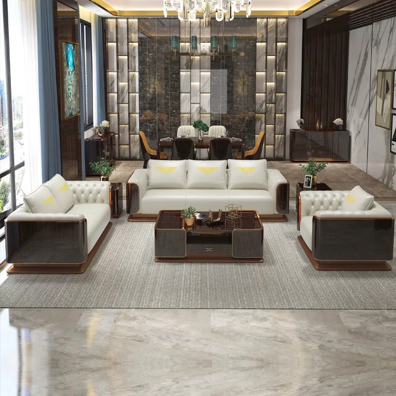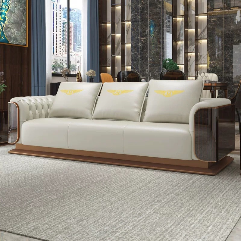 Итальянский стиль, легкая роскошь, элитная вилла, диван Bentley из натуральной кожи, большой плоский роскошный дом, диван большого размера.