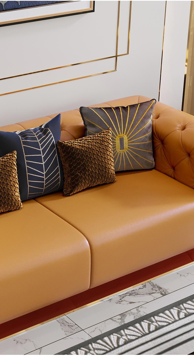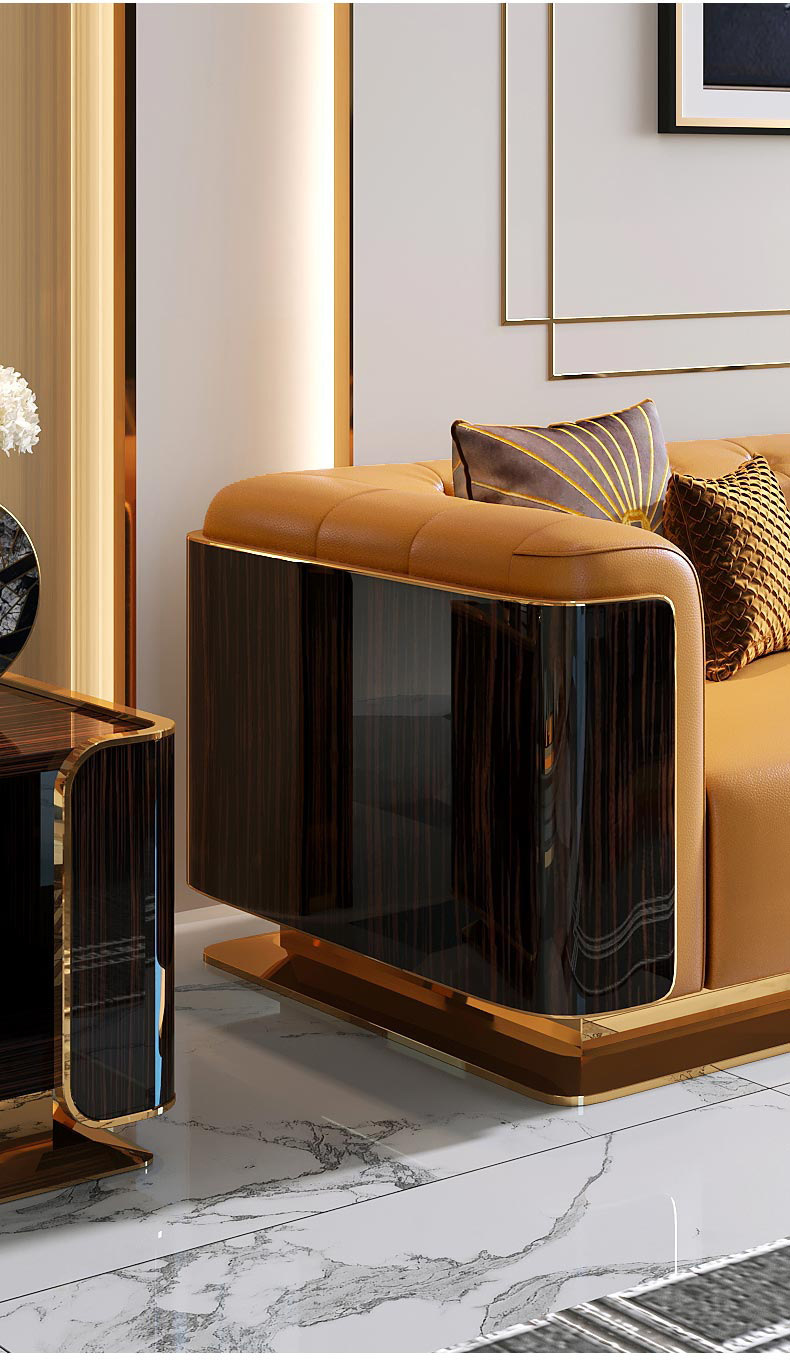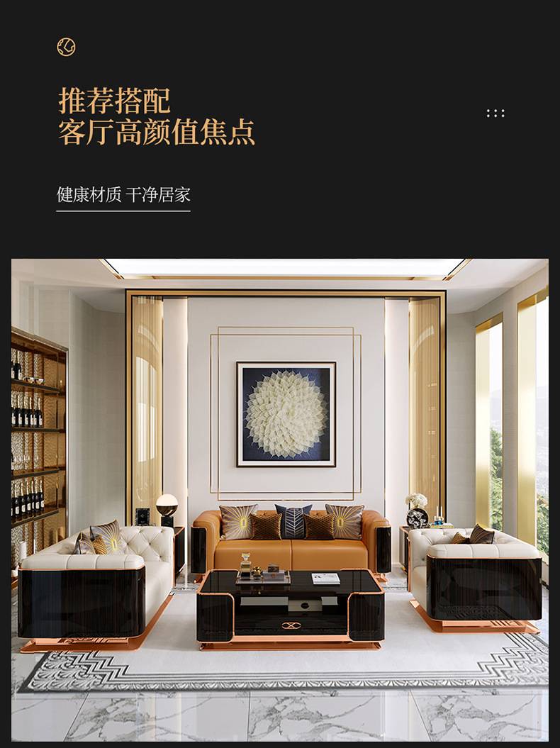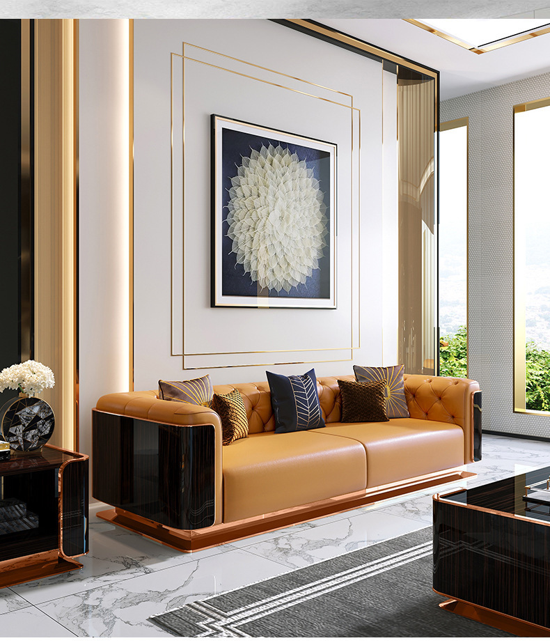 Итальянский стиль, легкая роскошь, элитная вилла, диван Bentley из натуральной кожи, большой плоский роскошный дом, диван большого размера.