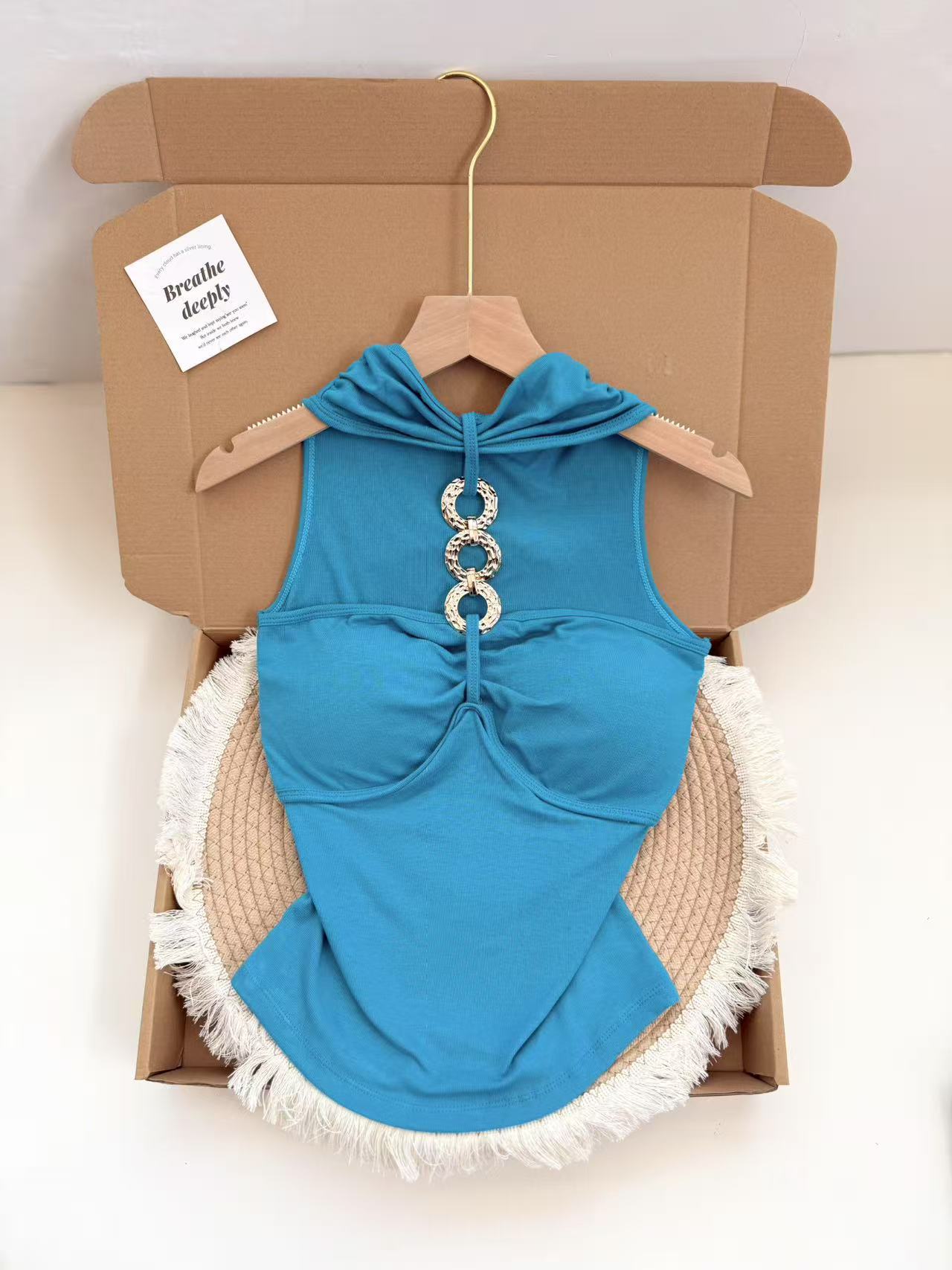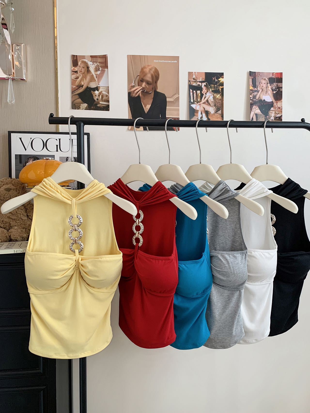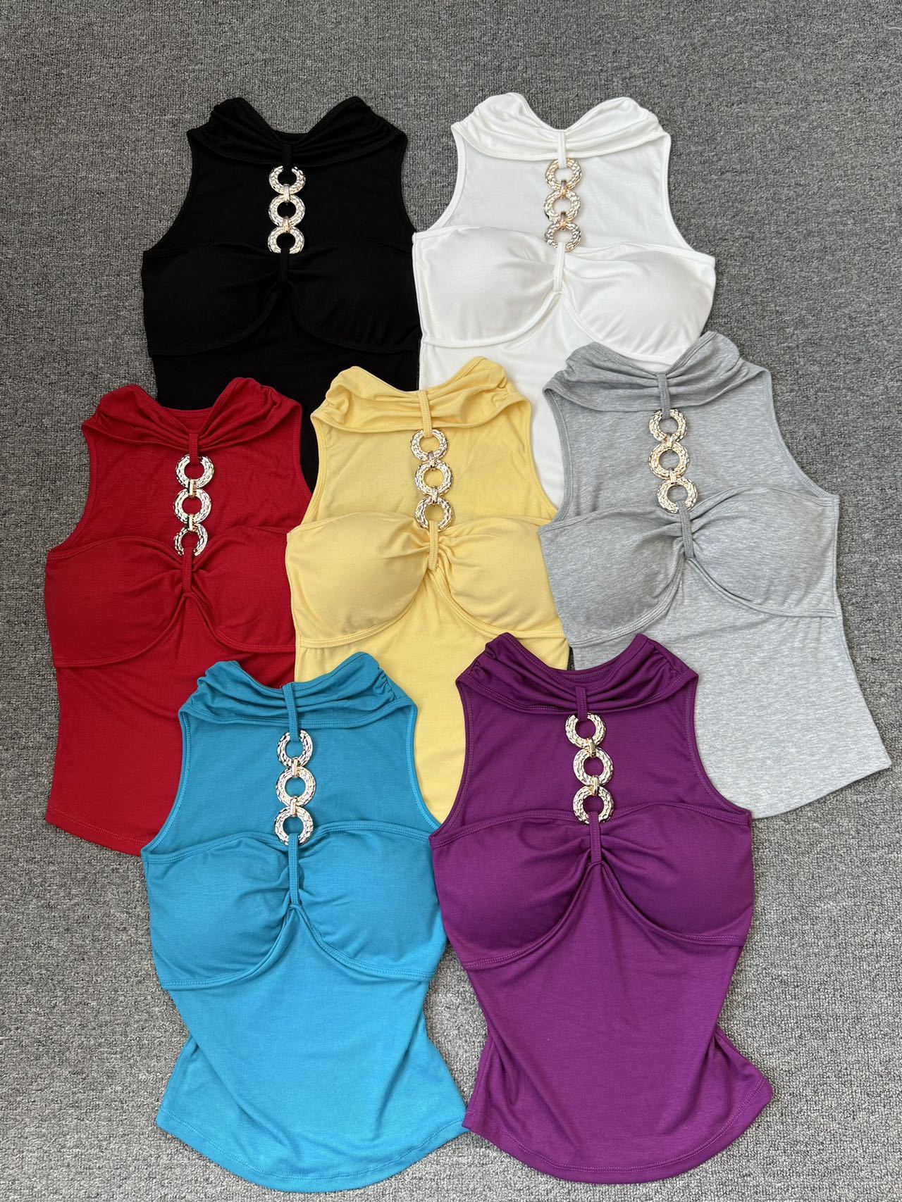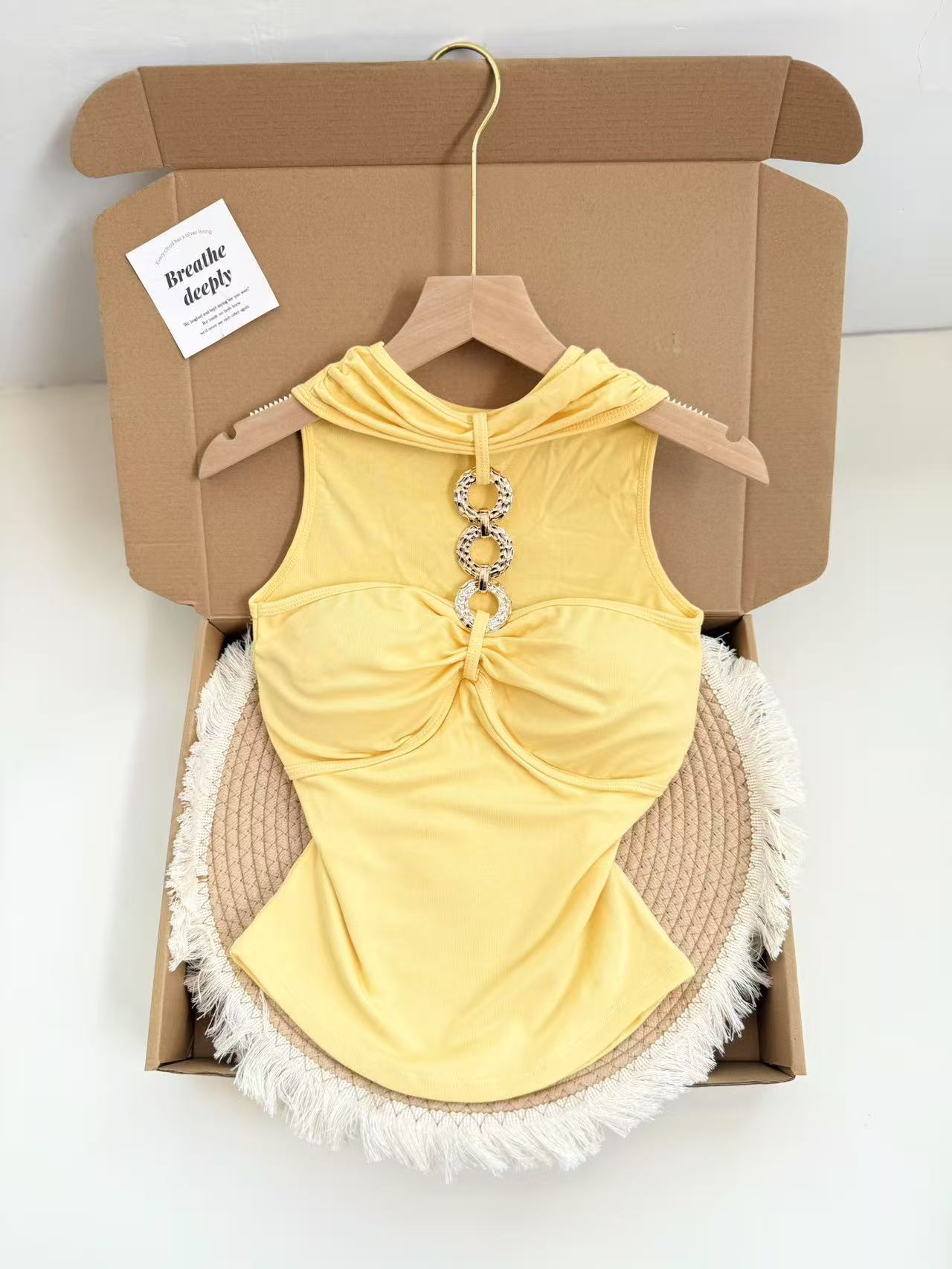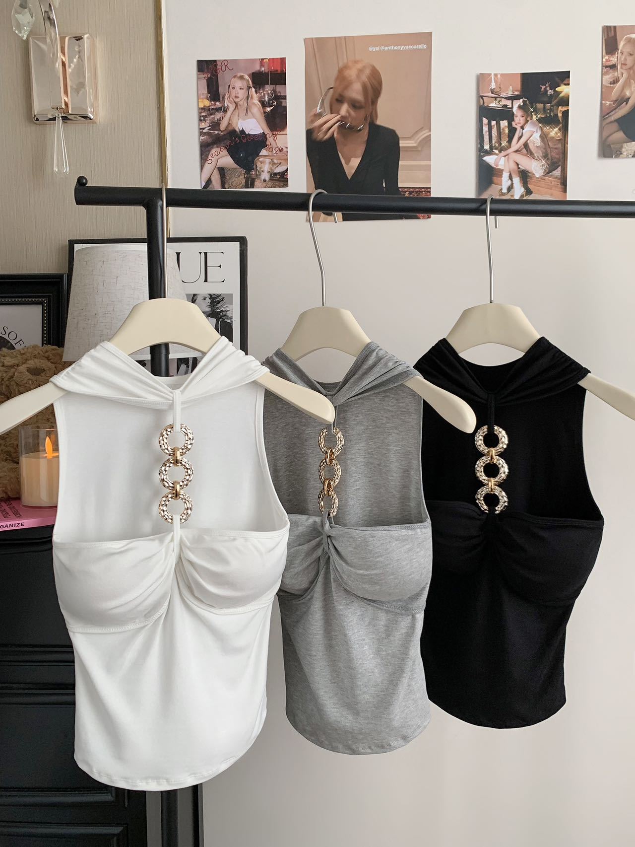 927 # Летний новый стильный жилет с лямкой на шее и цепочкой из чистого бриллианта для верхней одежды, нишевый сексуальный универсальный жилет с подушечками для груди, чтобы выглядеть стройным