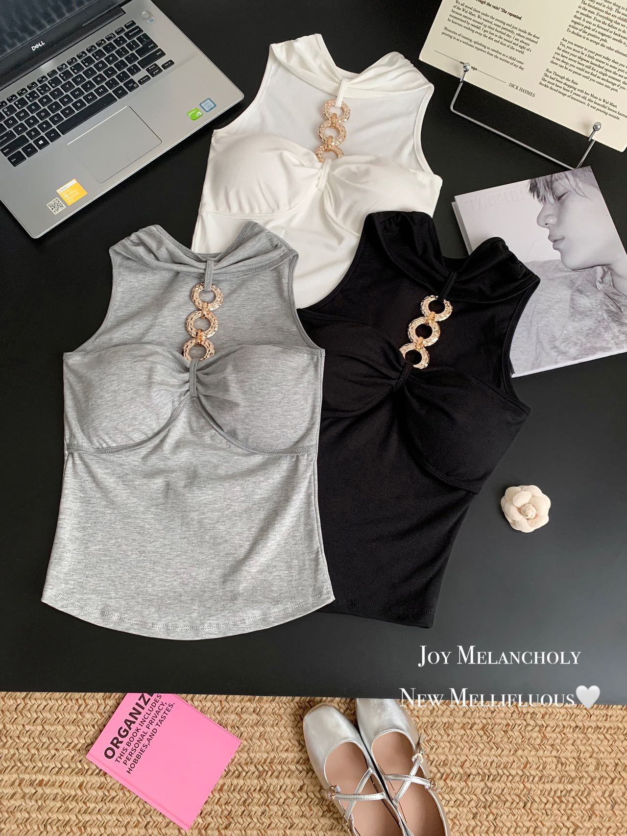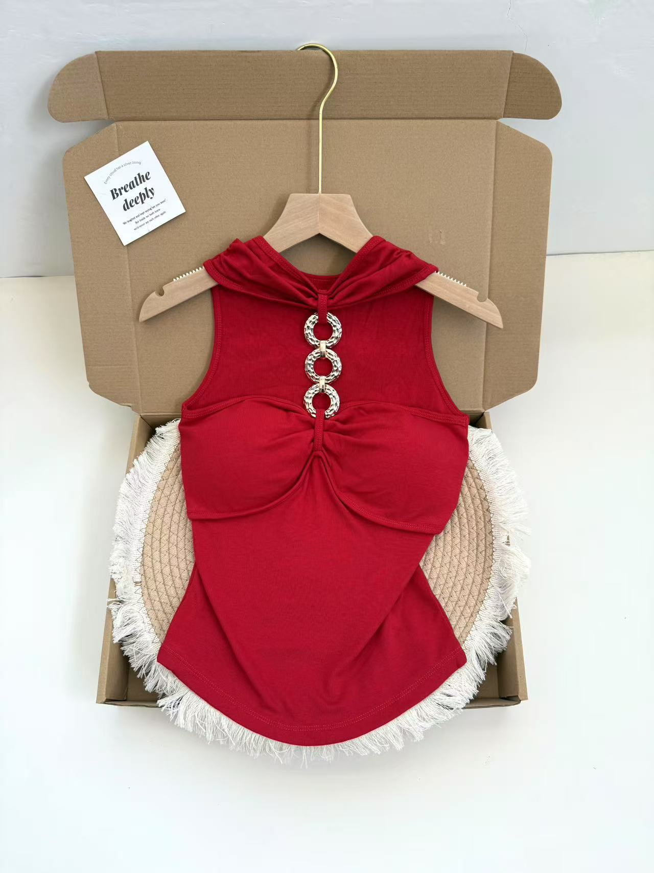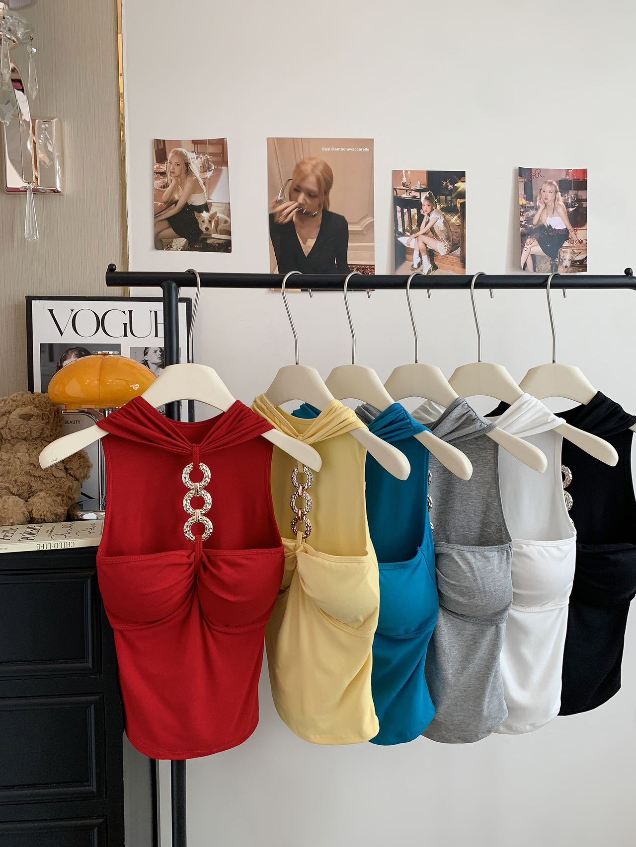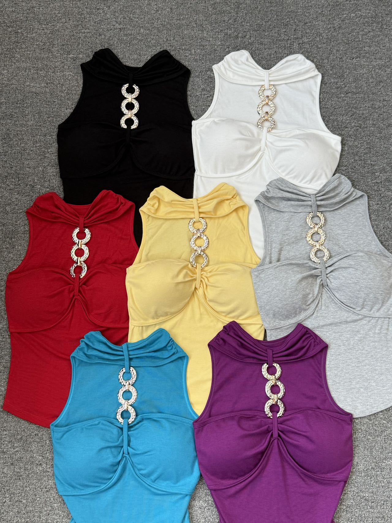927 # Летний новый стильный жилет с лямкой на шее и цепочкой из чистого бриллианта для верхней одежды, нишевый сексуальный универсальный жилет с подушечками для груди, чтобы выглядеть стройным