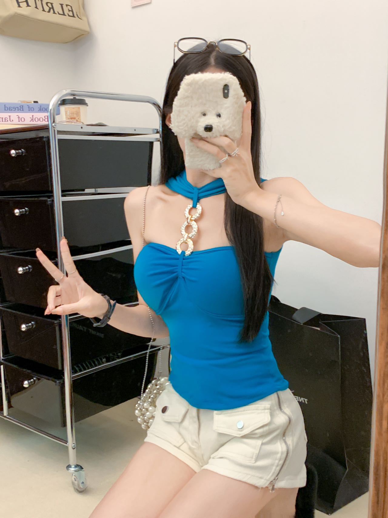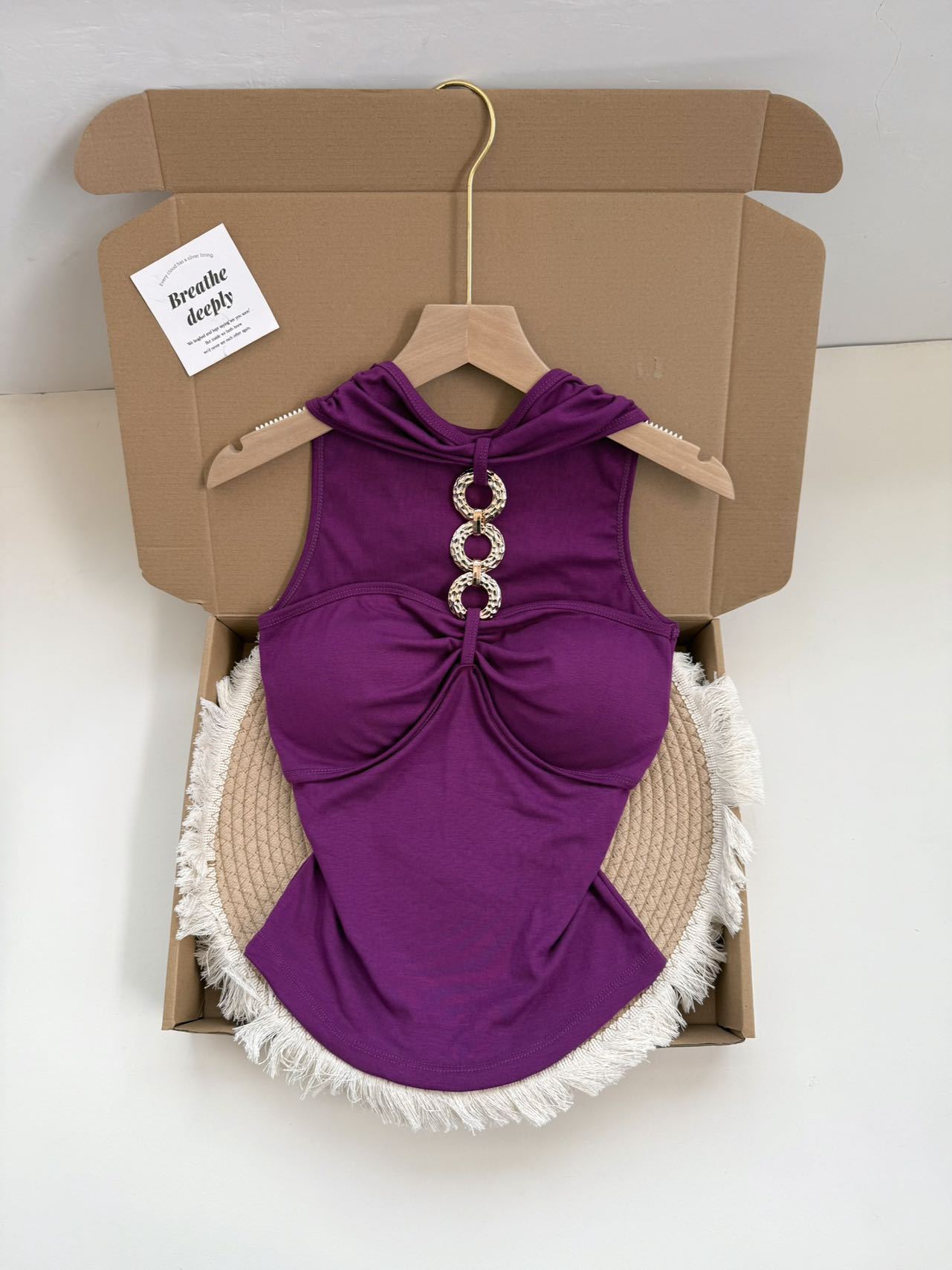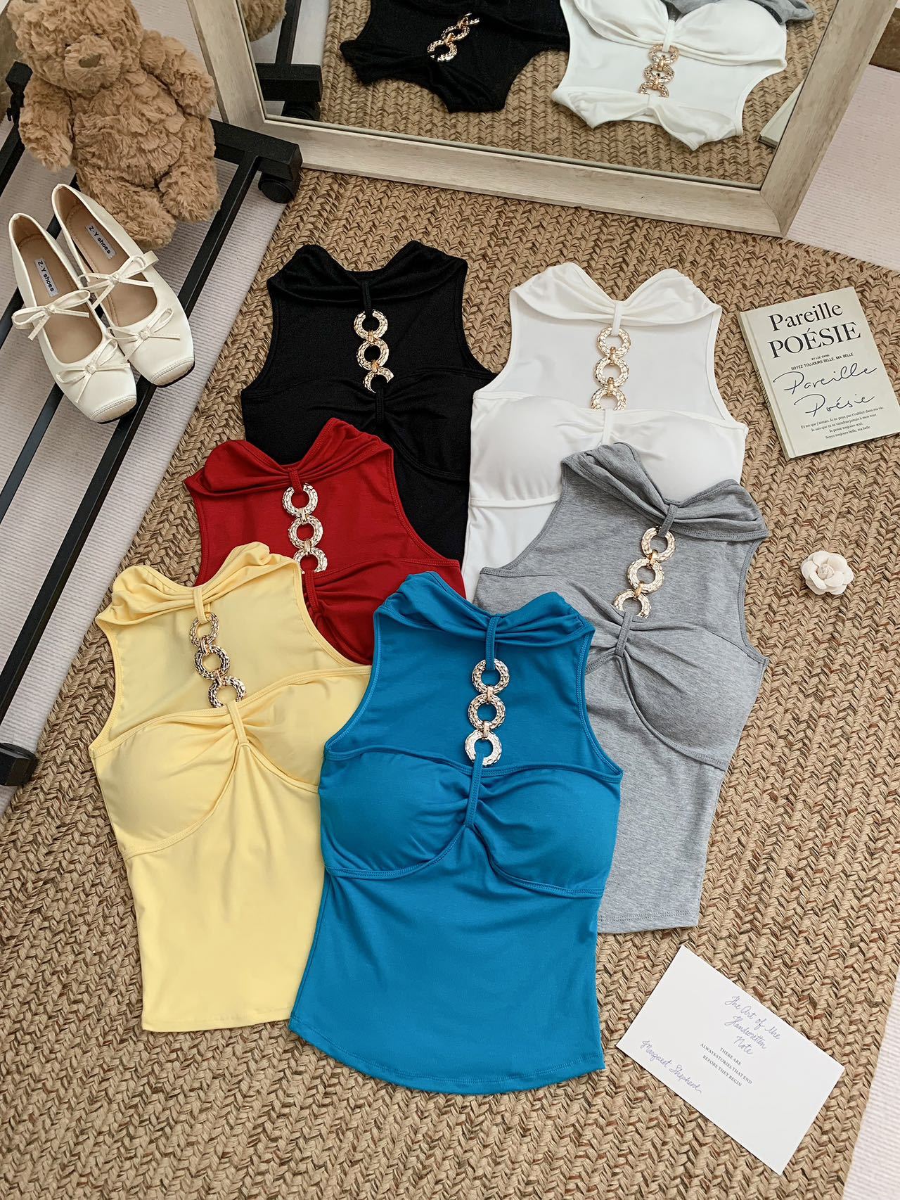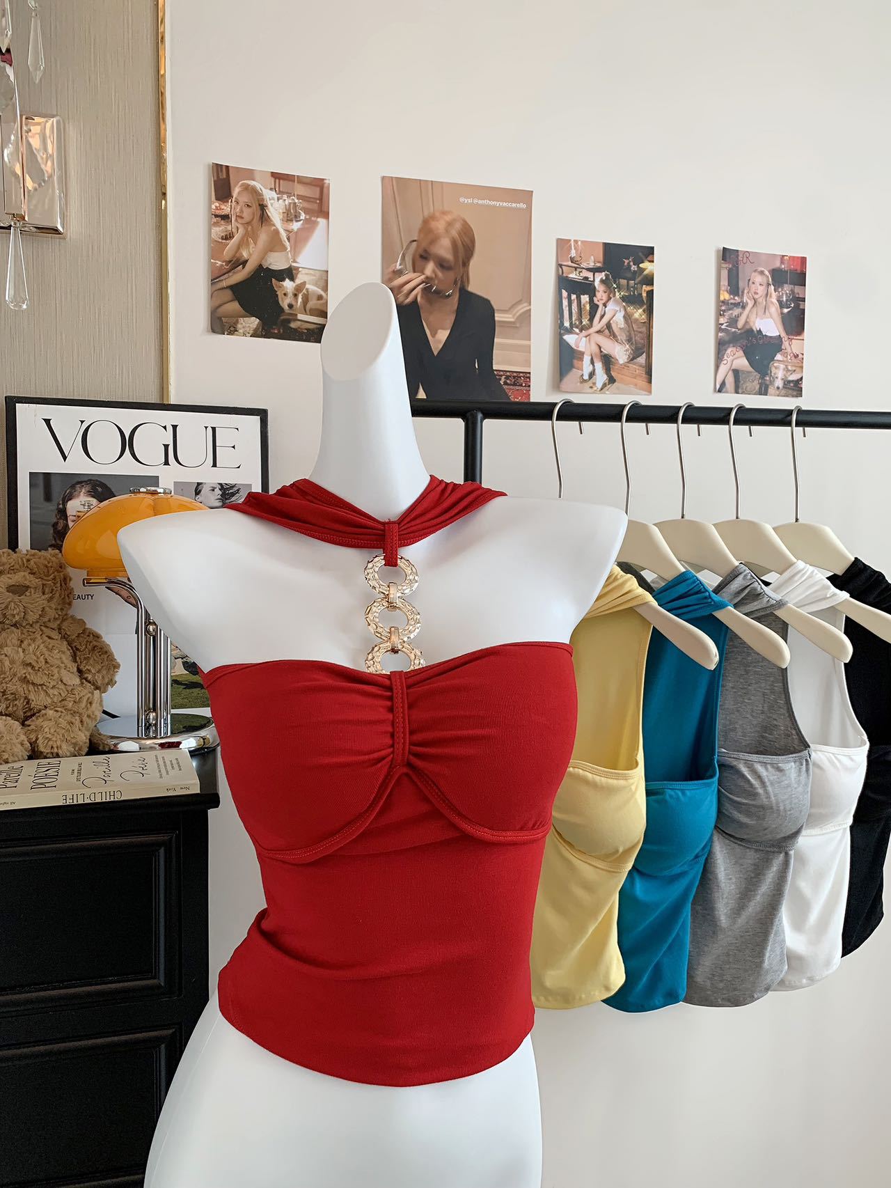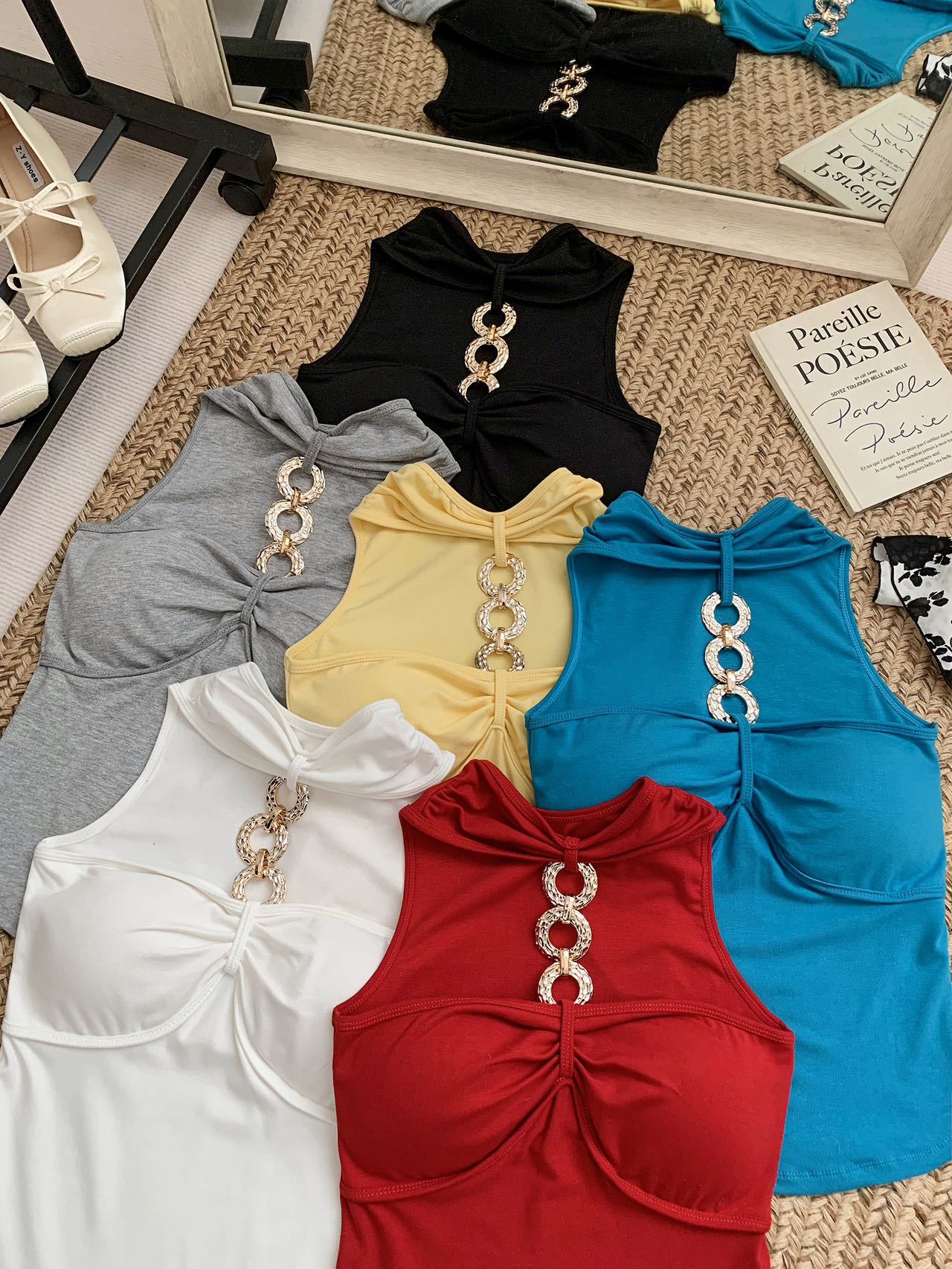 927 # Летний новый стильный жилет с лямкой на шее и цепочкой из чистого бриллианта для верхней одежды, нишевый сексуальный универсальный жилет с подушечками для груди, чтобы выглядеть стройным