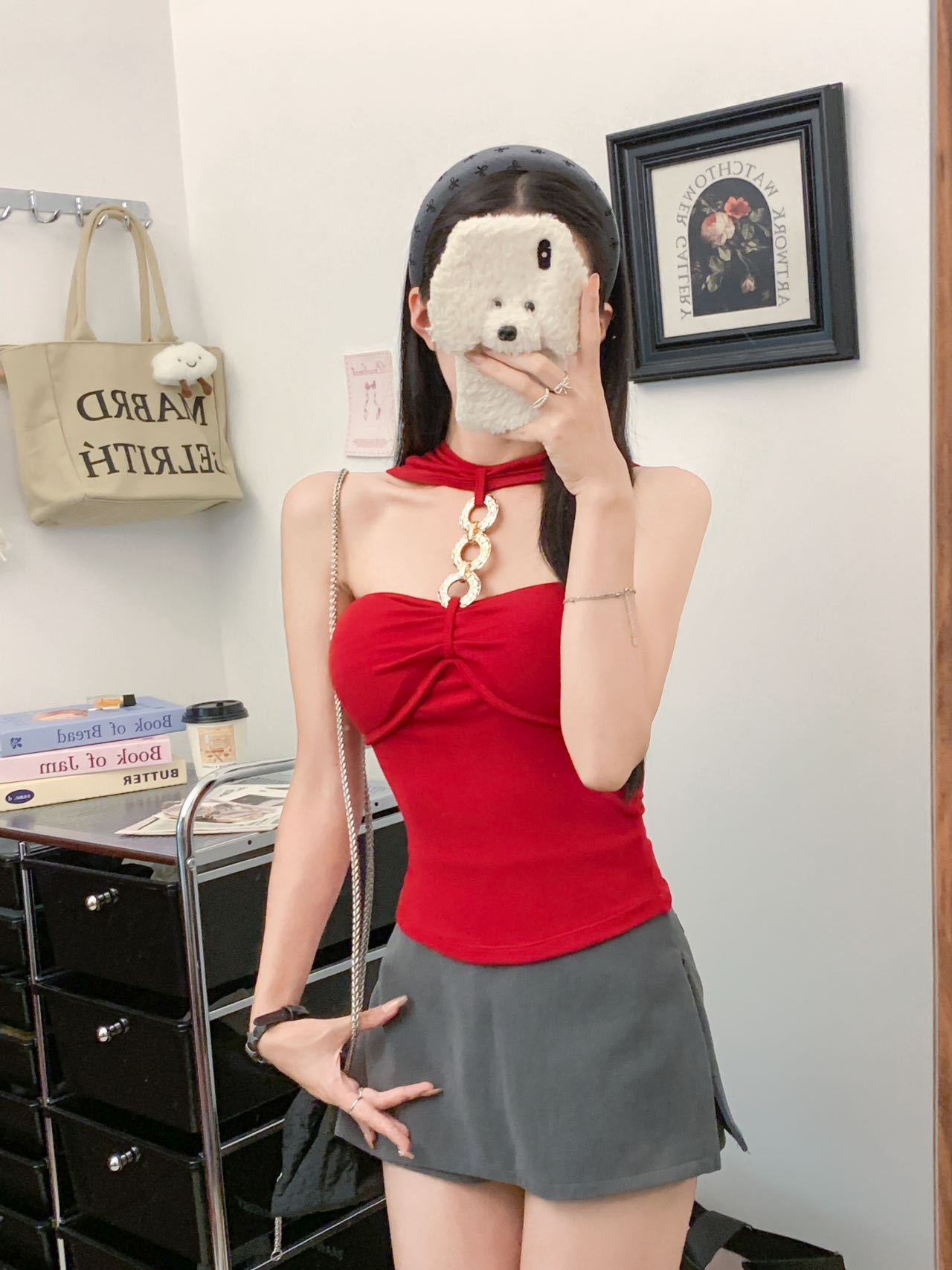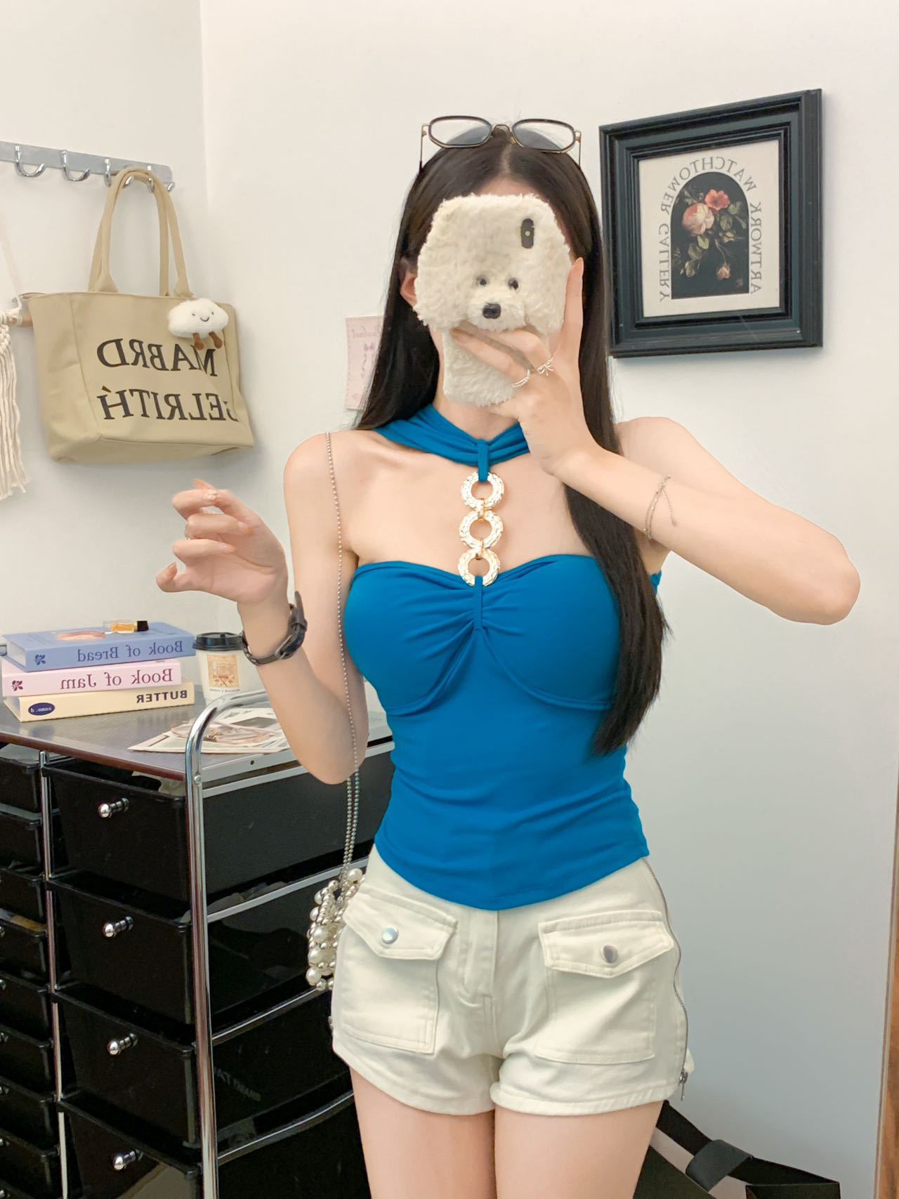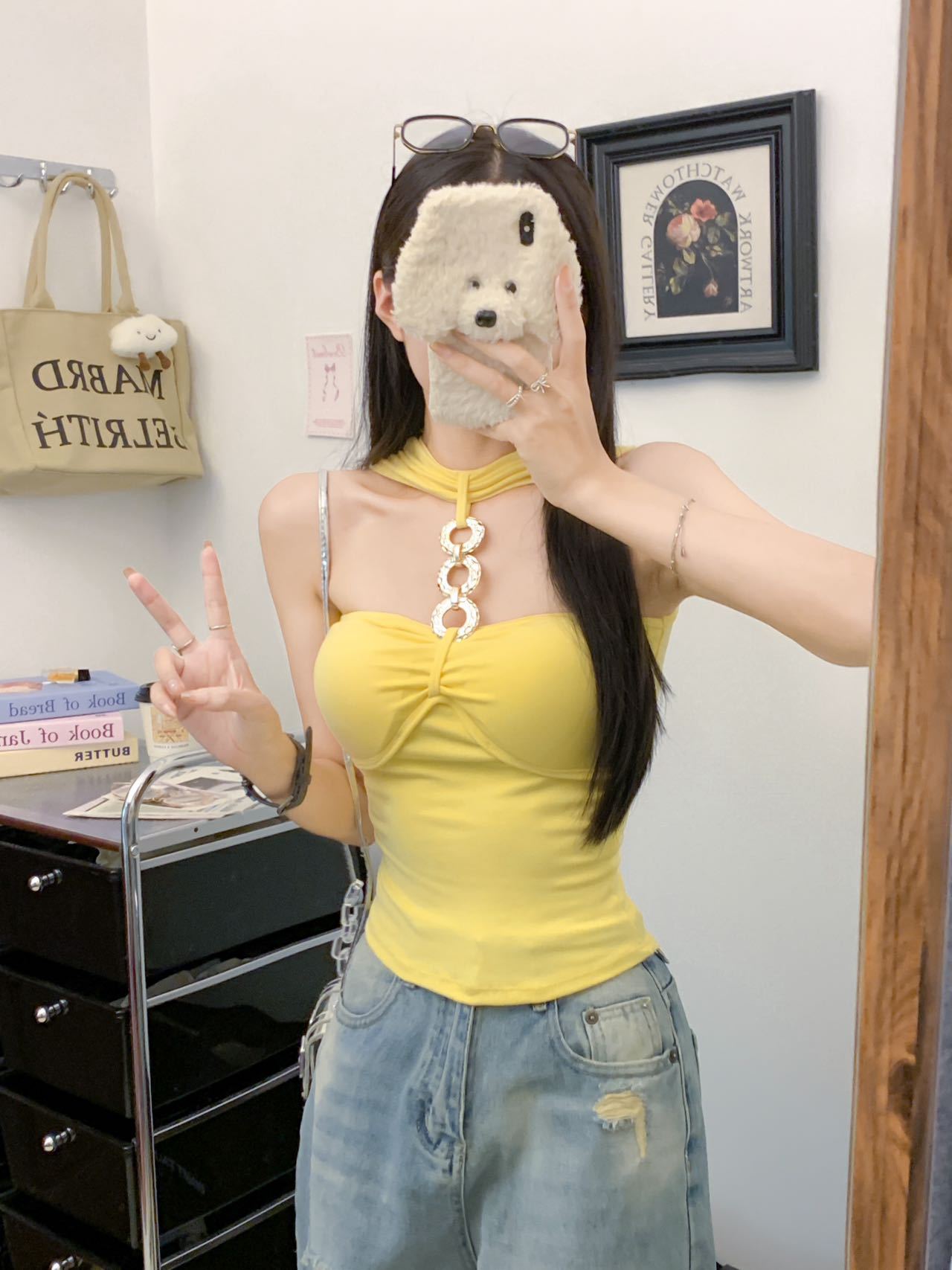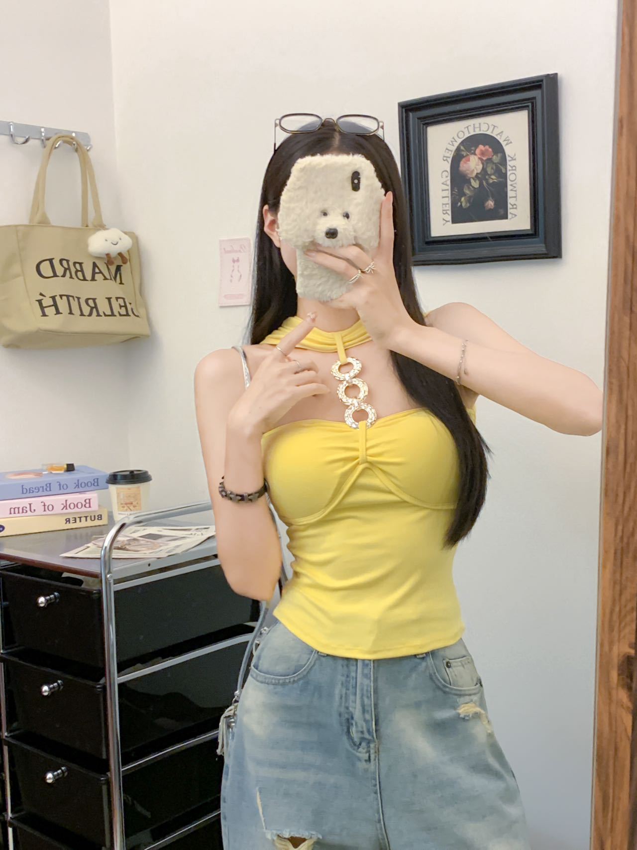 927 # Летний новый стильный жилет с лямкой на шее и цепочкой из чистого бриллианта для верхней одежды, нишевый сексуальный универсальный жилет с подушечками для груди, чтобы выглядеть стройным