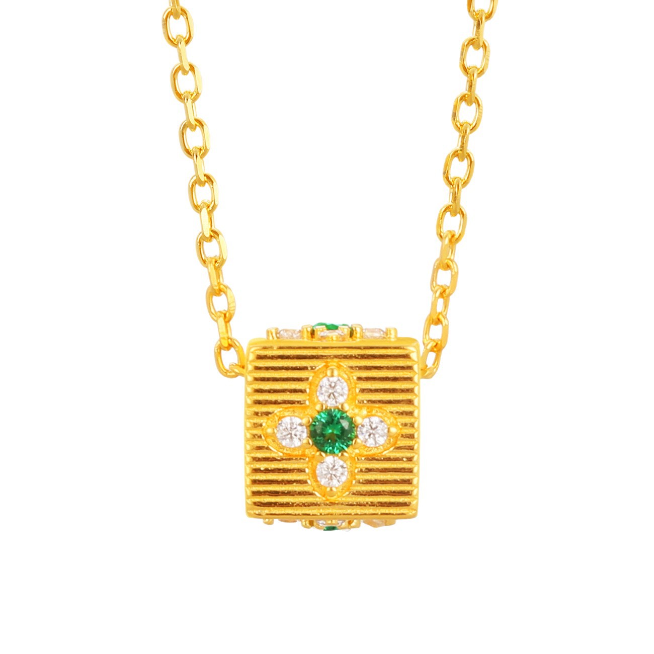 Комплект ожерелья с квадратным четырехлистным клевером, модный, в стиле легкой роскоши, кубический четырехлистный клевер, геометрический квадрат, трендовый, нишевый, французское золотое покрытие, серебро, фабричное производство