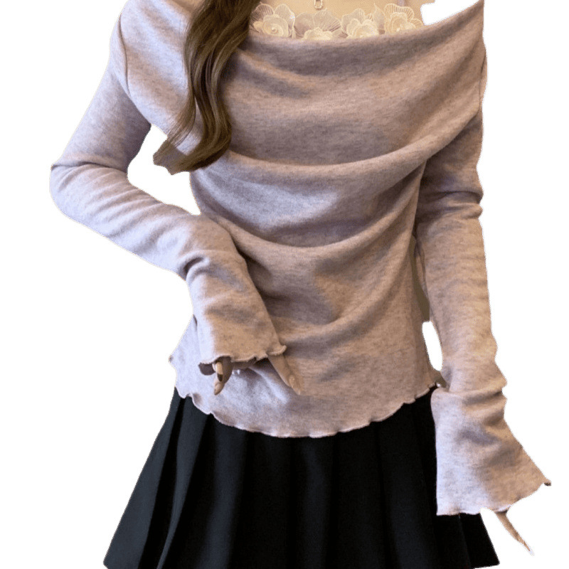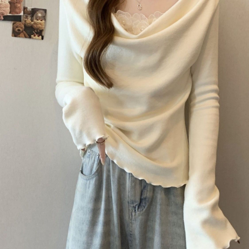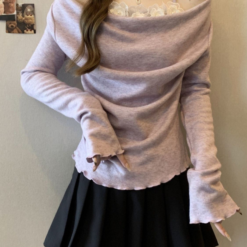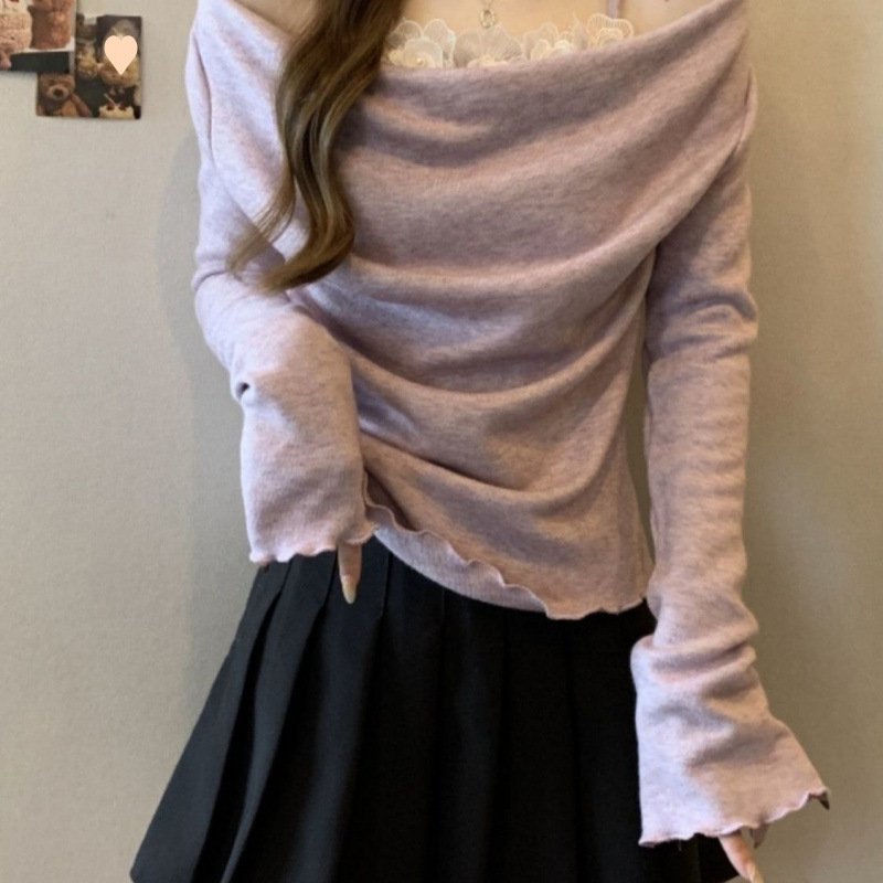 Немецкая бархатная рубашка больших размеров на одно плечо с длинными рукавами для женщин, весенне-осенний новый свободный кружевной топ для похудения