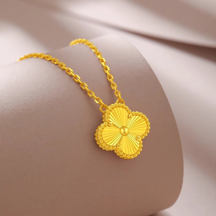 Ожерелье с четырехлистным клевером для женщин, нишевый легкий роскошный позолоченный серебряный амулет на удачу.