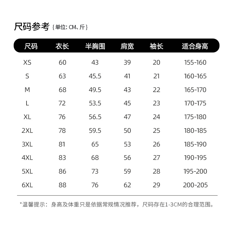 XS; S; M; L; XL; 2XL; 3XL; 4XL; 5XL; 6XL