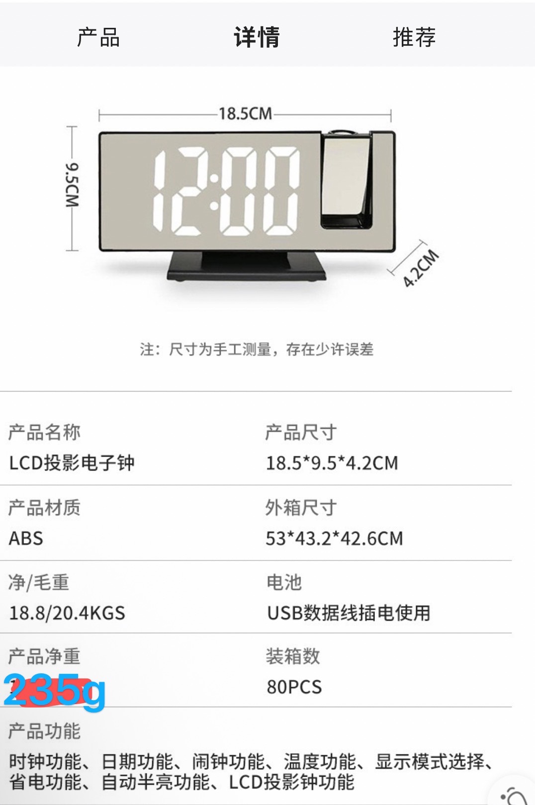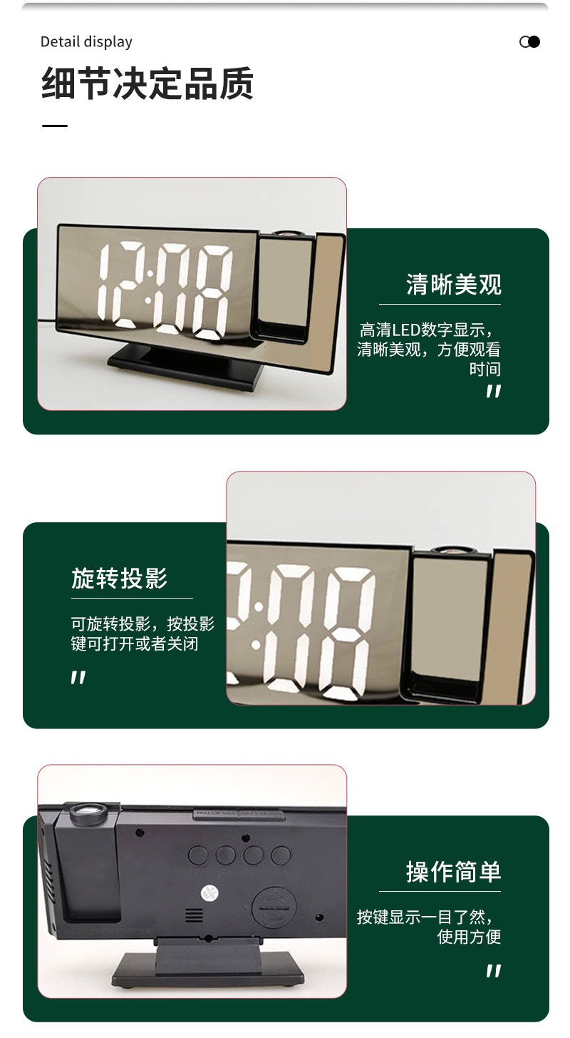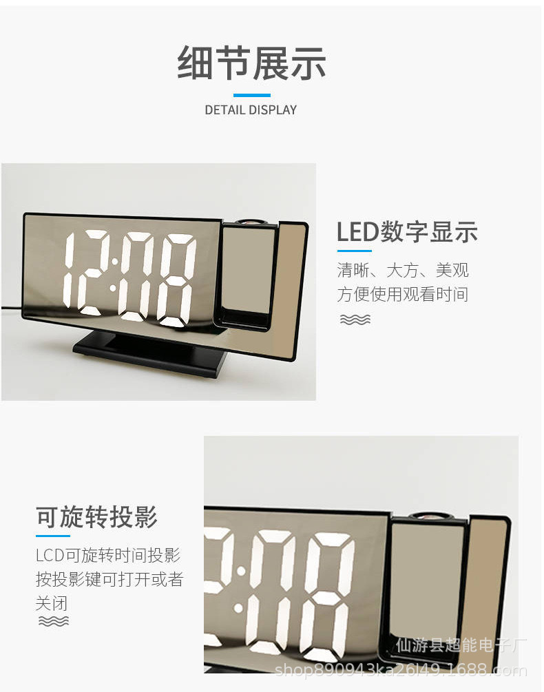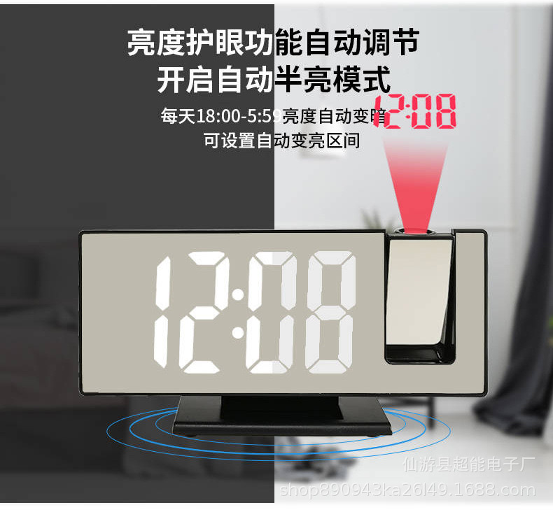 Многофункциональные умные часы-будильник с LED-проекцией, датчиком освещенности и цифровым зеркалом 3618LP с USB, в наличии