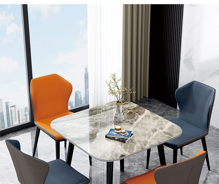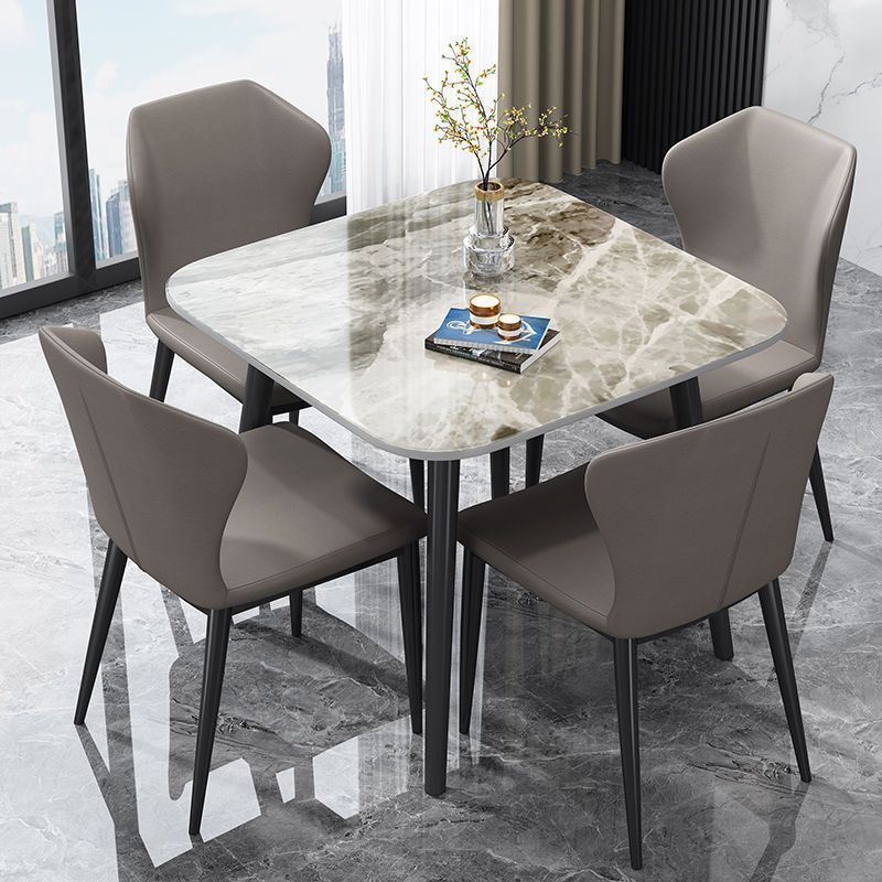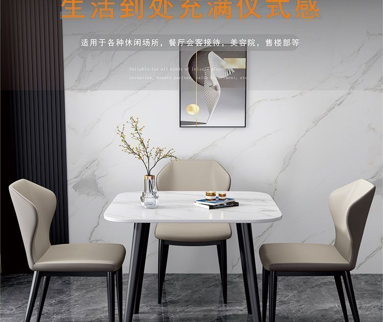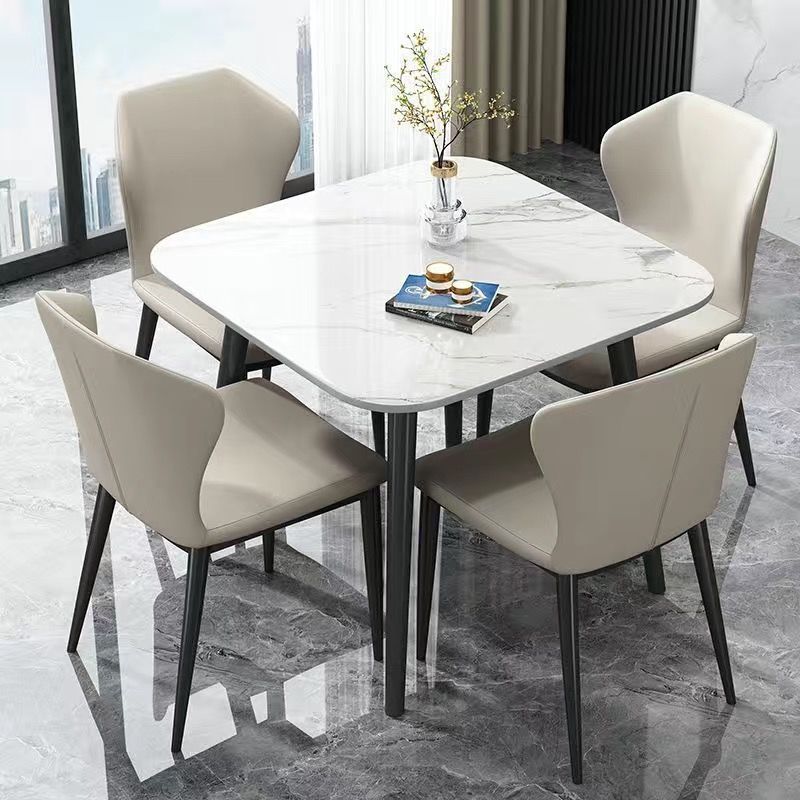 Обеденный стол из глянцевого сланца в скандинавском стиле, квадратный, для небольшой квартиры, для отдыха, переговоров и встреч, комплект для домашнего обеденного зала
