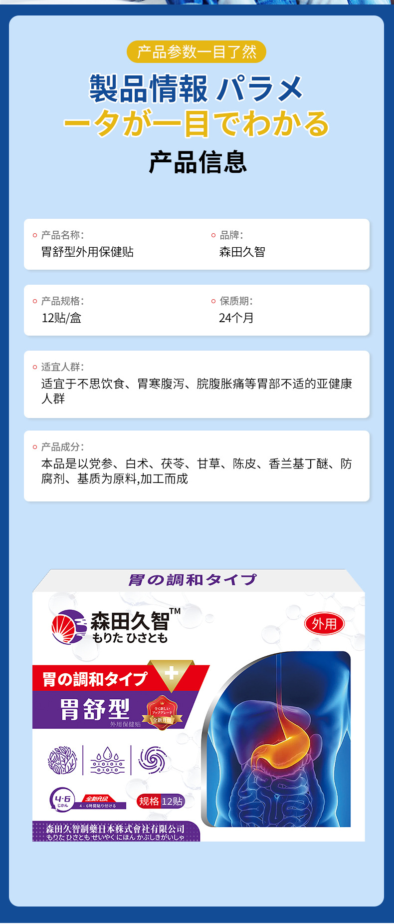 Пластырь для здоровья Мориты Хироюки, облегчающий желудок, отсутствие аппетита, холод в желудке, диарея, дискомфорт в желудке, вздутие желудка, пластырь для внешнего ухода