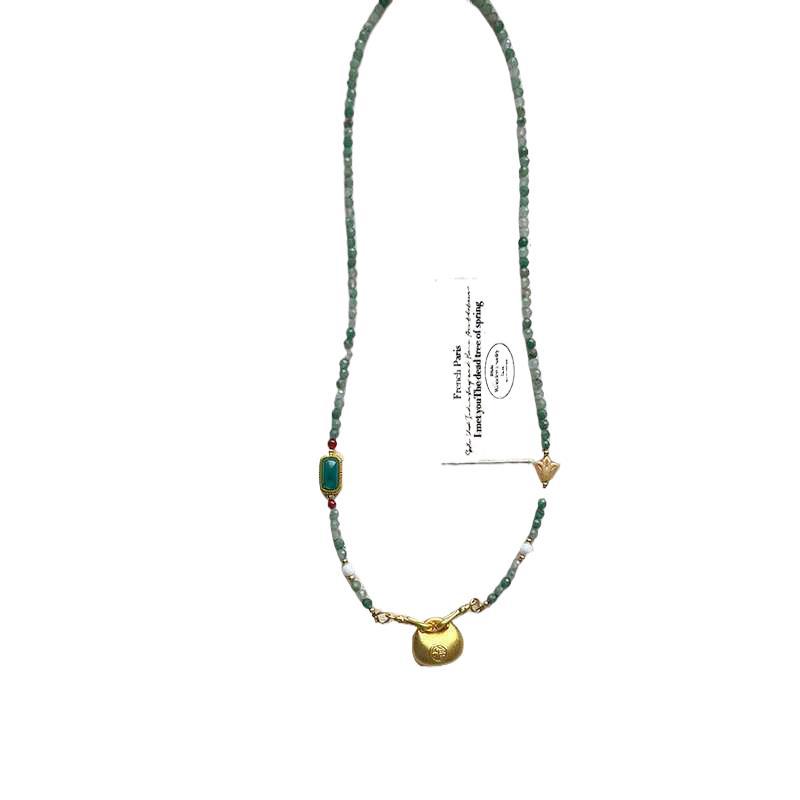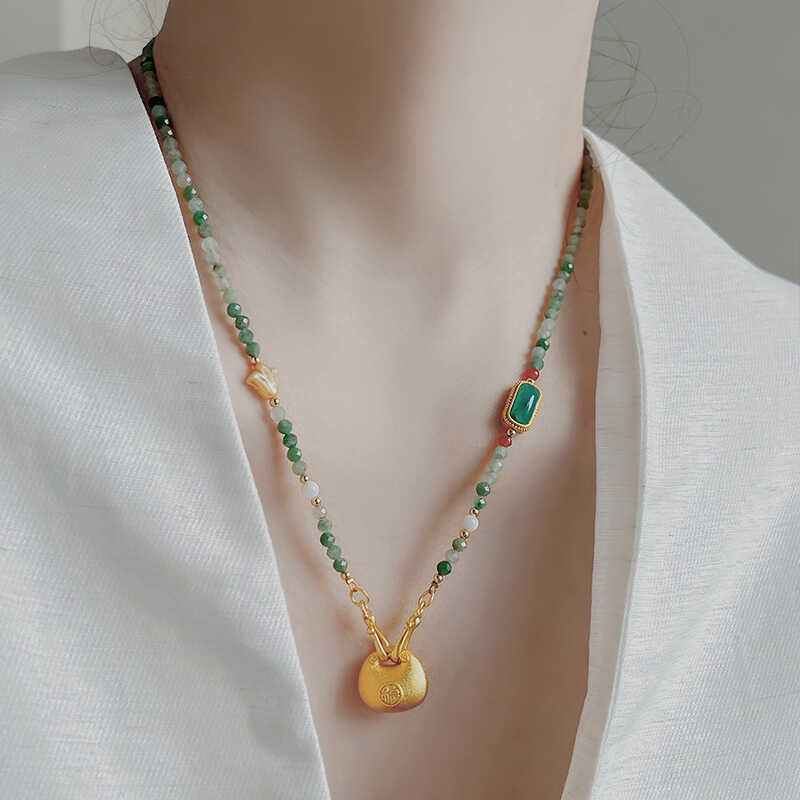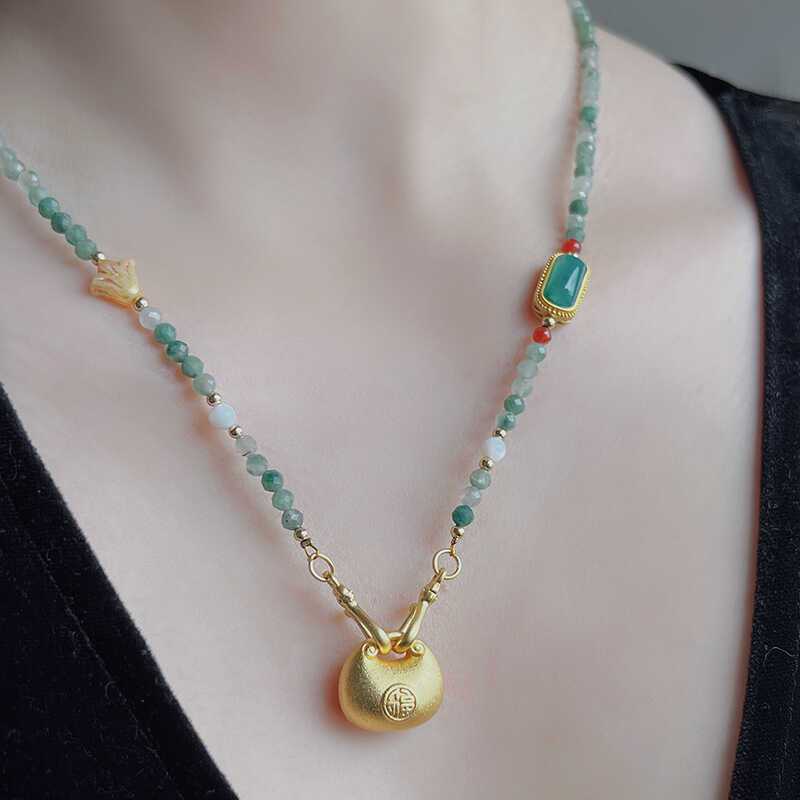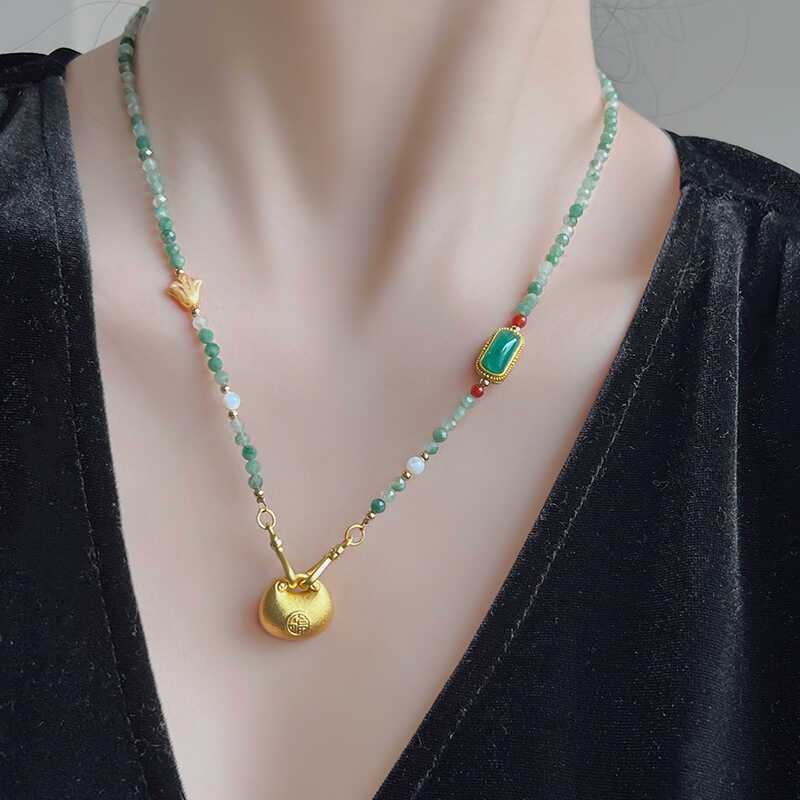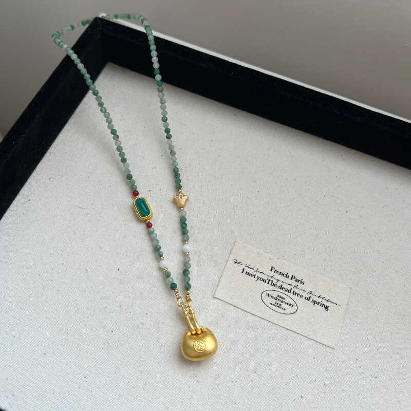 Аутентичное новое ожерелье в китайском стиле для женщин, нишевое ожерелье из натурального нефрита, изысканное ретро-цепочка на ключицу с бисером, маленькое ожерелье-сумка на удачу