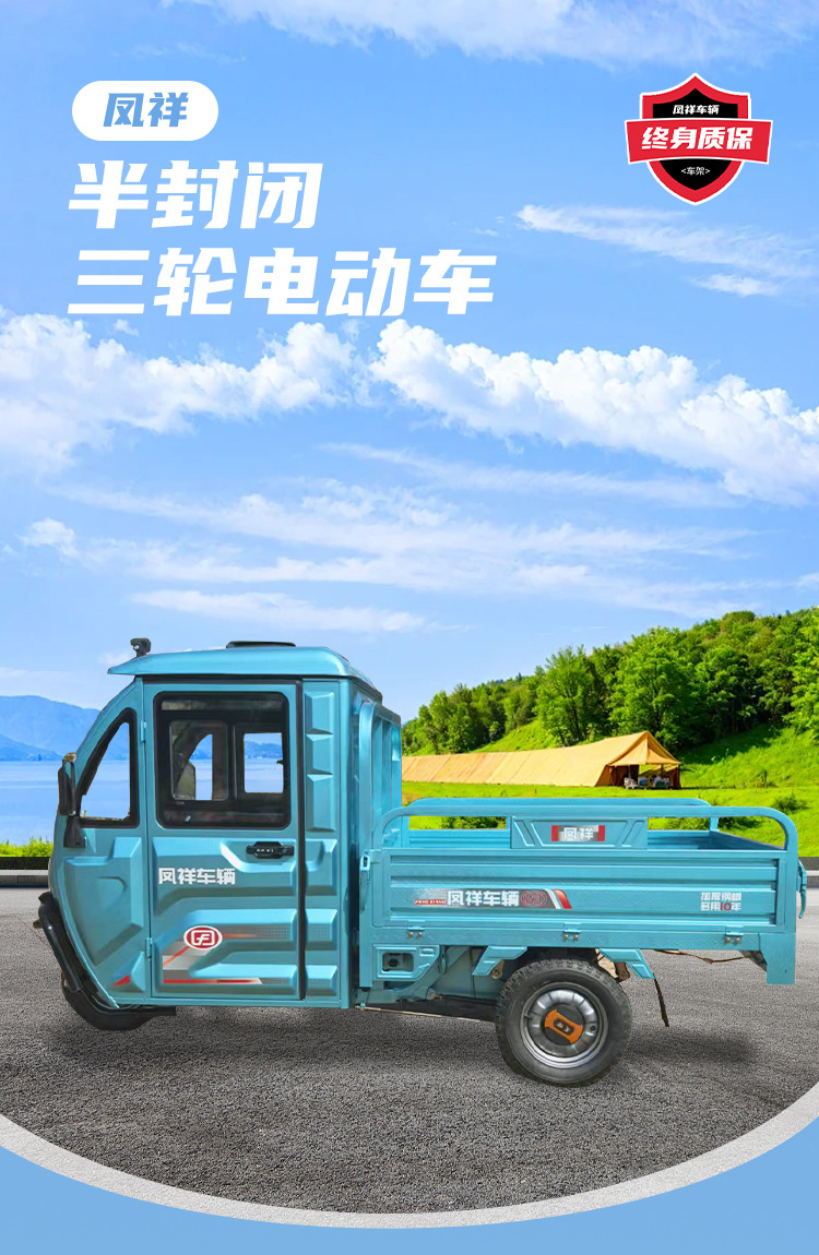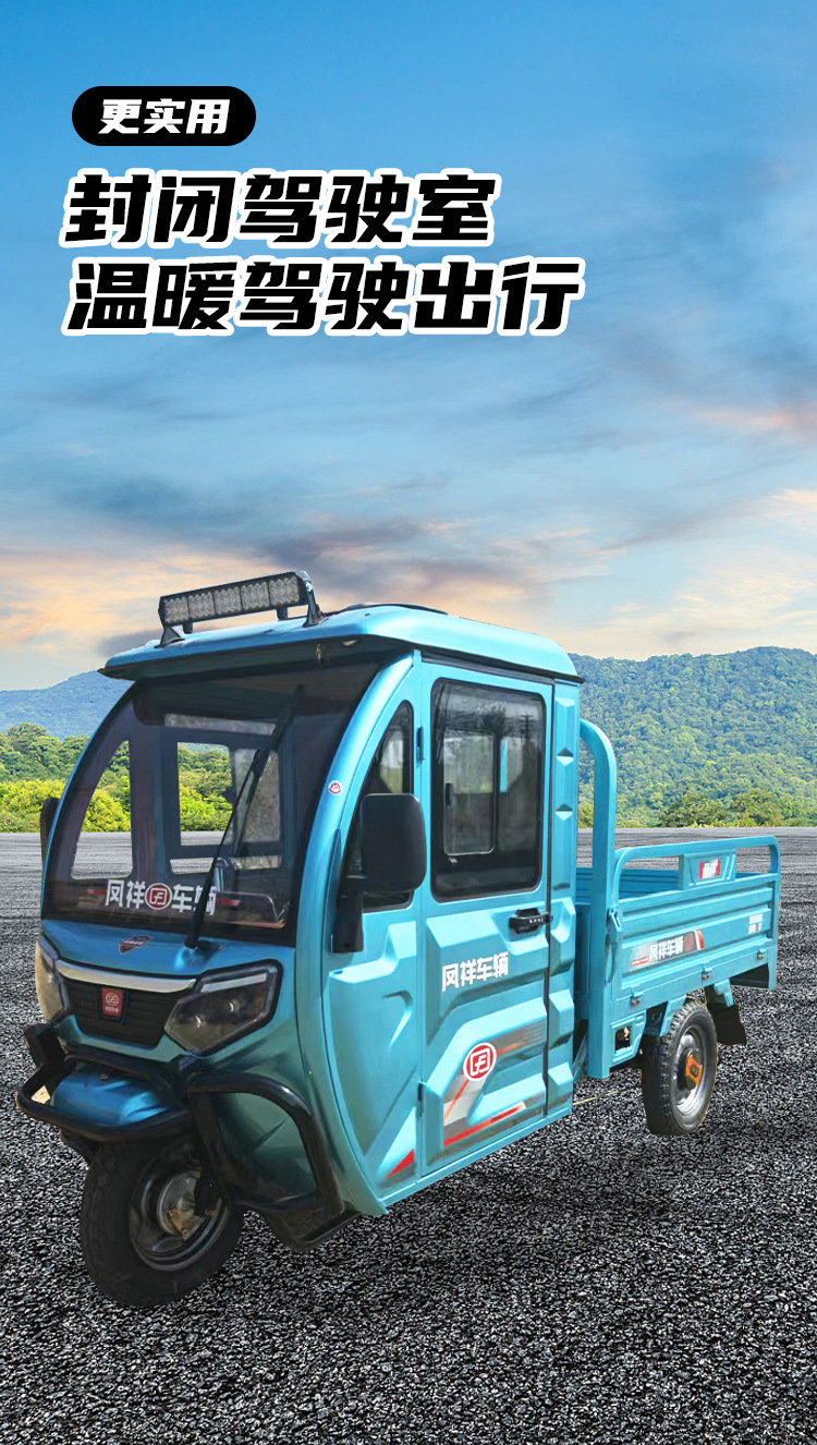 Полузакрытый электрический трехколесный велосипед Fengxiang для сельскохозяйственного использования, тяжелых условий эксплуатации, бытовых грузов, подъема, новый национальный стандарт, двойного назначения с бензином и электричеством.