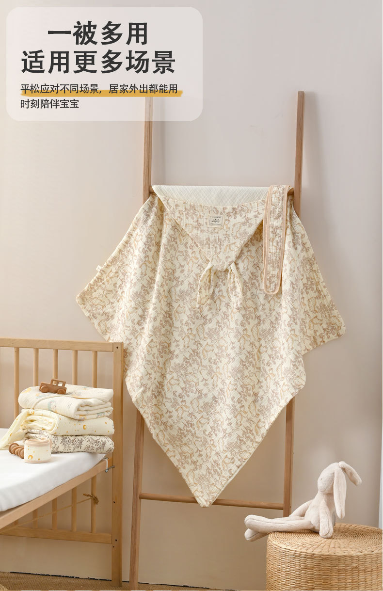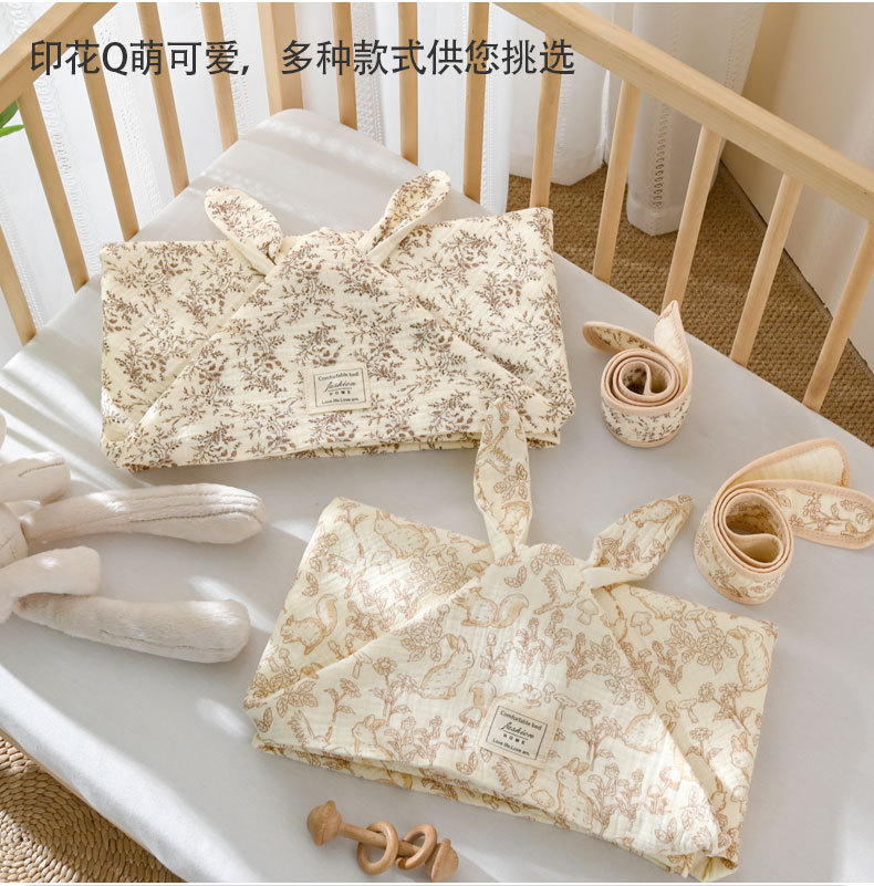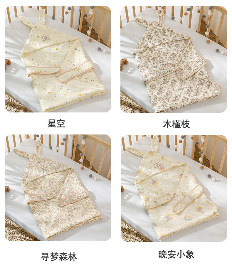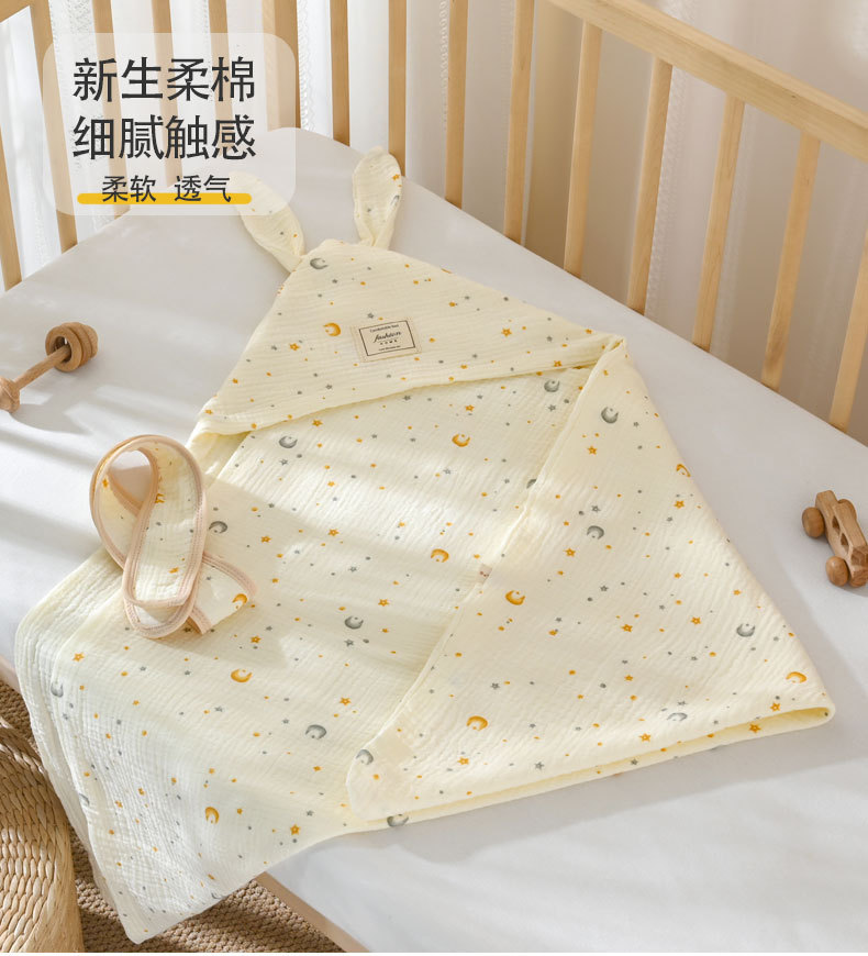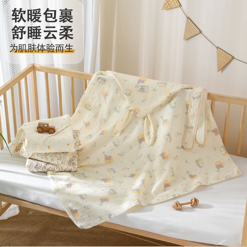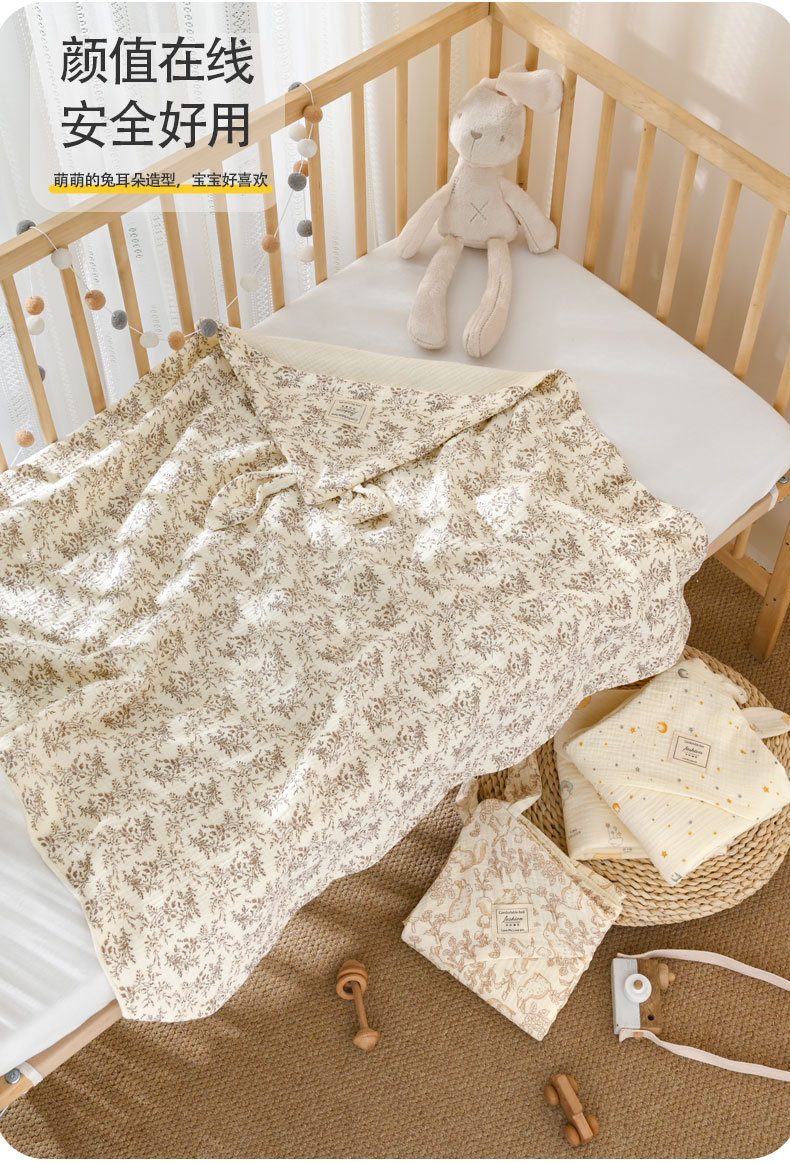 Детское четырехслойное хлопково-марлевое одеяло, весенне-летнее одеяло для новорожденных, детское одеяло, одинарное одеяло с длинными ушками и капюшоном для новорожденных