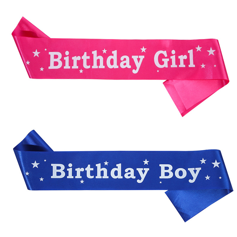 Набор для детского дня рождения для мальчиков и девочек с наплечными ремнями, атласная ткань с принтом, лента для детского дня рождения