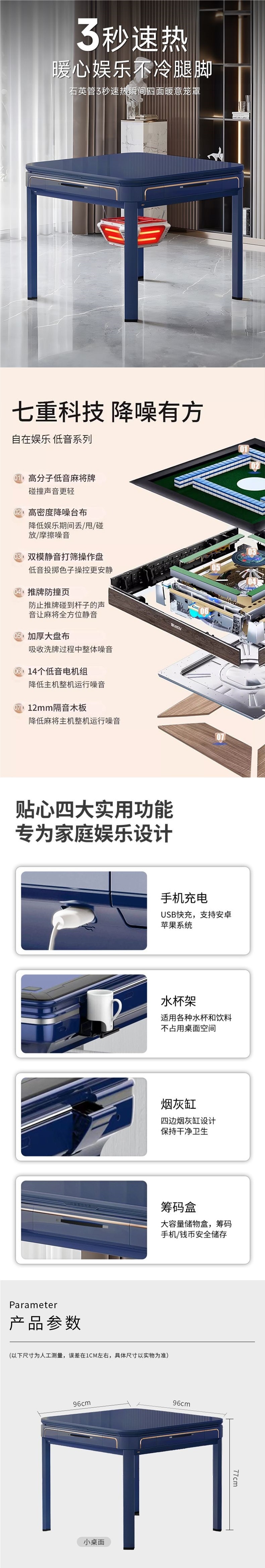 Бесшумная машина для маджонга, полностью автоматический домашний обеденный стол, двойного назначения, новинка 2024 года, многофункциональная универсальная машина для подогрева стола для маджонга