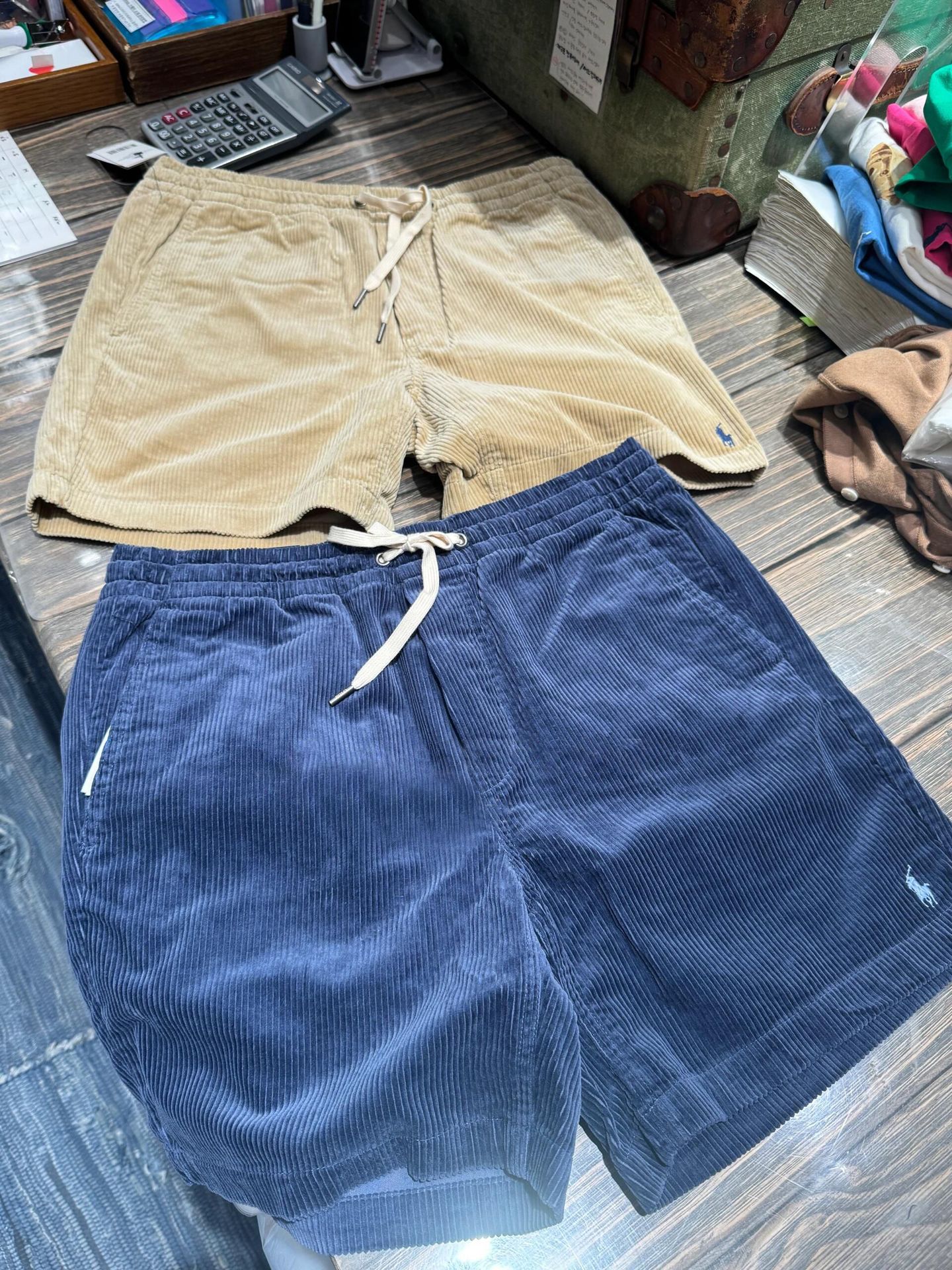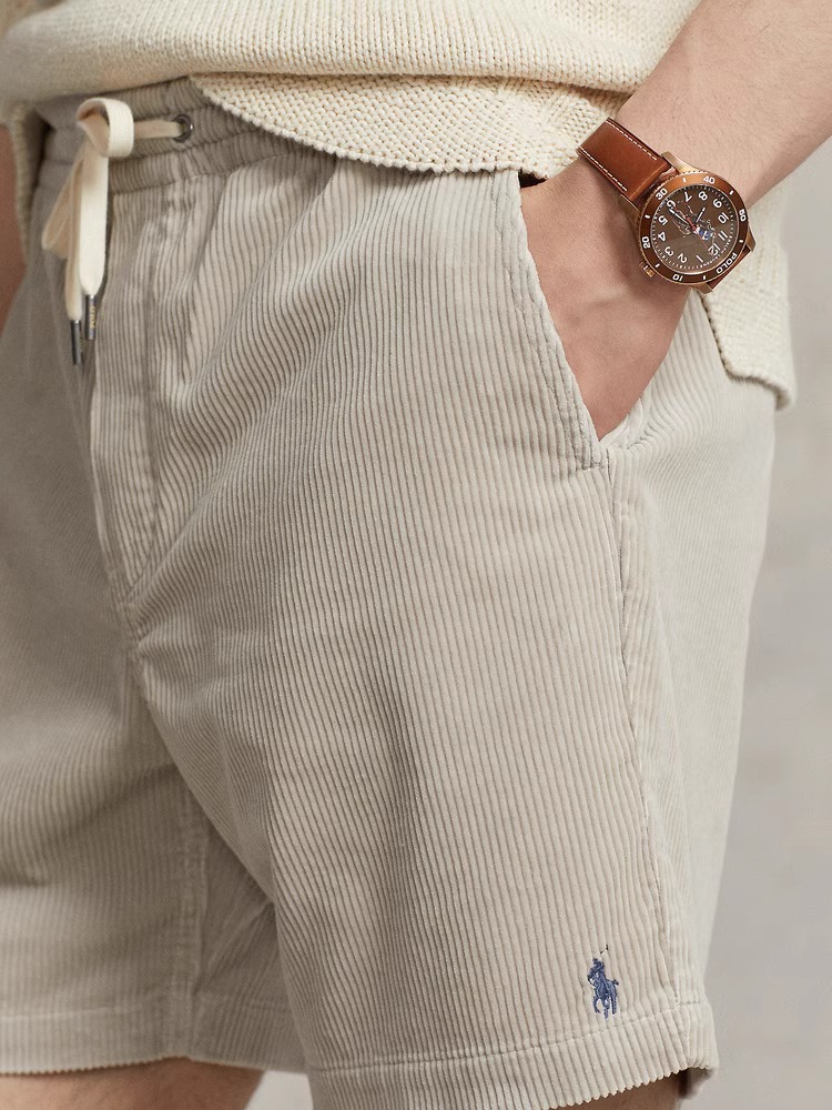 Мужские повседневные шорты из чистого хлопка, свободного кроя, с вышитым логотипом RL Ralph pony, из дышащего вельвета, универсальные, летние, длиной до колена.