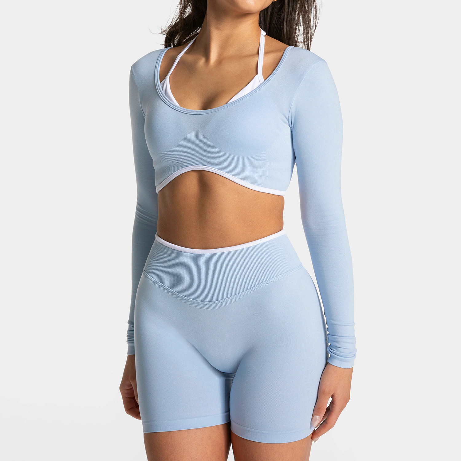 Спортивный костюм для женщин в тон, обтягивающий костюм для йоги с открытой спиной контрастного цвета, быстросохнущая верхняя одежда, спортивный костюм для йоги для бега и фитнеса.