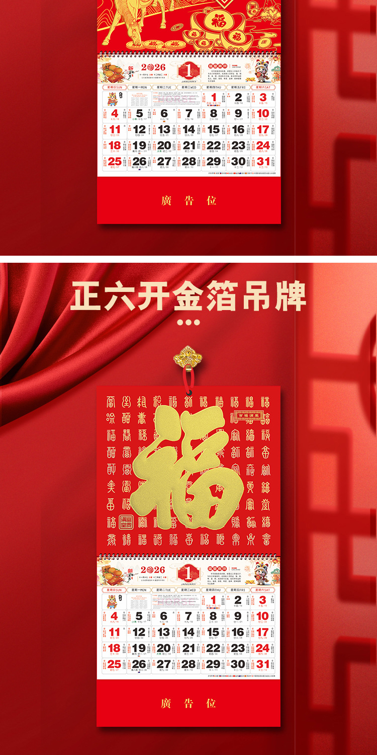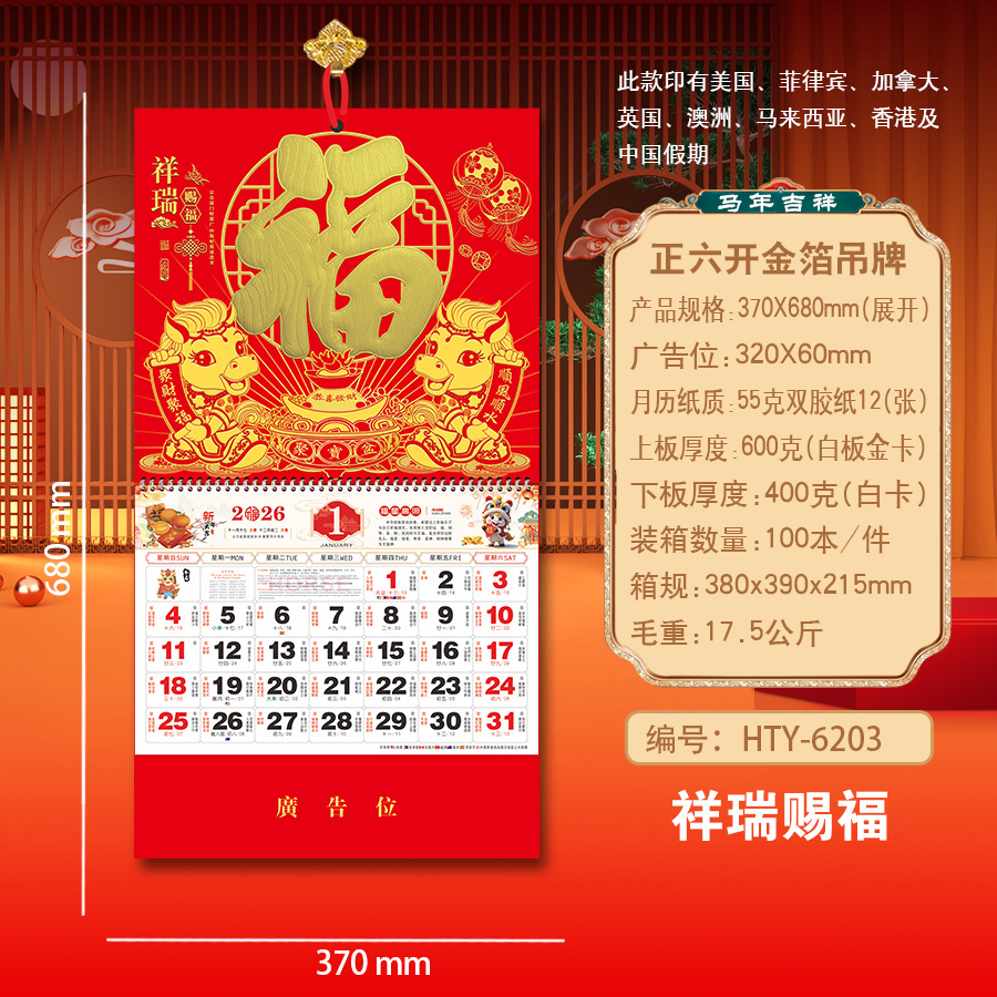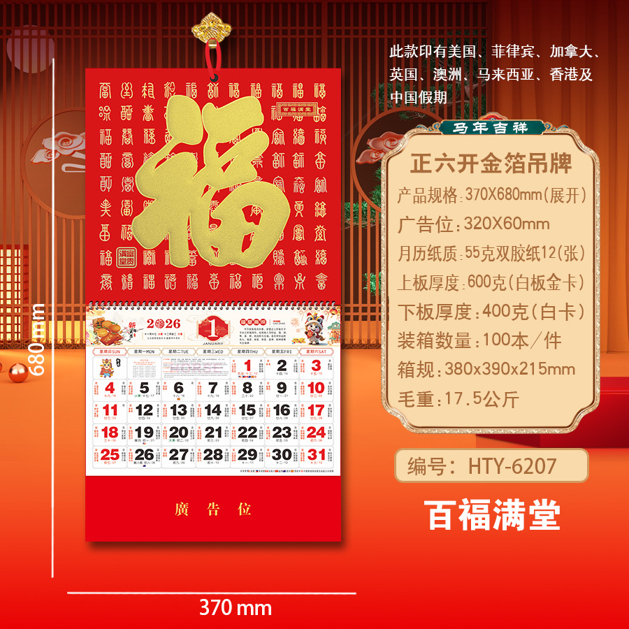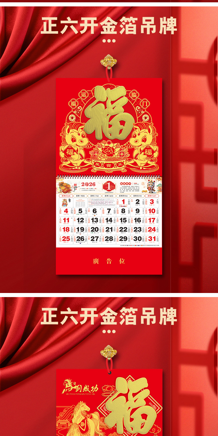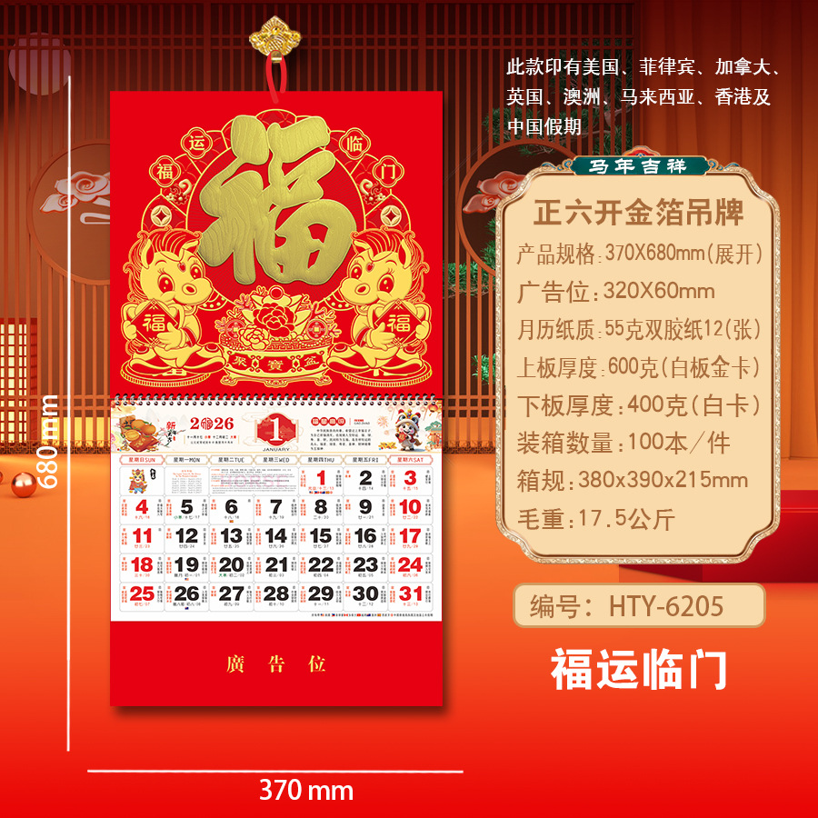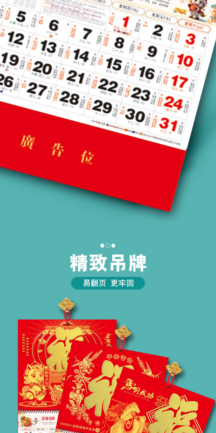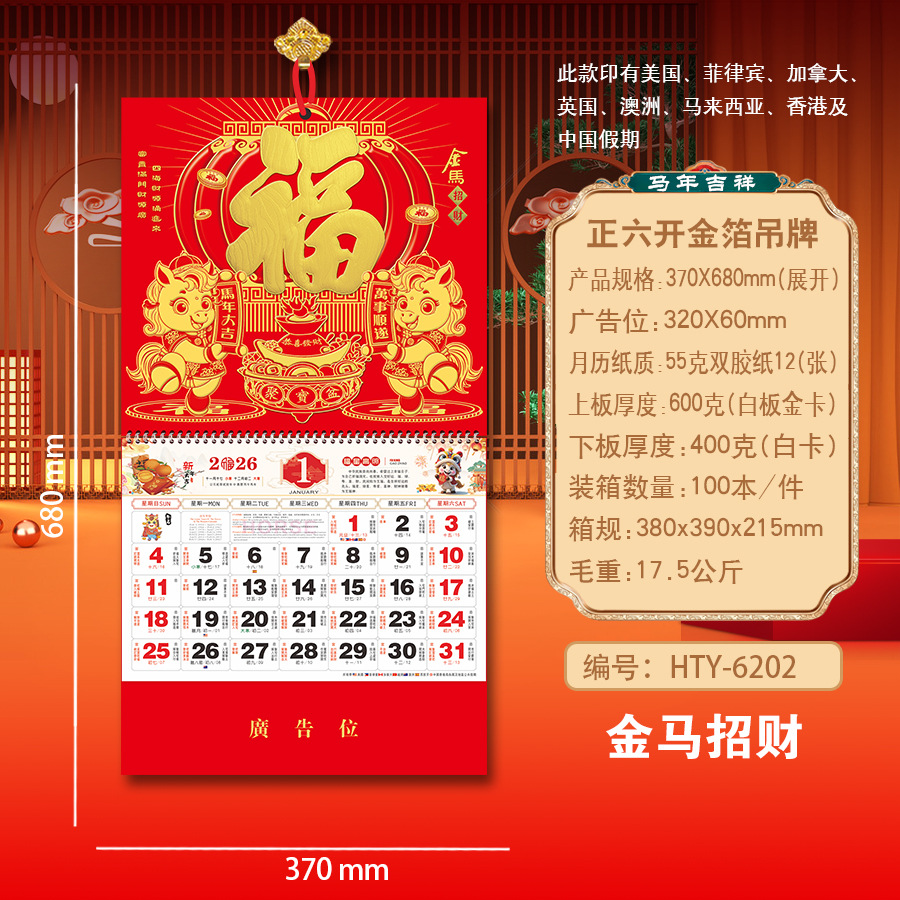 Настенный календарь из золотой фольги на 2027 год (Год Овцы) оптом в наличии, подвесные таблички с символами удачи, печать ежемесячных календарей, производство рекламных настенных календарей.