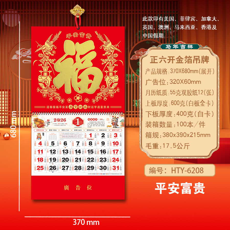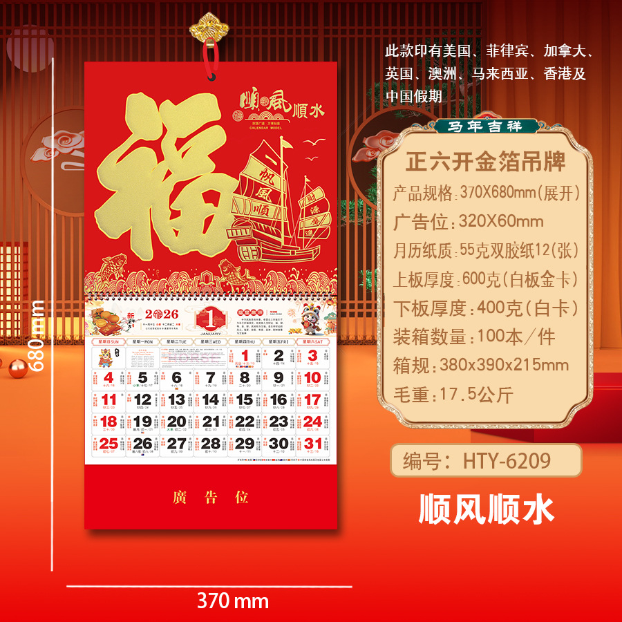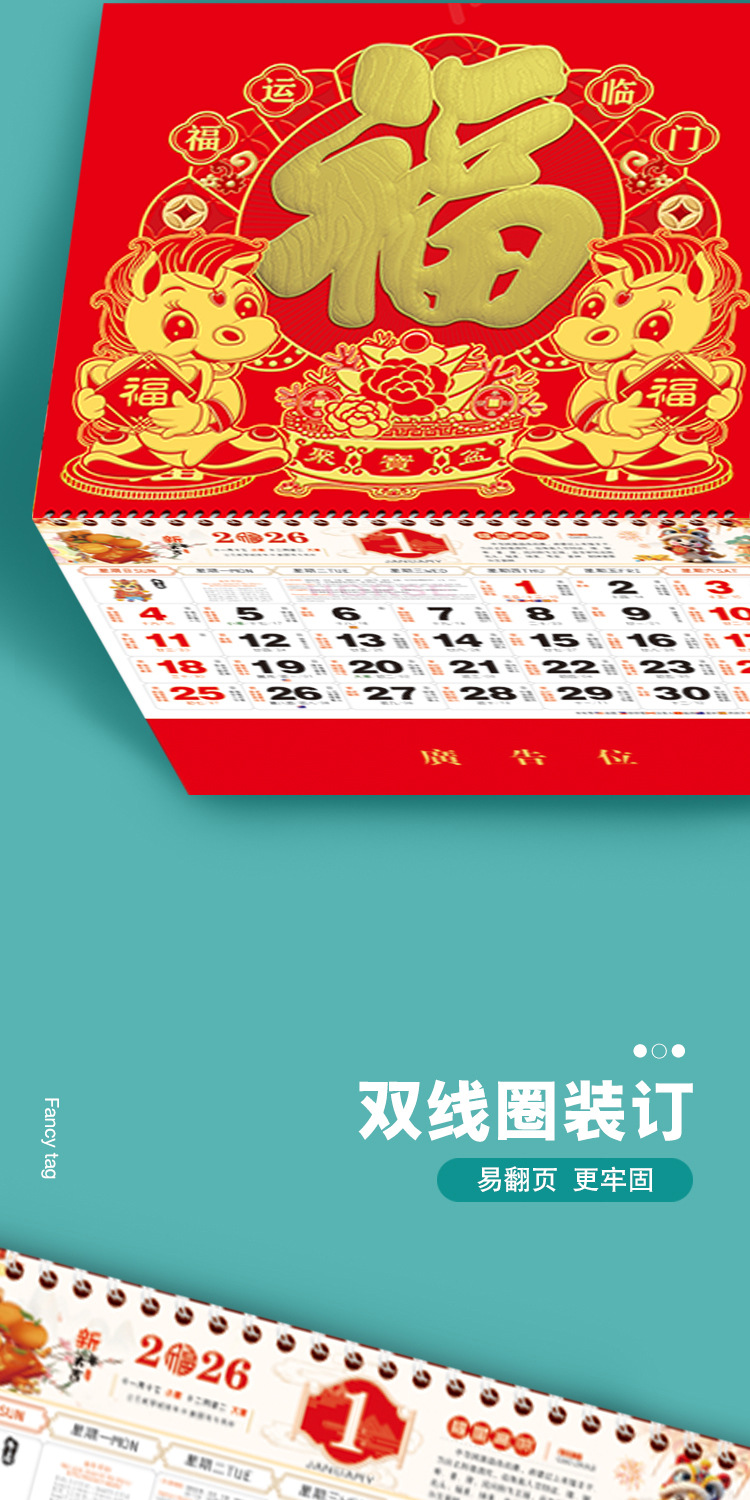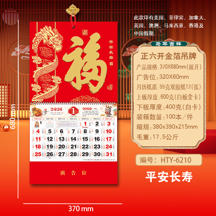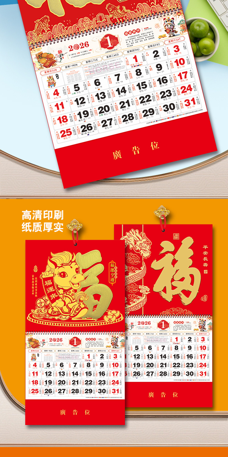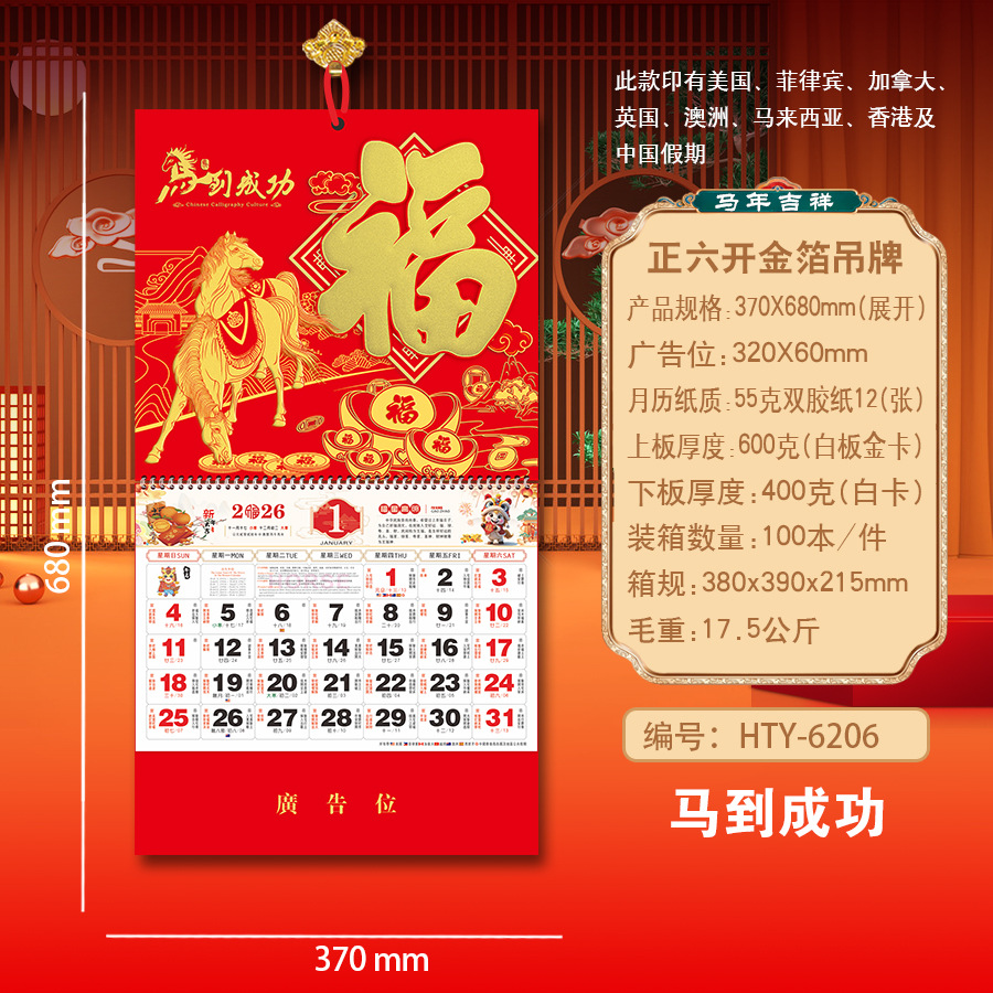 Настенный календарь из золотой фольги на 2027 год (Год Овцы) оптом в наличии, подвесные таблички с символами удачи, печать ежемесячных календарей, производство рекламных настенных календарей.