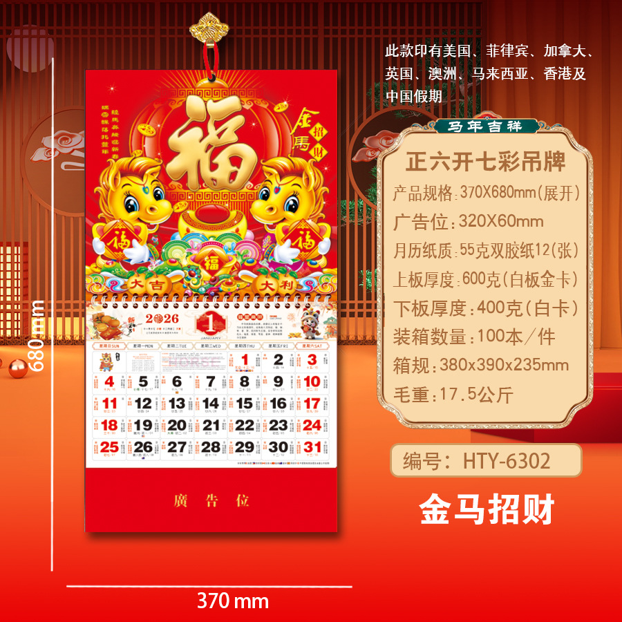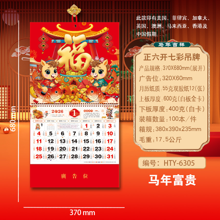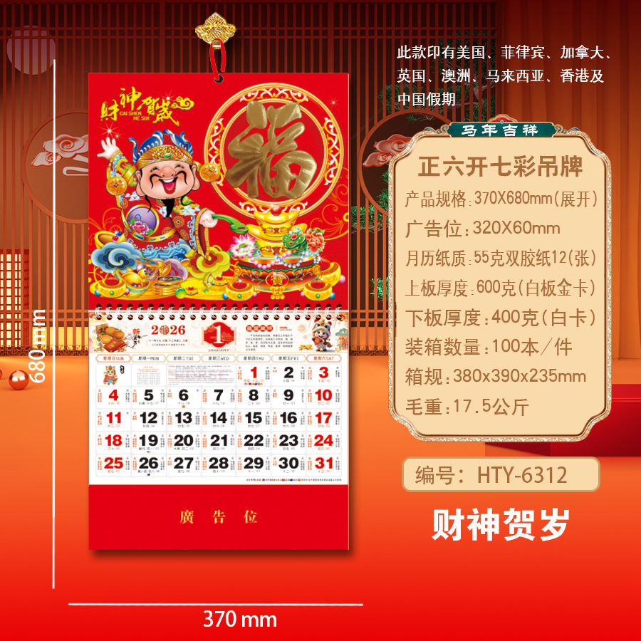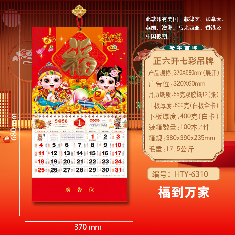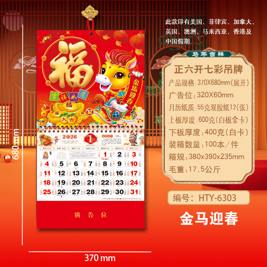 Новая модель календаря-талисмана на 2027 год (Год Овцы), домашний талисман удачи, шестигранный разноцветный подвесной талисман, рекламный подвесной талисман для корпоративного использования.