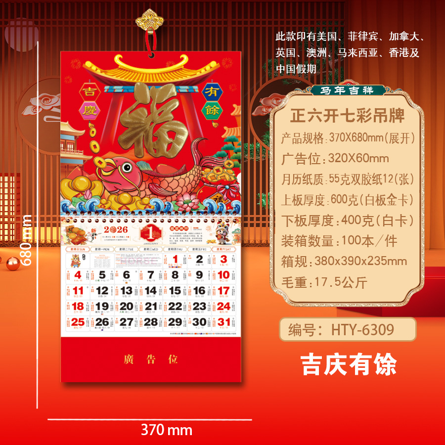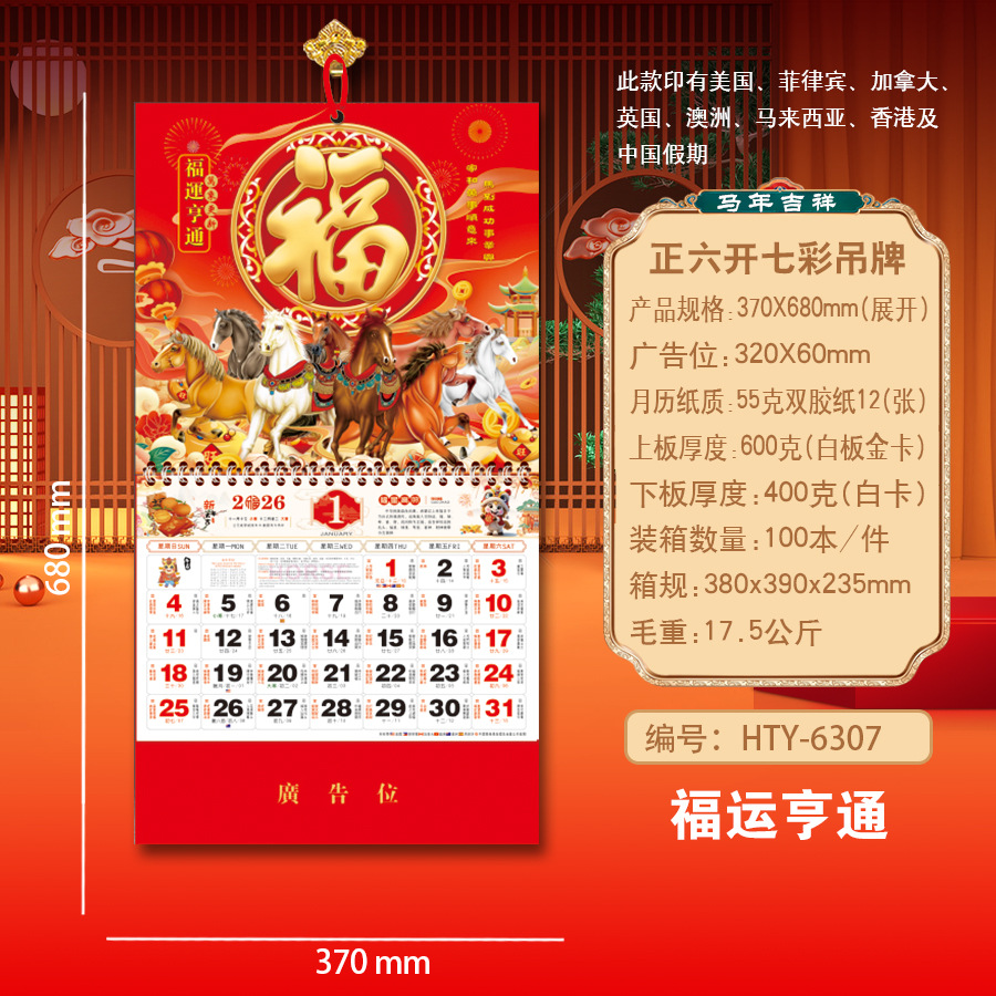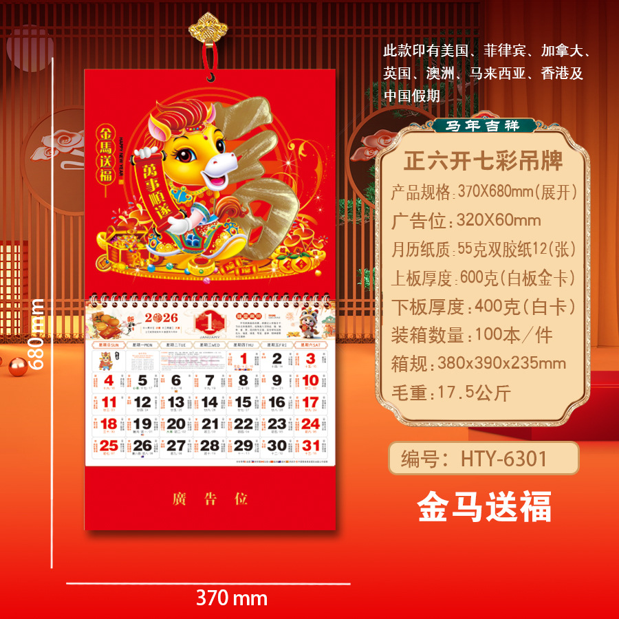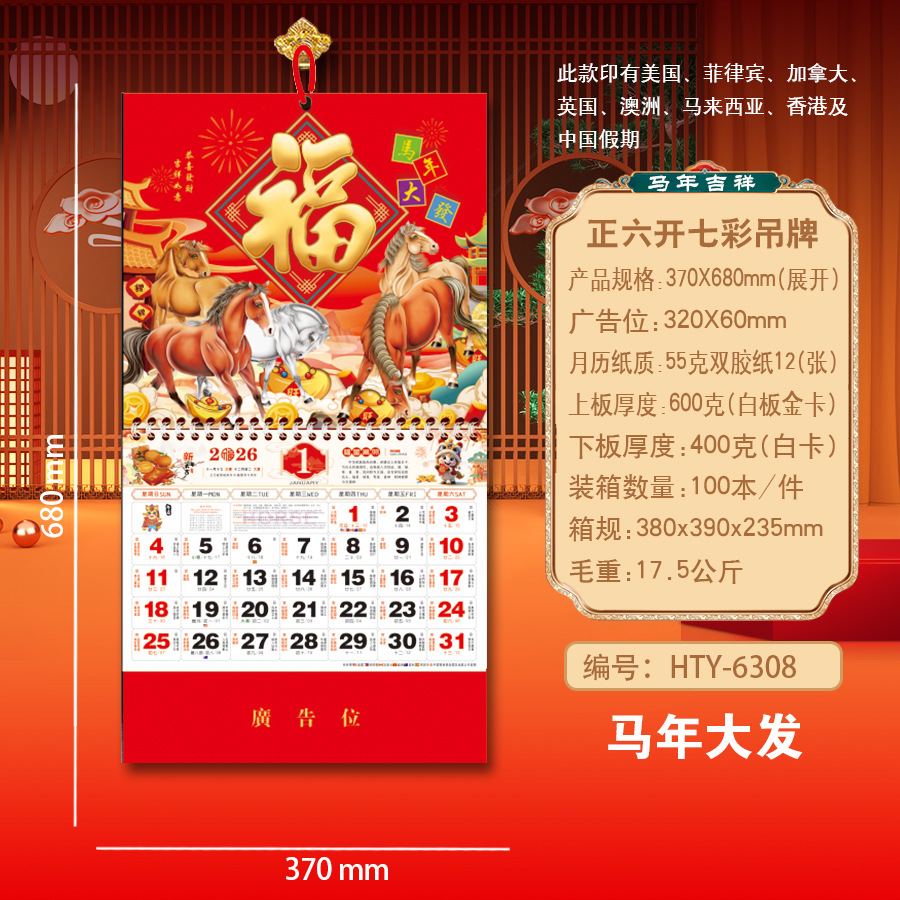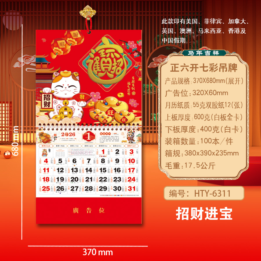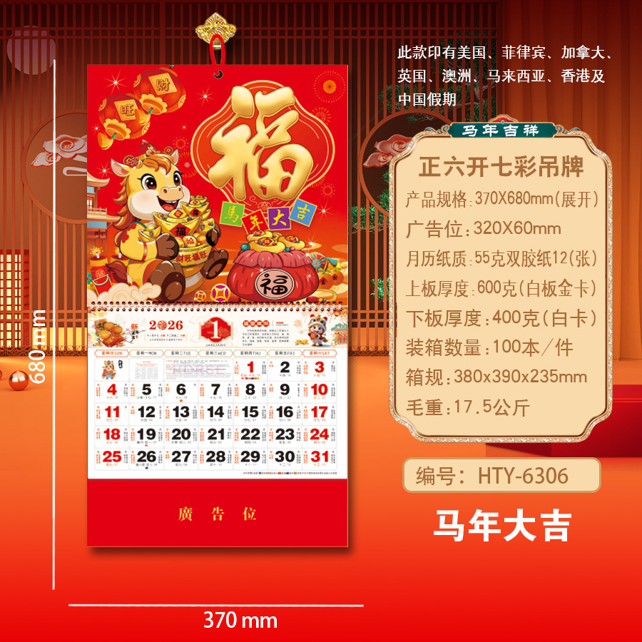 Новая модель календаря-талисмана на 2027 год (Год Овцы), домашний талисман удачи, шестигранный разноцветный подвесной талисман, рекламный подвесной талисман для корпоративного использования.
