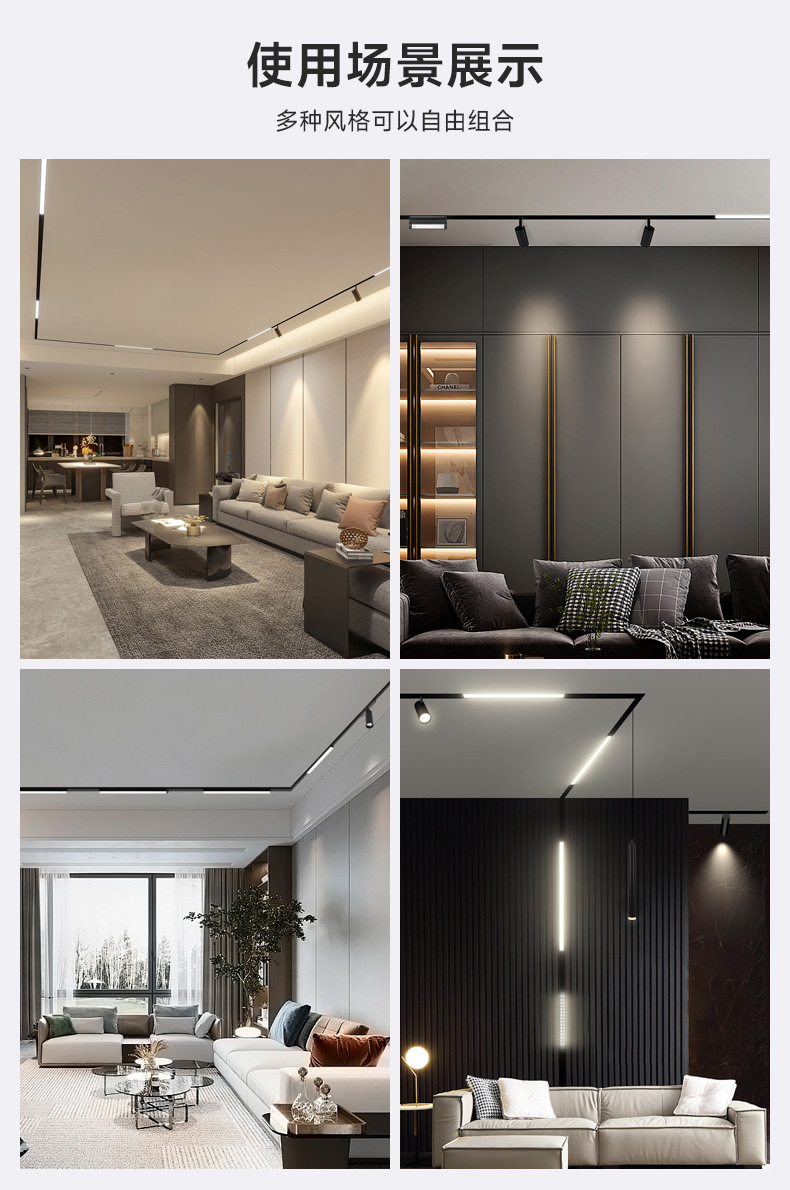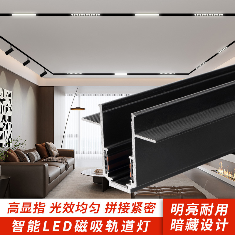 Магнитный трековый светильник, ультратонкий встроенный, поверхностный, скрытый прожектор с решеткой, предварительно встроенный магнитный всасывающий светильник, конструкция без основного света, современная и простая.