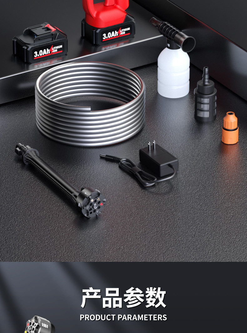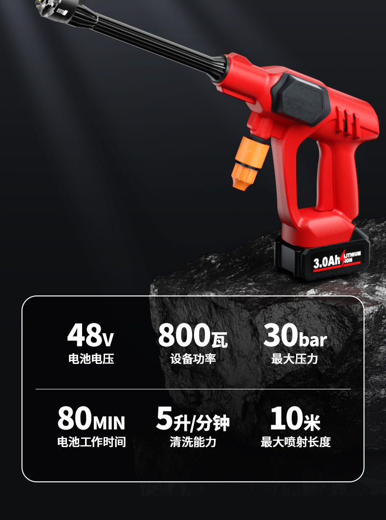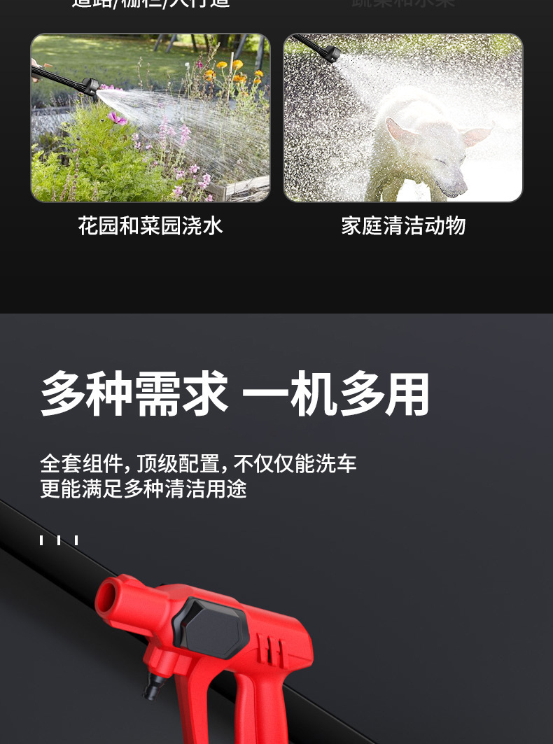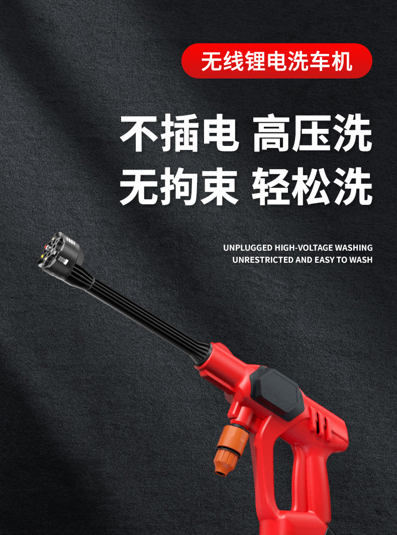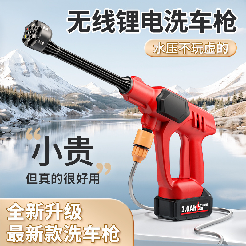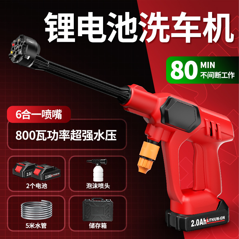 Пистолет для мойки автомобилей с литиевой батареей, портативный электрический пистолет для мойки автомобилей высокого давления, насадка «шесть в одном», ирригация, полив, беспроводная зарядка, пистолет для мойки автомобилей