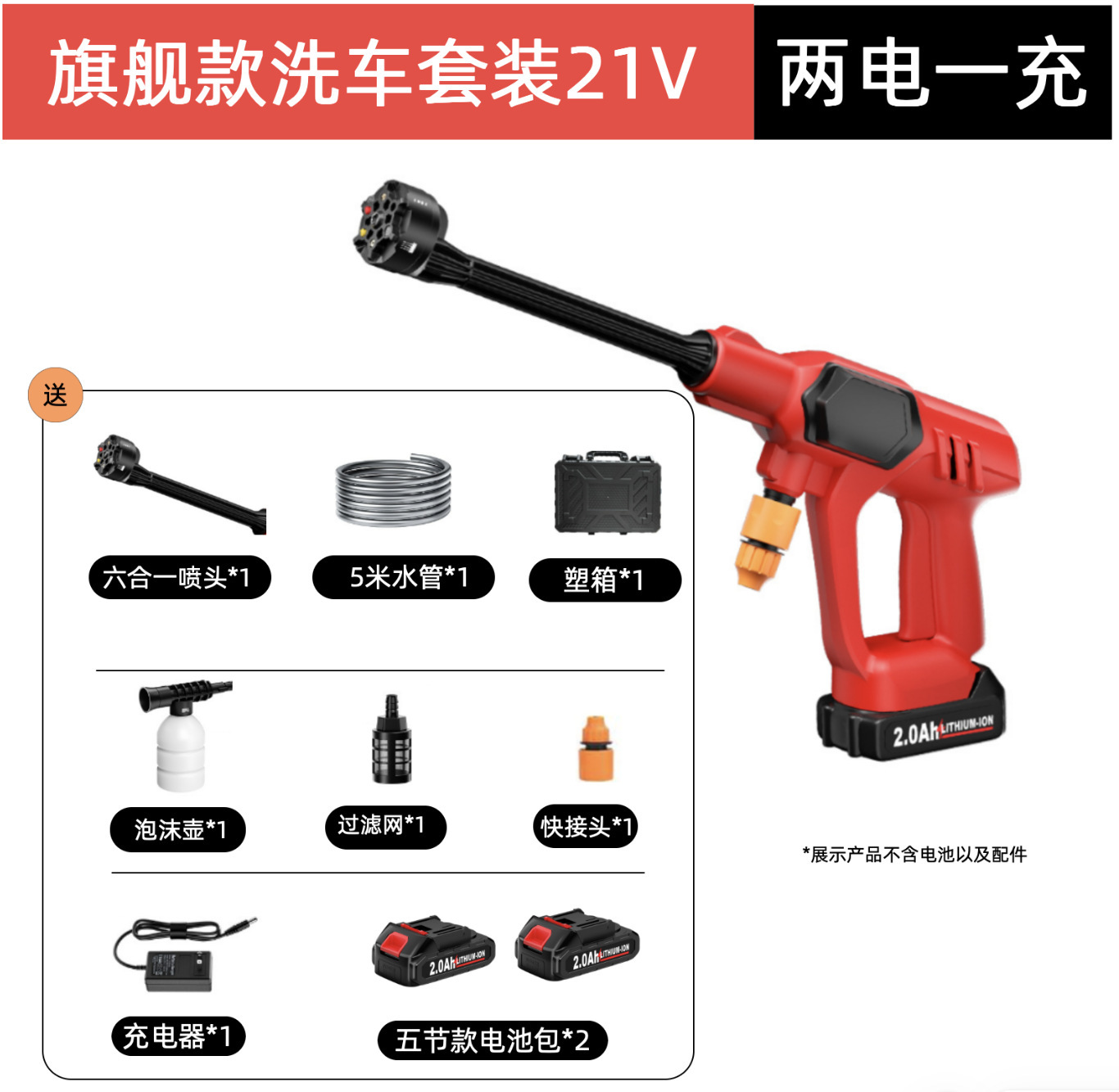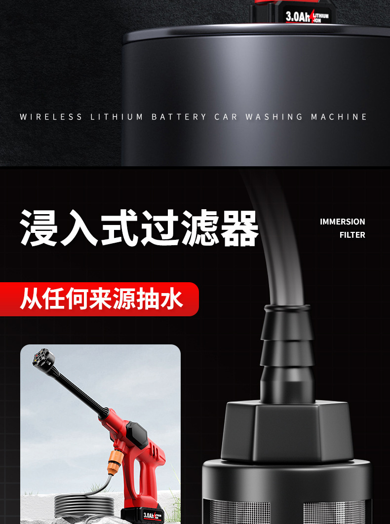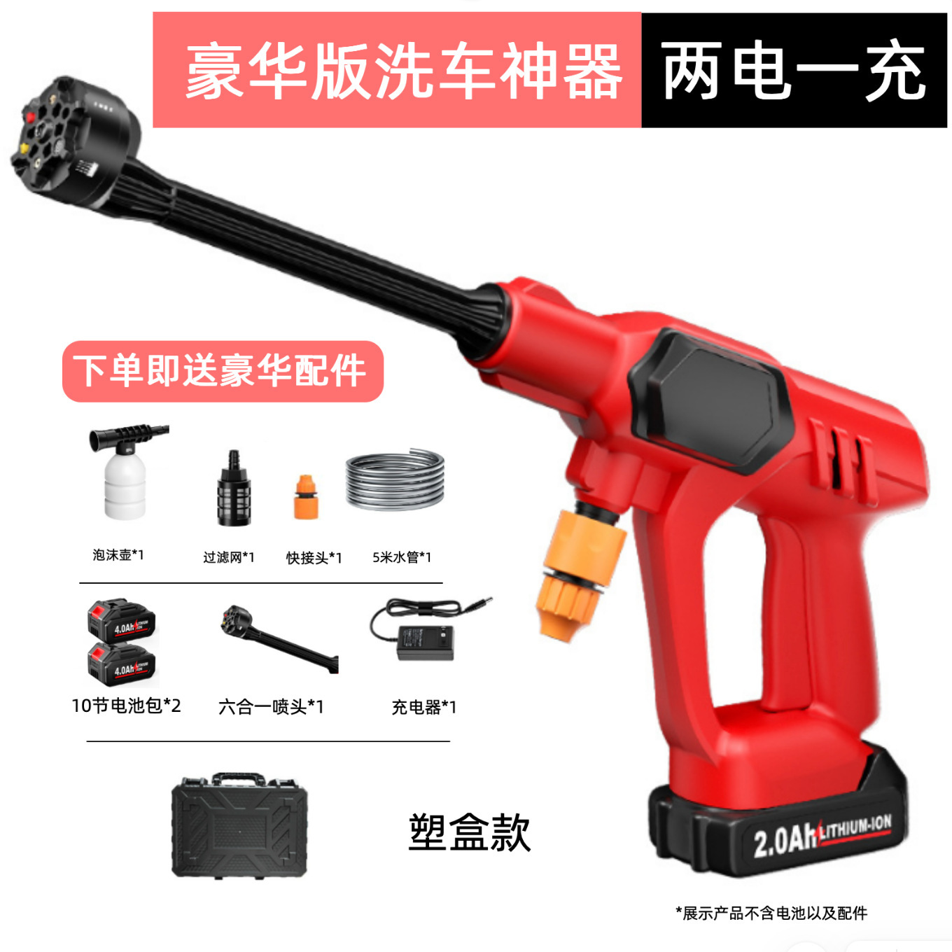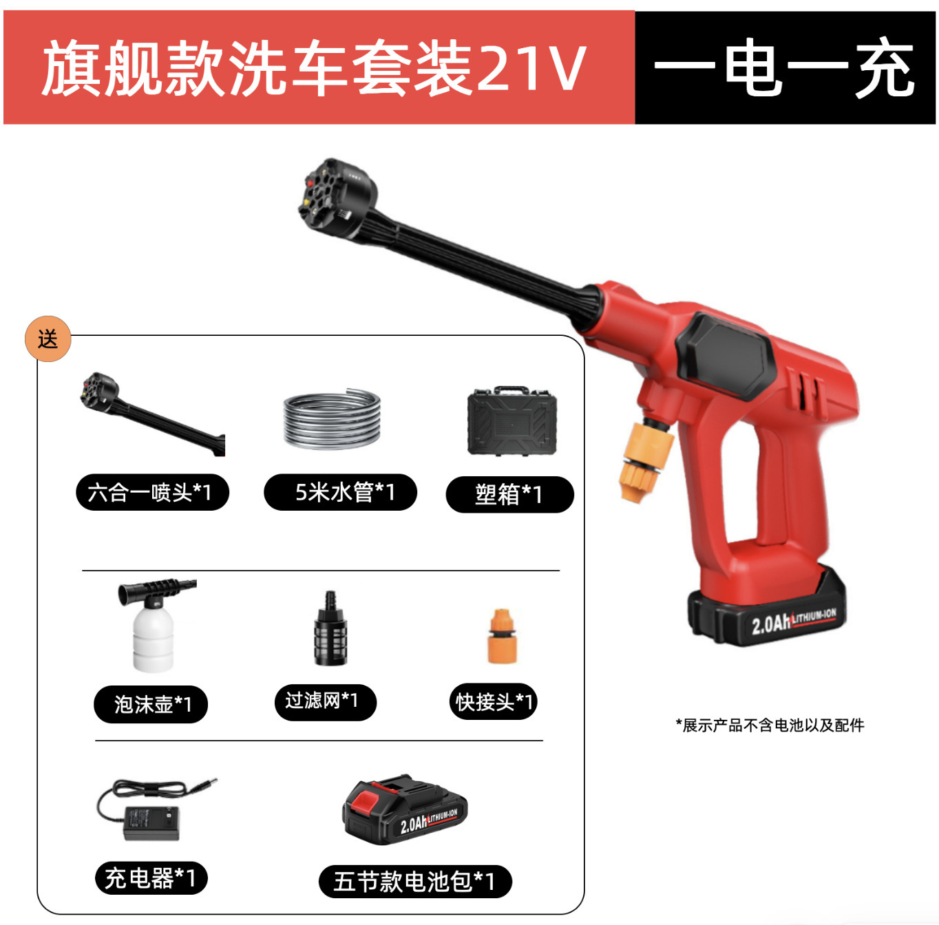 Пистолет для мойки автомобилей с литиевой батареей, портативный электрический пистолет для мойки автомобилей высокого давления, насадка «шесть в одном», ирригация, полив, беспроводная зарядка, пистолет для мойки автомобилей