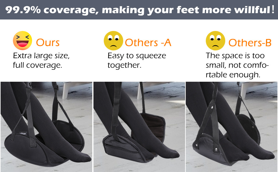 - 升级大尺寸:升级了传统脚吊床的尺寸,平面尺寸为 17*11 英寸,让您的脚可以放在更自由的空间,让您的腿放在柔软的垫子上,让它们在整个旅程中保持舒适。