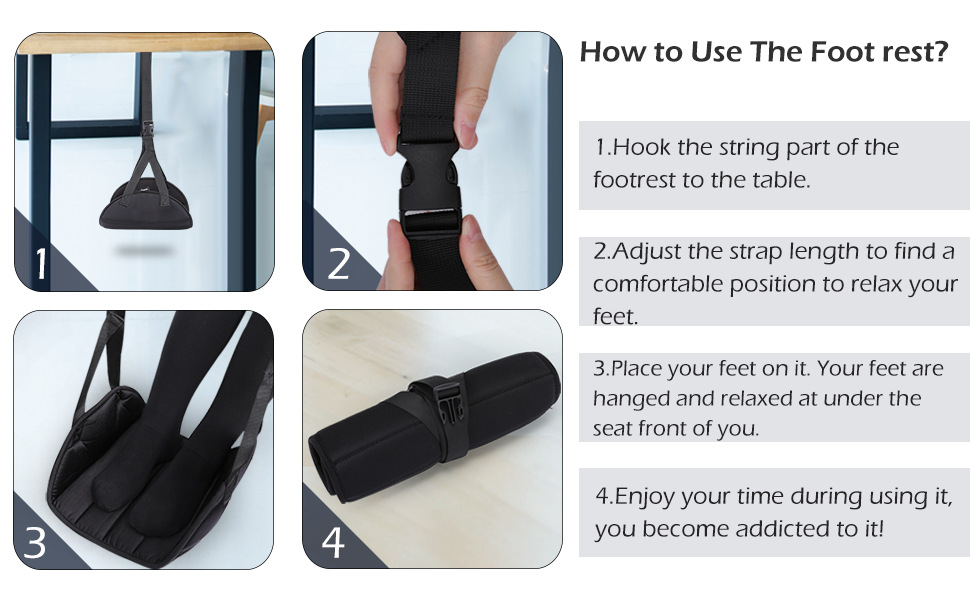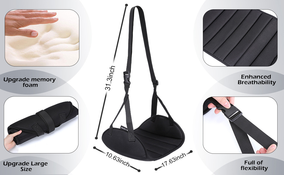 - 透气性更强:市面上大多数足部吊床采用不透气面料制成。我们的飞机足部吊床采用记忆海绵包裹的透气孔,有助于排出人体热气。结合室温,提供舒适的软硬度,让您的双脚得到充分休息和放松,享受长途飞行,告别背痛或腿痛。