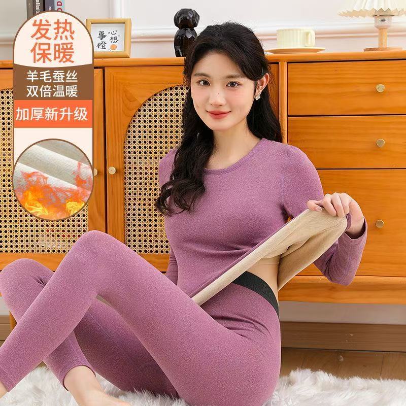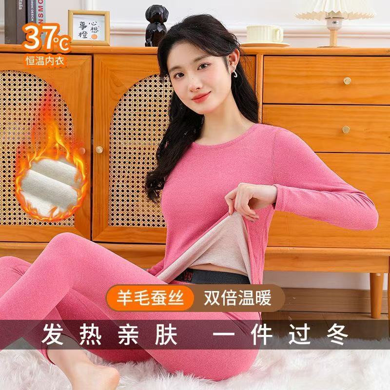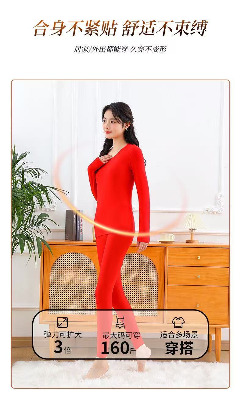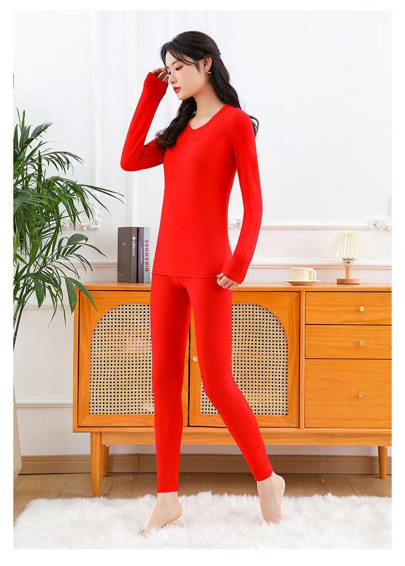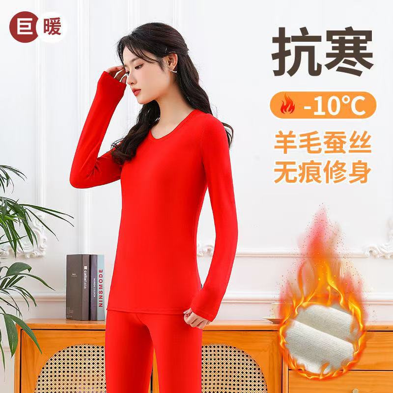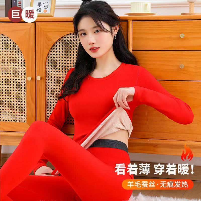 Красный комплект термобелья для женщин в год знака зодиака, на флисовой подкладке и утолщенный, бесшовные термобелье и низ на осень, подходят для свадеб.