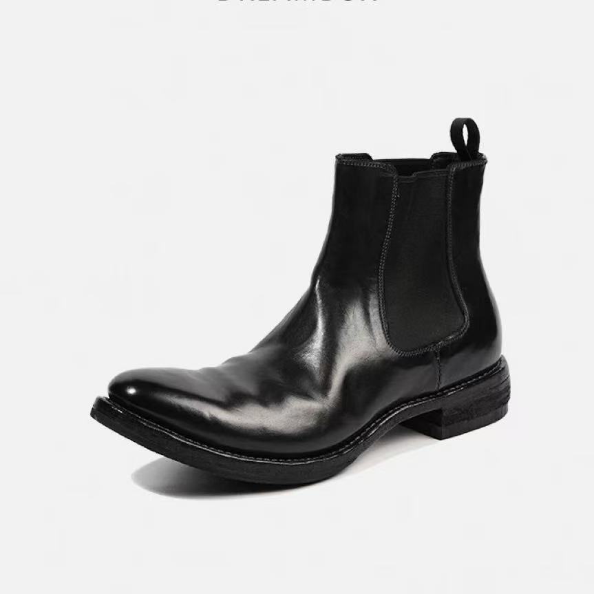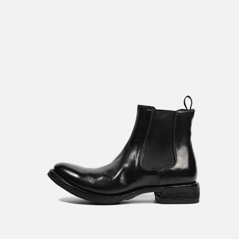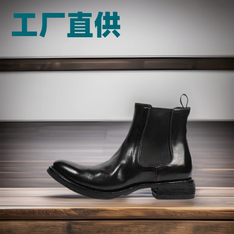 Прямые поставки с фабрики: ретро-ботинки челси из темной воловьей кожи с эффектом потертости, ручной работы, мужские классические кожаные туфли для делового стиля.