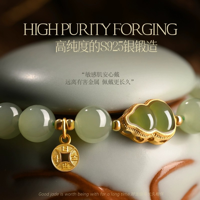 Женский браслет из стерлингового серебра S925 с нефритовой тыквой Хэтянь, новый нефритовый браслет в национальном стиле с инкрустацией золота, доступная роскошь и изысканный подарок
