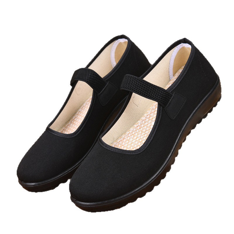 Дропшиппинг весенне-летних женских черных танцевальных туфель на мягкой подошве, гостиничных рабочих туфель на плоской подошве, туфель для мам средней длины.