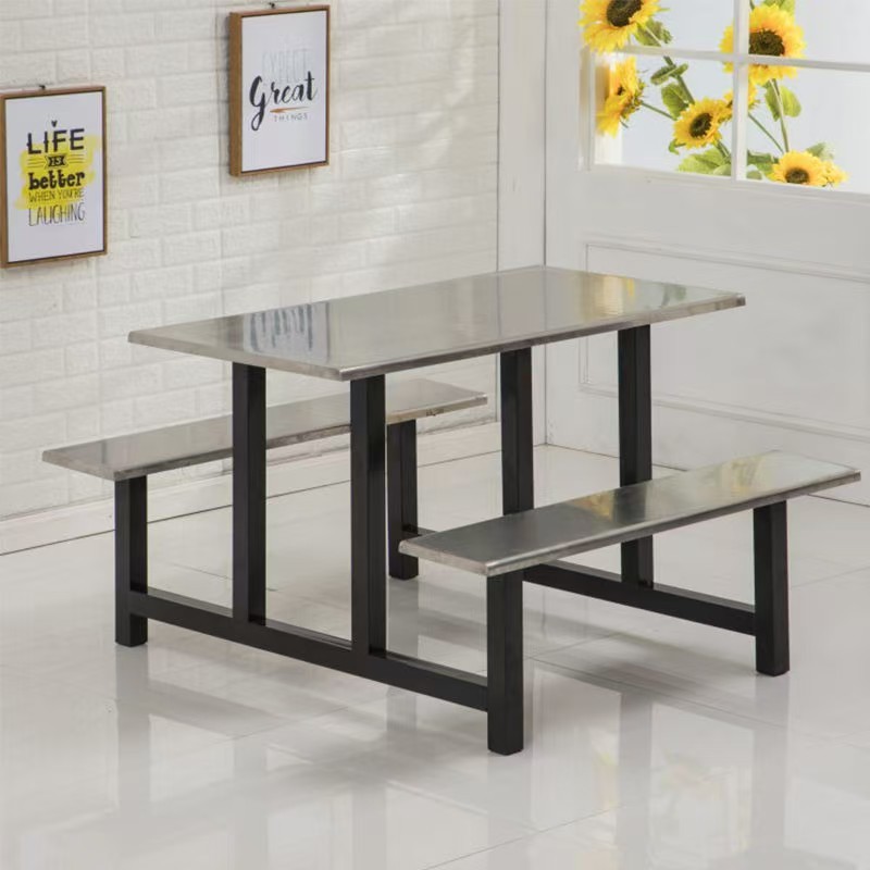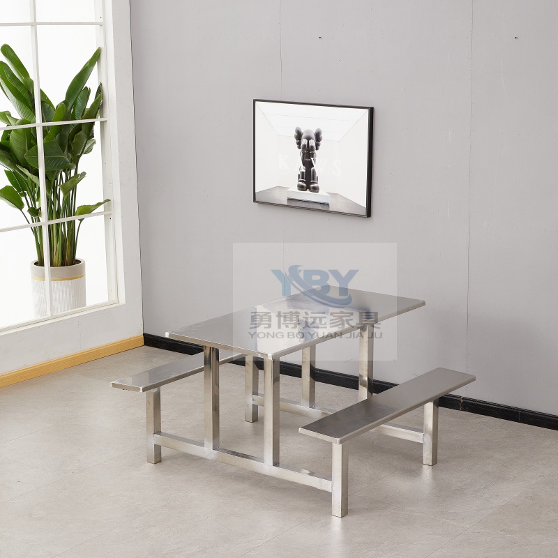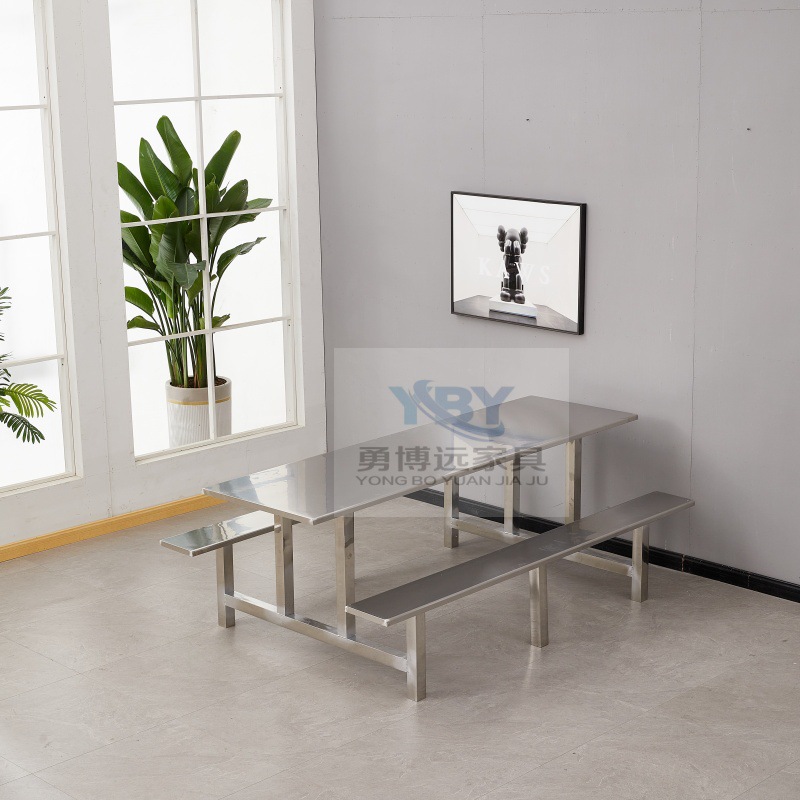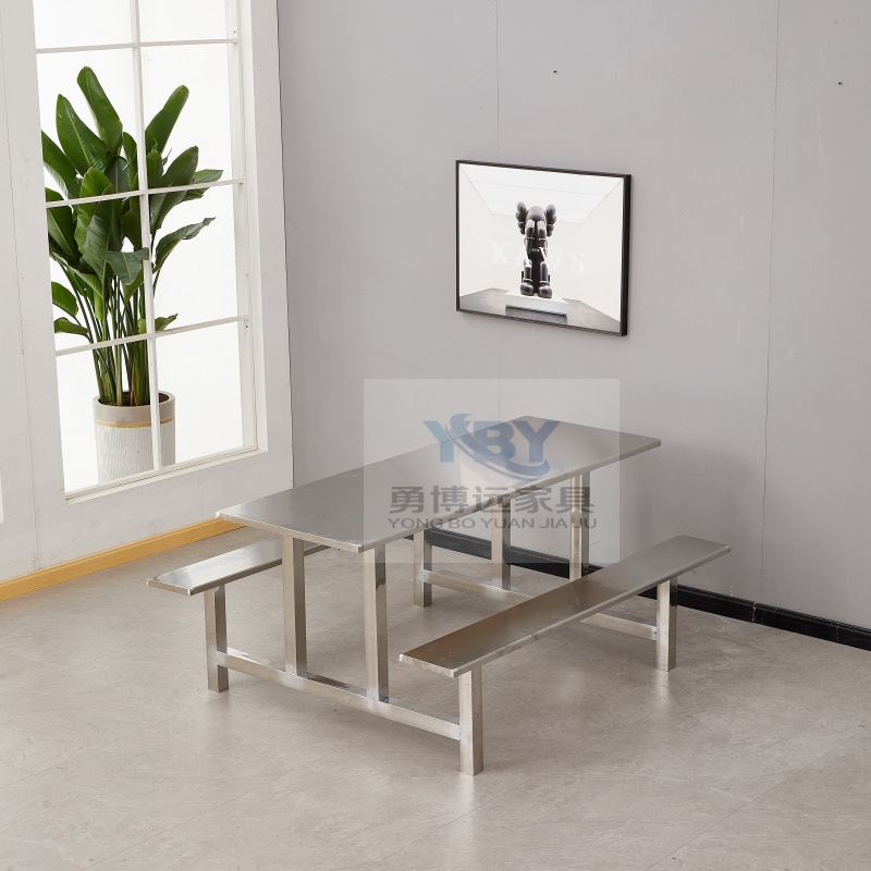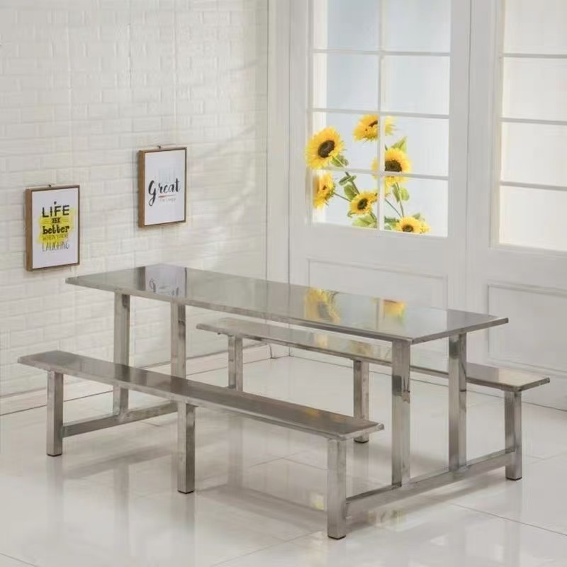 Цельный обеденный стол для школьной столовой, заводской ресторан, обеденный стол и стулья из нержавеющей стали, 4 человека, 6 человек, 8 человек, комбинация обеденного стола и стула