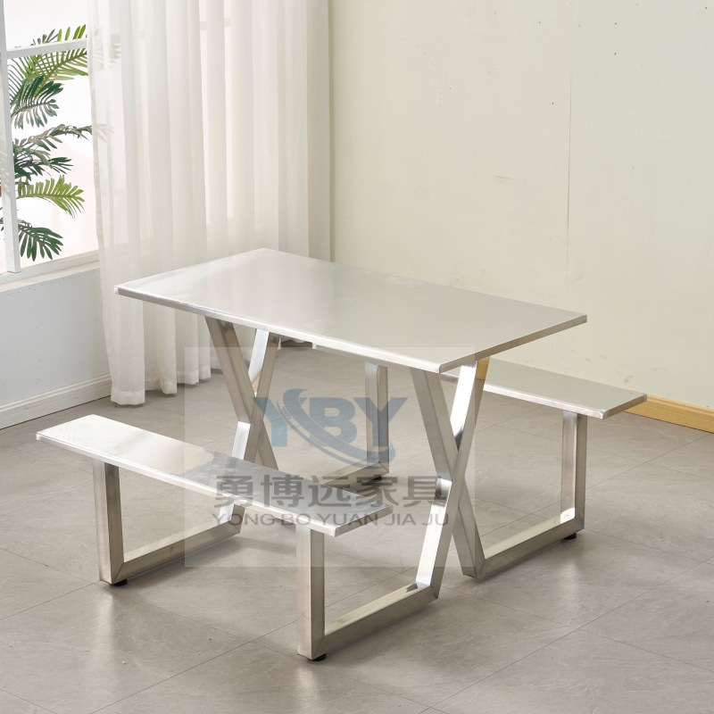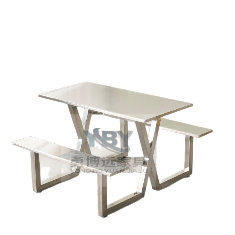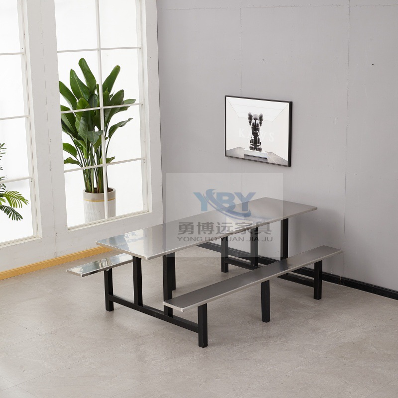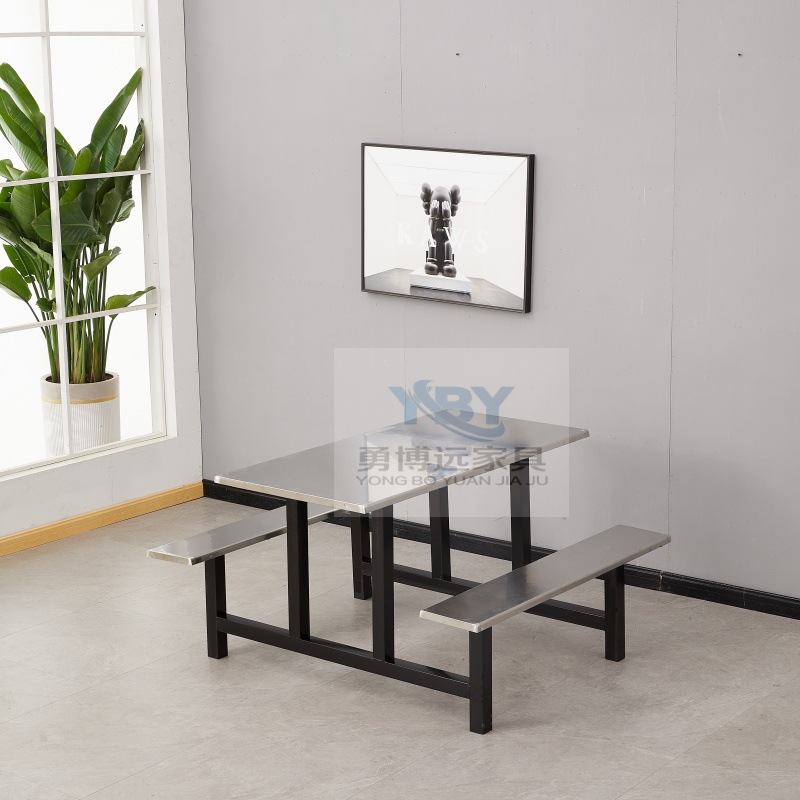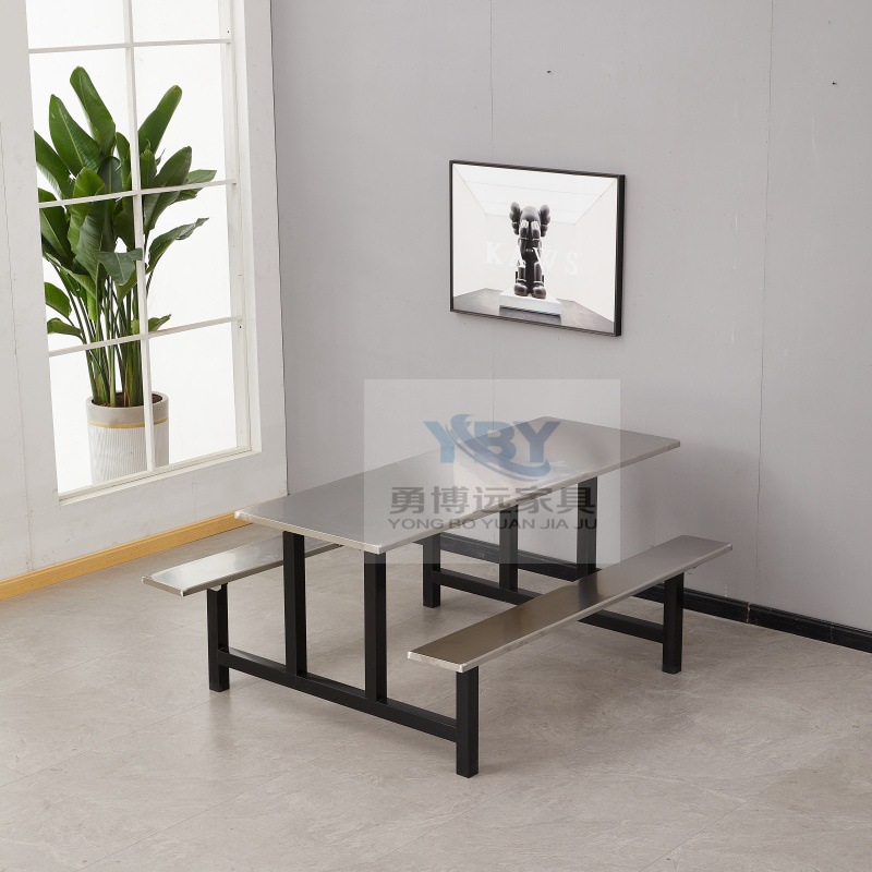 Цельный обеденный стол для школьной столовой, заводской ресторан, обеденный стол и стулья из нержавеющей стали, 4 человека, 6 человек, 8 человек, комбинация обеденного стола и стула