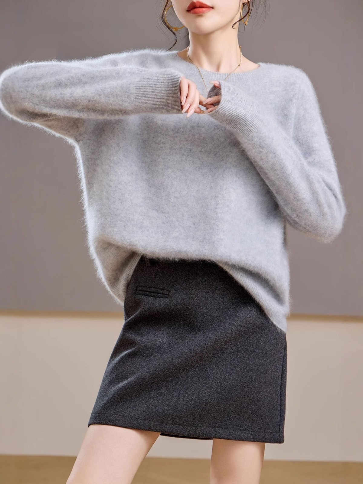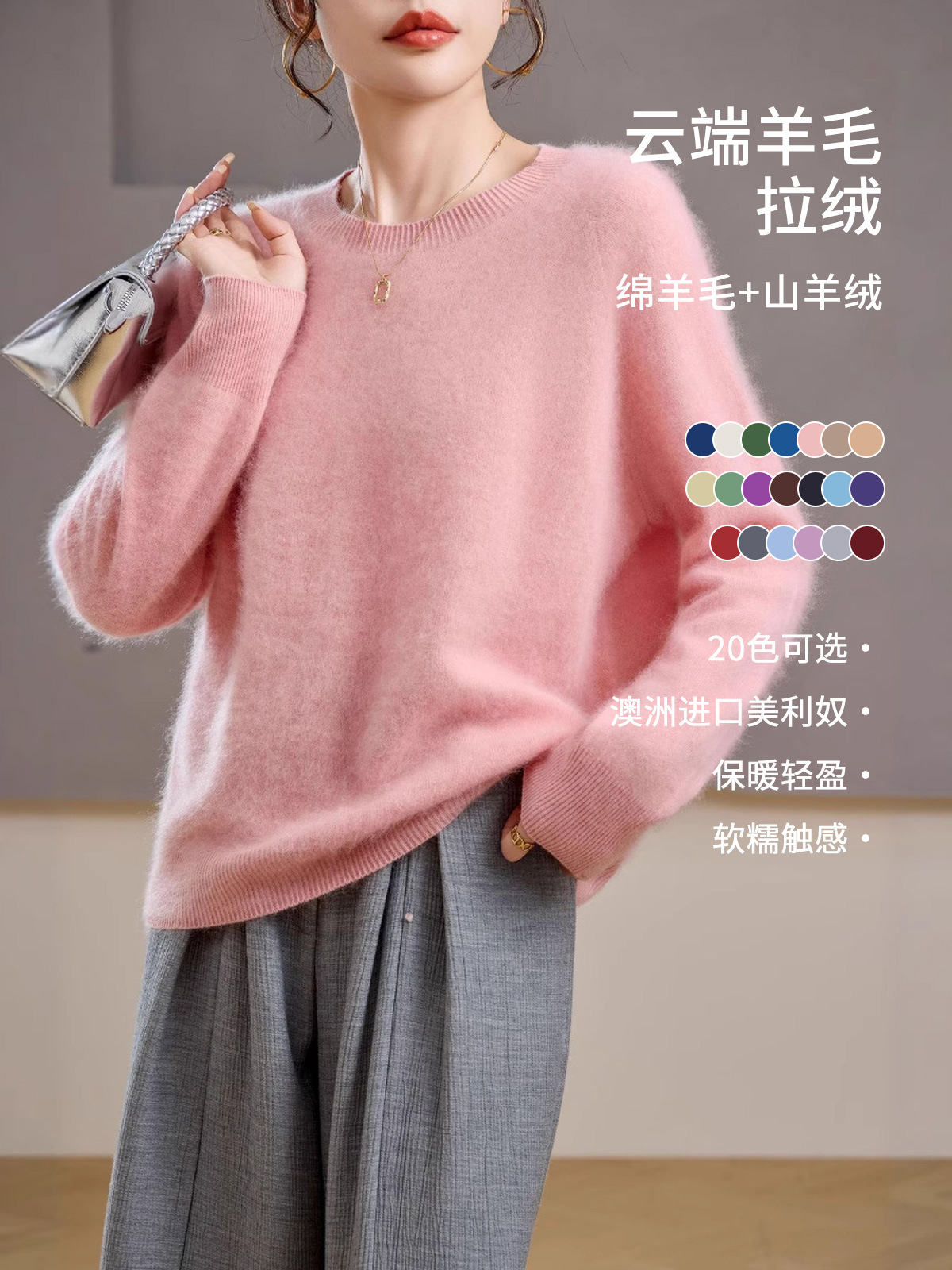 【Вау】Свитер из австралийской шерсти, трикотаж с начесом от фабрики Puyuan, кашемировый свитер в стиле «ленивый шик»