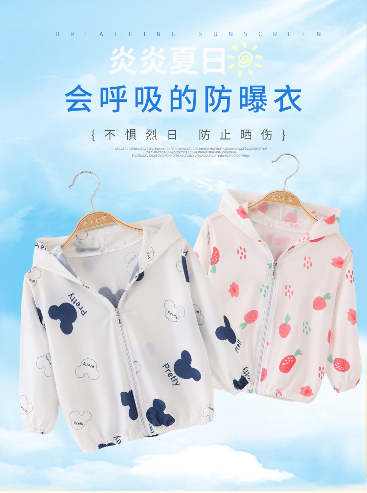 Светлая и тонкая детская солнцезащитная одежда ярких цветов, новая летняя рубашка из ледяного шелка с капюшоном и кондиционером, мужская и женская детская солнцезащитная одежда для малышей