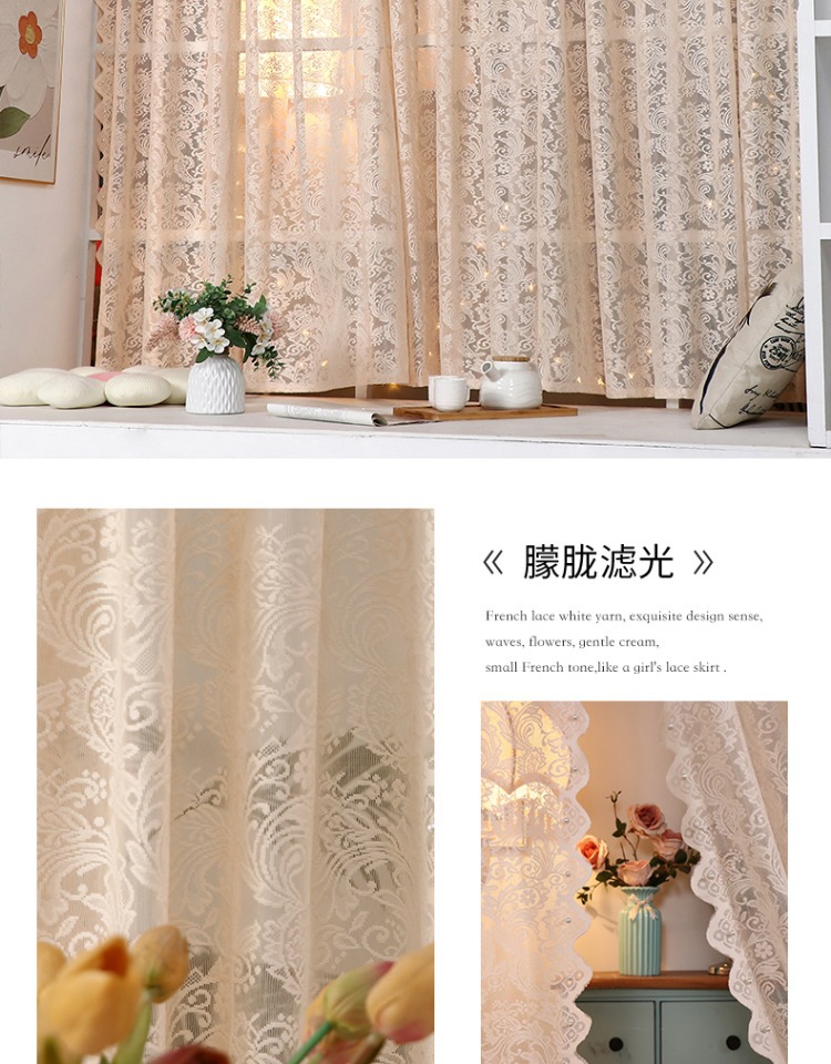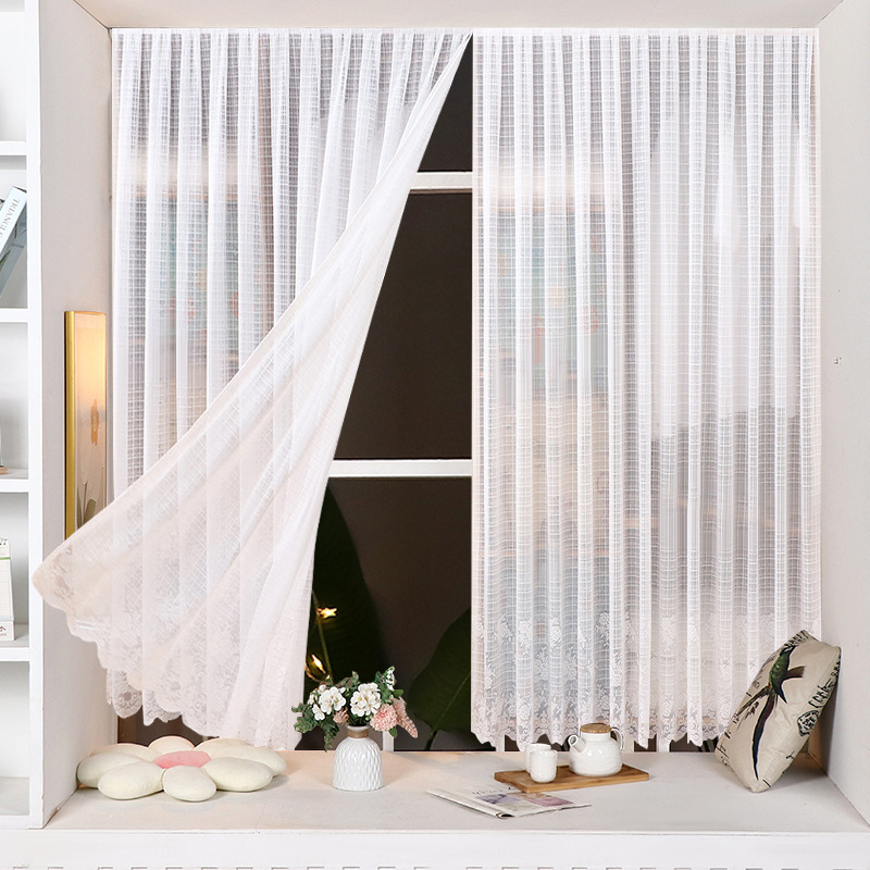 Кружевная перегородка в корейском стиле без сверления для кухни и спальни, белая прозрачная занавеска с перекладиной, маленькая парящая занавеска, полузанавеска с липучкой.