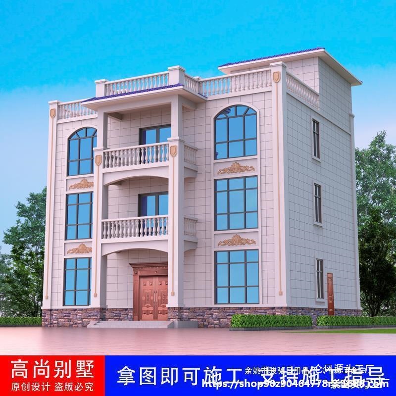 Рисунки деревенской трехэтажной и полувиллы, простой самопроектируемый дом в европейском стиле, полный комплект строительного проекта с эффектом роскошного дома.