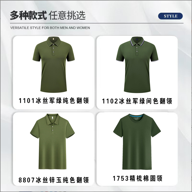 1753 военный зеленый круглый вырез; 8807 однотонное поло из ледяного шелка; 1101 однотонное поло из ледяного шелка; 1102 поло цвета ледяного шелка; A111 высококачественный чистый хлопок с круглым вырезом; 1772, высококачественный ледяной шелк, чистый хлопок, круглый вырез; 9166 высококачественный бесшовный круглый вырез; 9188 высококачественное бесшовное поло; 9199 высококачественное бесшовное поло вторичного цвета
