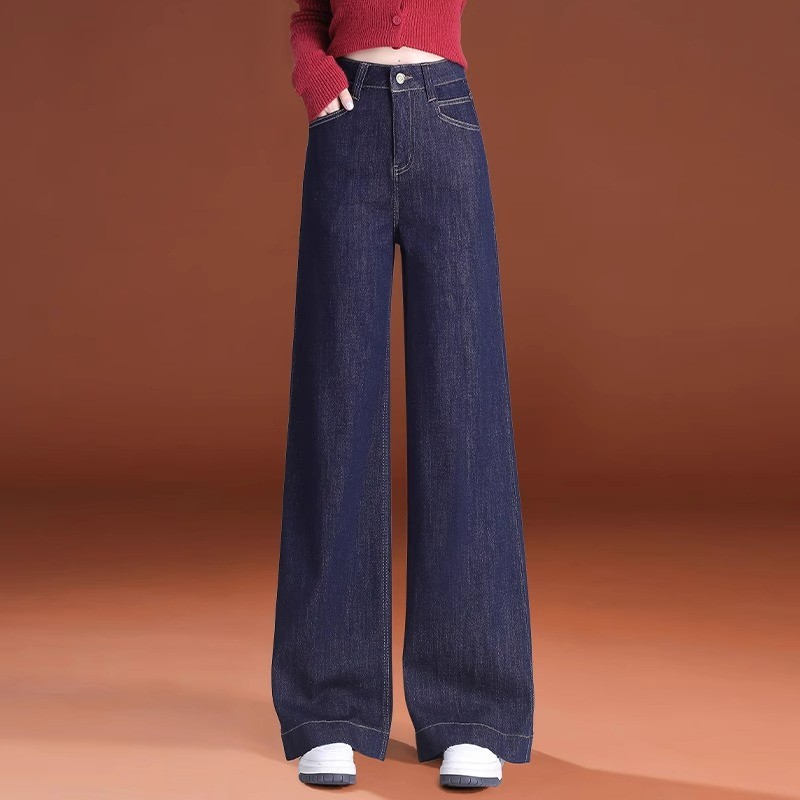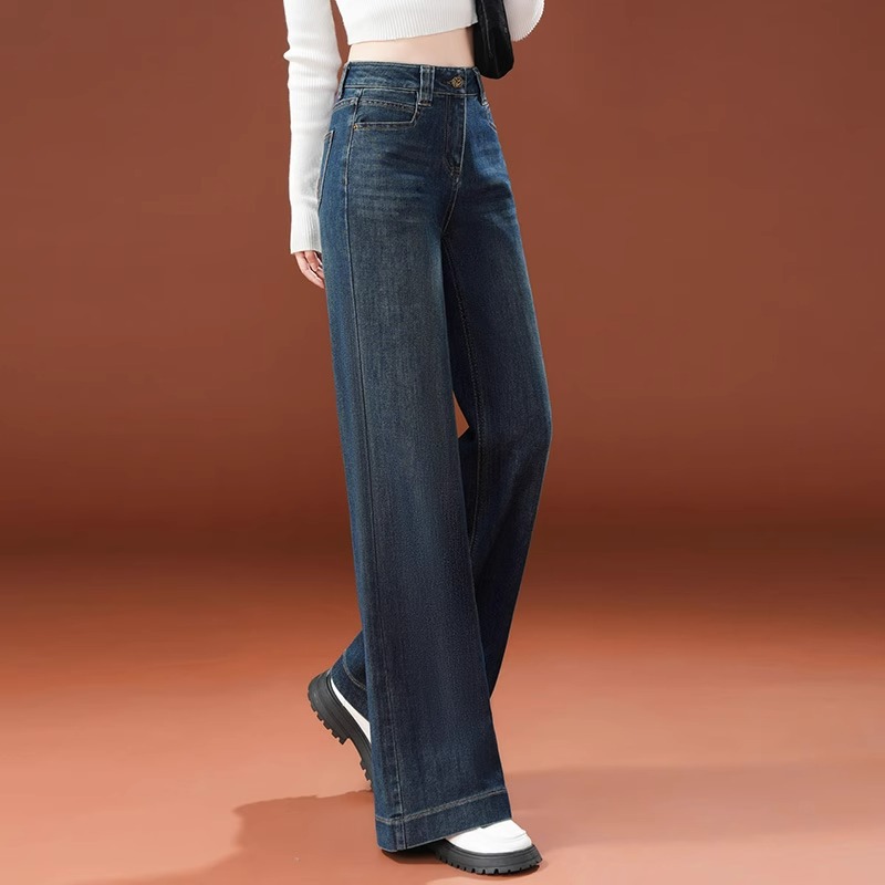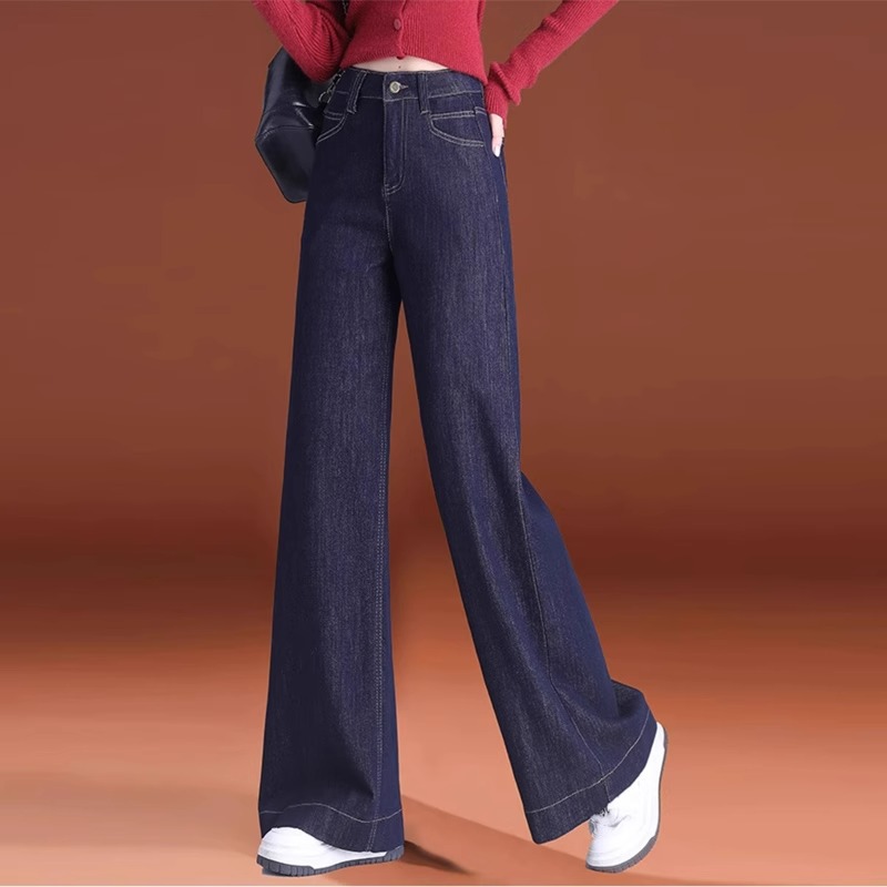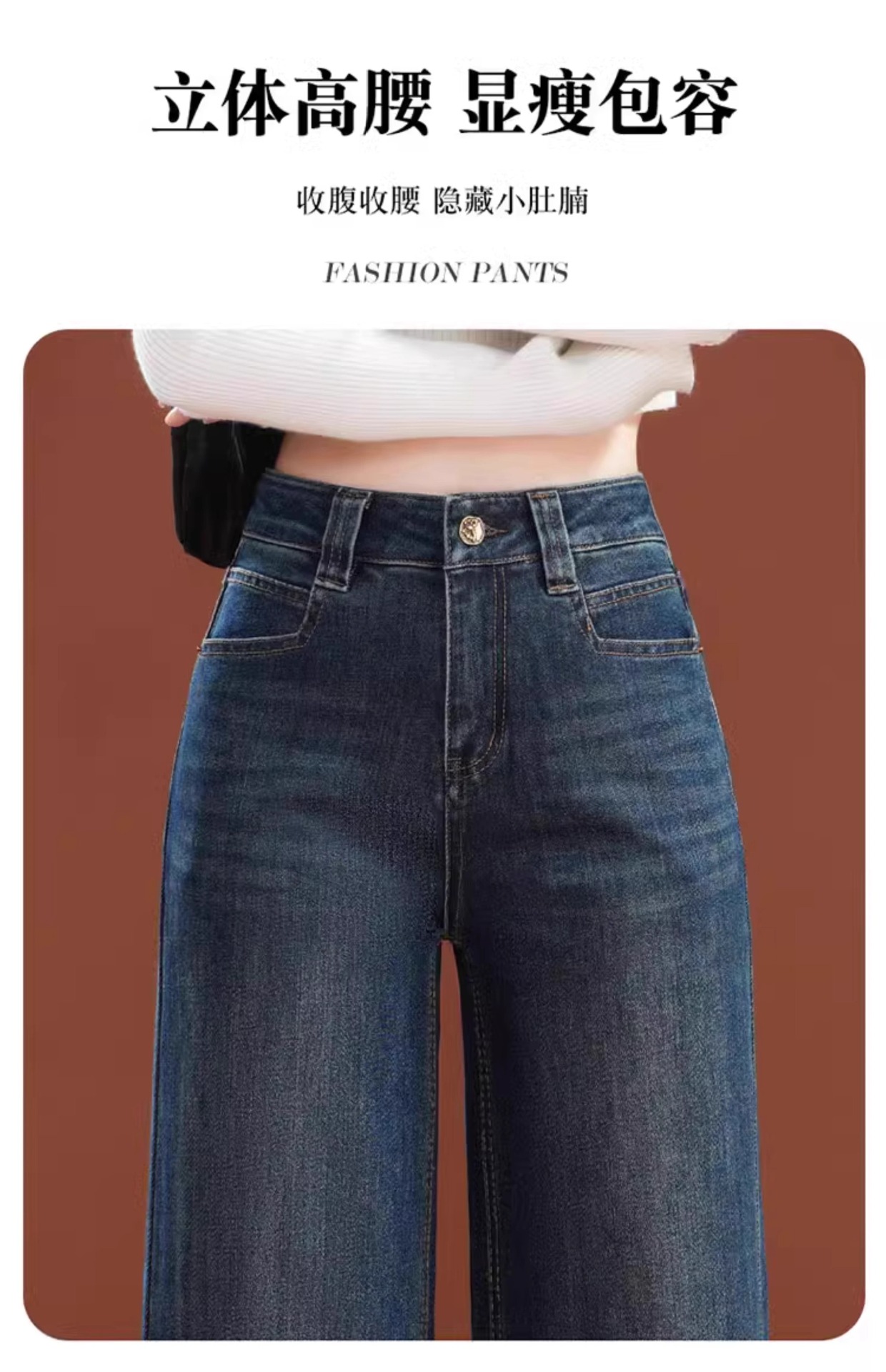 Винтажные синие джинсовые широкие брюки 2025 весна/лето новые с высокой талией утягивающие укороченные узкие прямые брюки для миниатюрных размеров