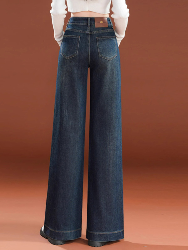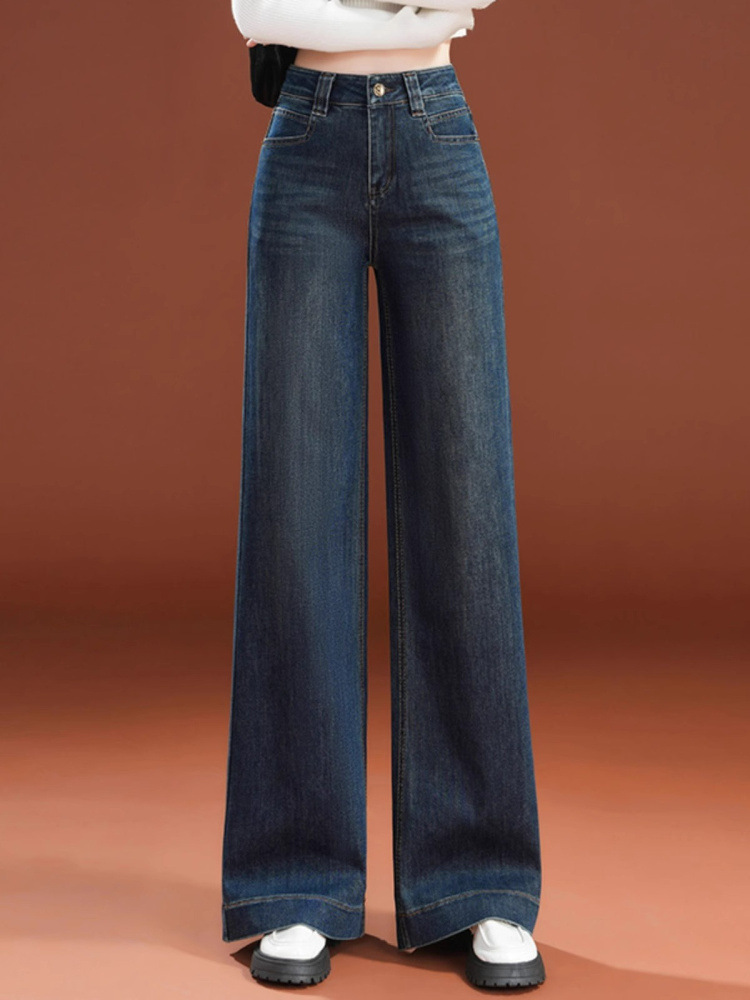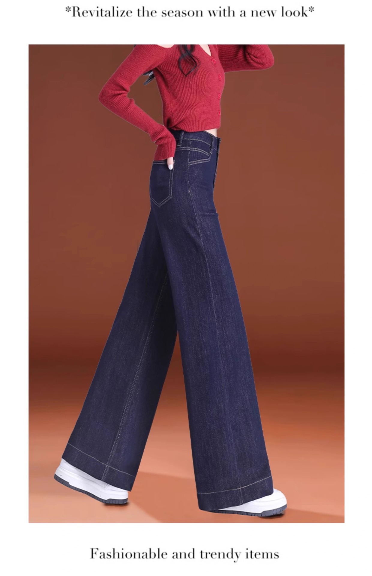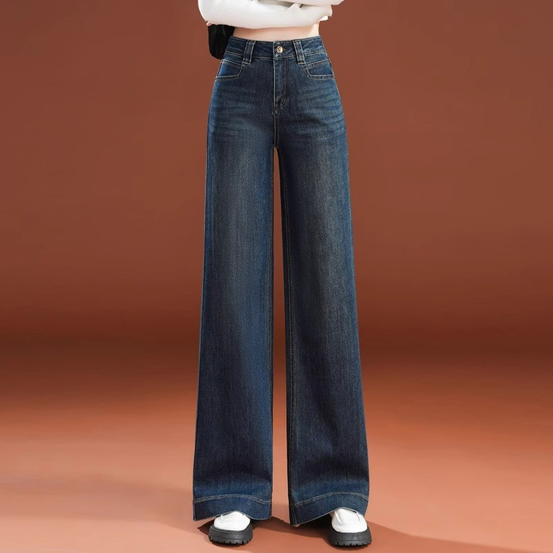 Винтажные синие джинсовые широкие брюки 2025 весна/лето новые с высокой талией утягивающие укороченные узкие прямые брюки для миниатюрных размеров