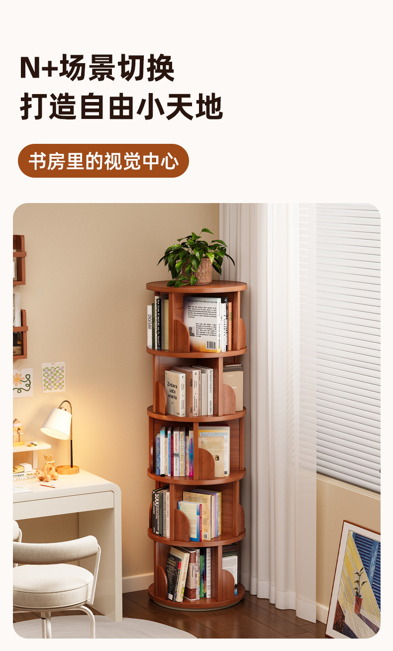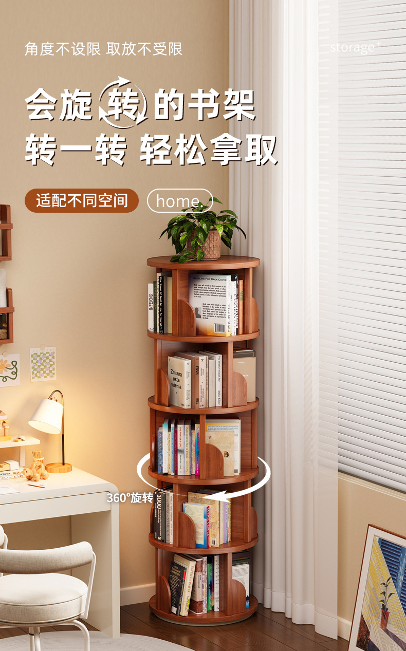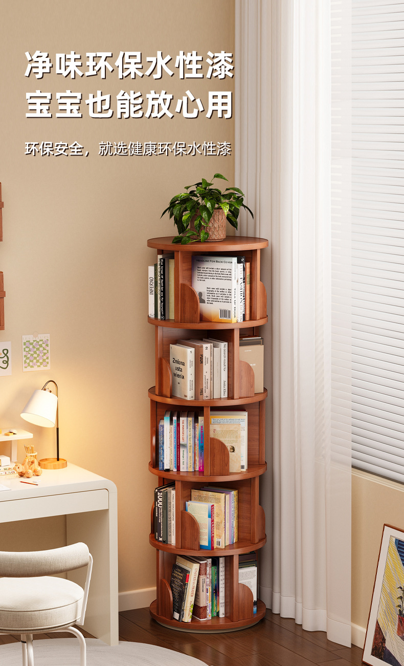 Вращающаяся книжная полка для дома, гостиной и кабинета, стеллаж для хранения детских игрушек, напольный стеллаж, модный книжный шкаф с вращением на 360 градусов.