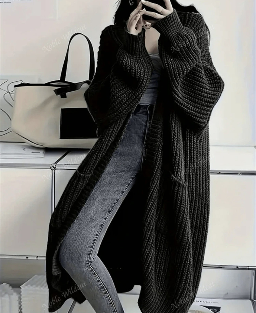 Элегантный длинный свитер выше колена в корейском стиле для женщин, осенне-зимний новый стиль, свободная утолщенная вязаная куртка в ленивом стиле для женщин, модная