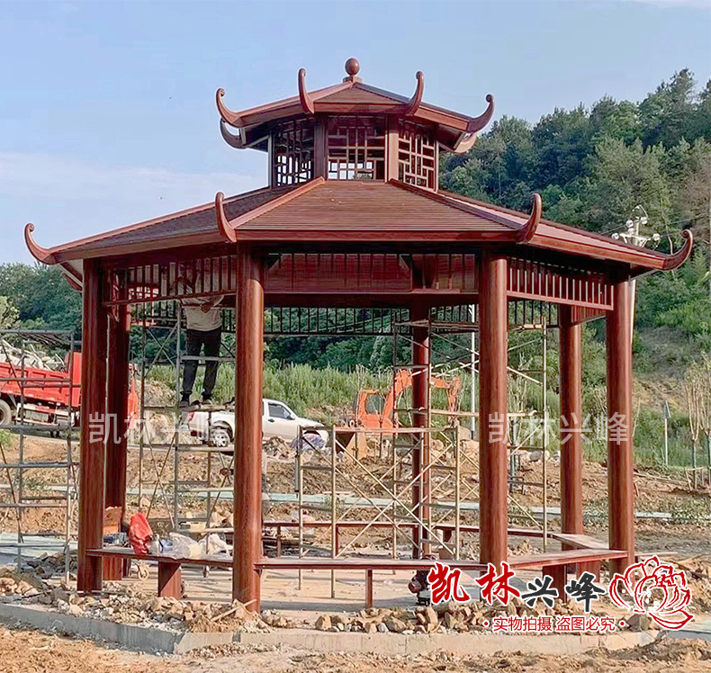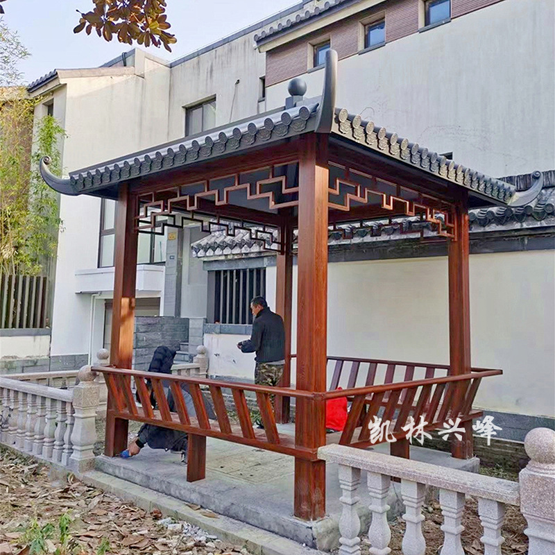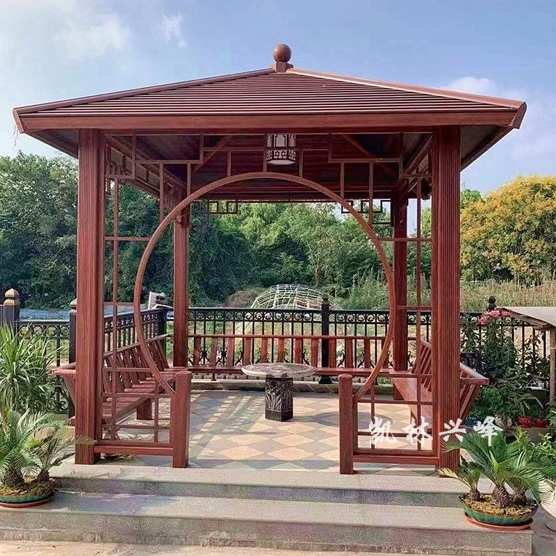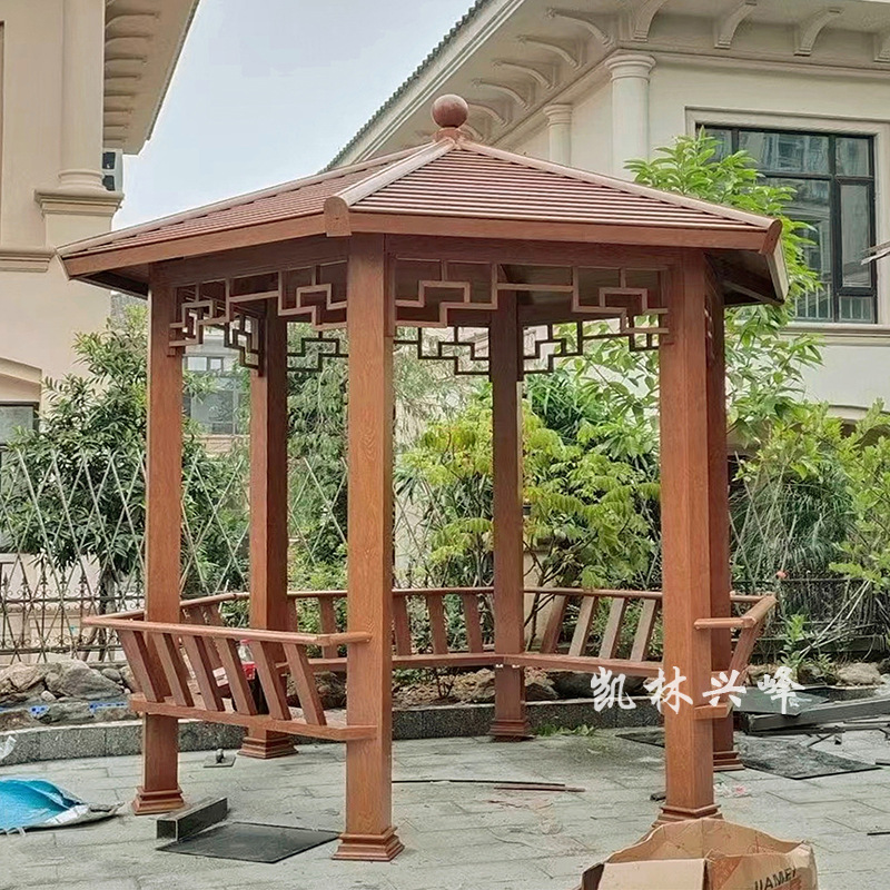 Павильон из алюминиевого сплава, уличный простой европейский четырехугольный павильон, ландшафтный павильон, вилла, скандинавский простой шестиугольный павильон, имитация древесины, алюминиевый павильон