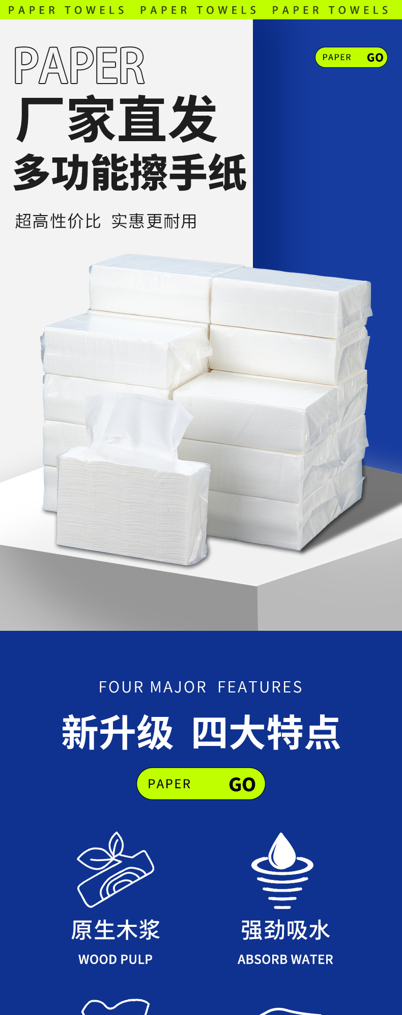 Толстые одноразовые бумажные полотенца для рук для коммерческих торговых центров, отелей, санузлов, KTV и туалетов