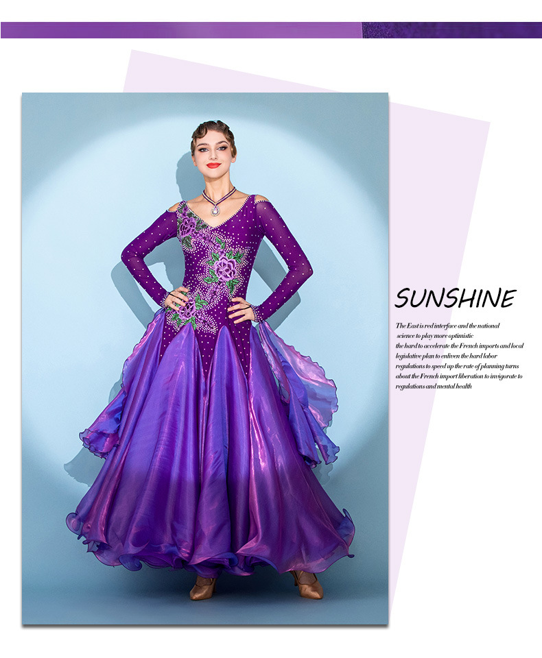 Современный фантомный фиолетовый! Благородный фиолетовый костюм для выступлений, инкрустированный бриллиантами S7108, костюм для выступлений в бальных танцах, юбка для вальса